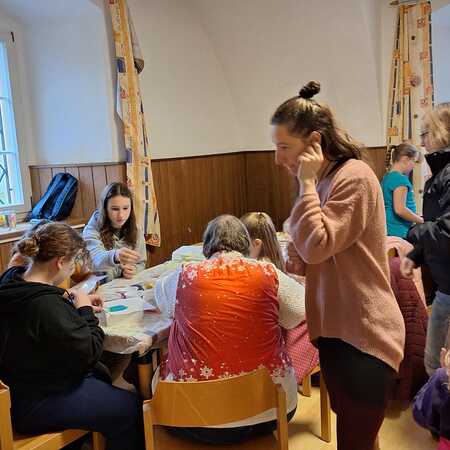 Mit den Kindern wurde das ganze Wochenende vom Team rund um Heidi Steinbichler gebastelt und gebacken und den Eltern so wohl auch das Kaffee trinken beim Adventcafé der kfb erleichtert. Die kfb Damen hatten ordentlich zu tun, um dem Ansturm gerecht zu werden - am Samstag war es knapp mit dem Platz, am Sonntag gab es genug davon für alle BesucherInnen.