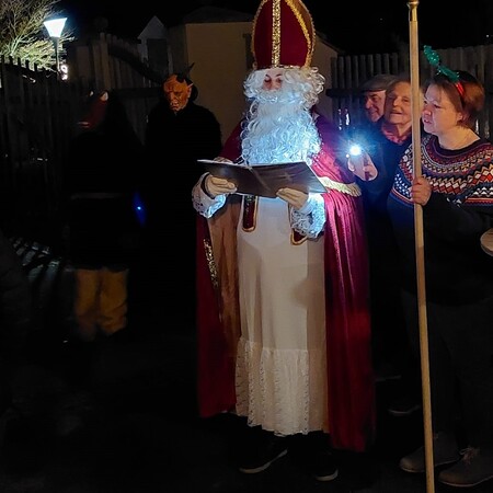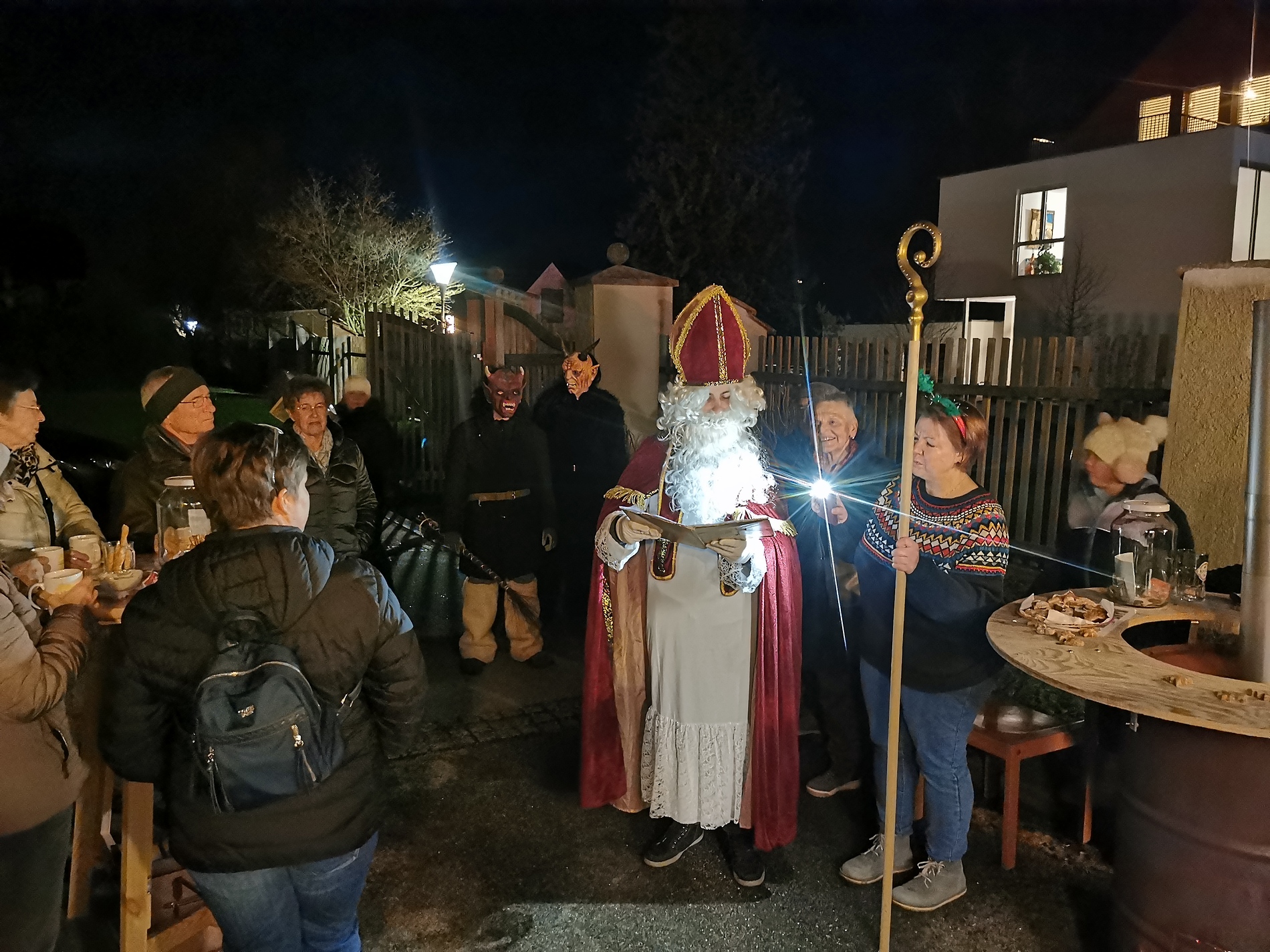 Und weil alle das ganze Jahr über so fleißig angepackt haben, kam auch der Nikolaus vorbei und brachte Süßes für die HelferInnen, die im Anschluss von der Gemeinde zu einem Abendessen eingeladen waren.