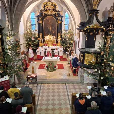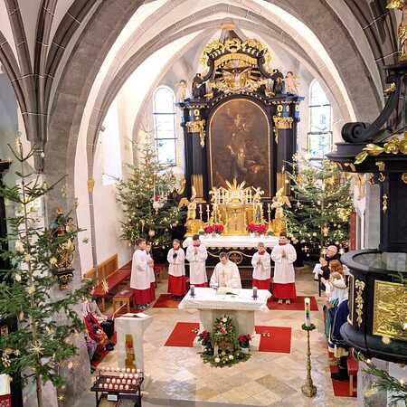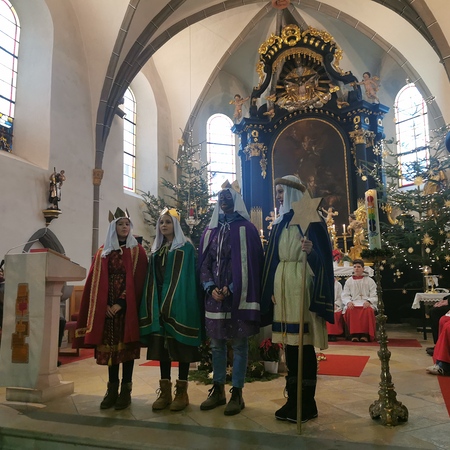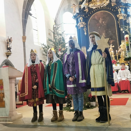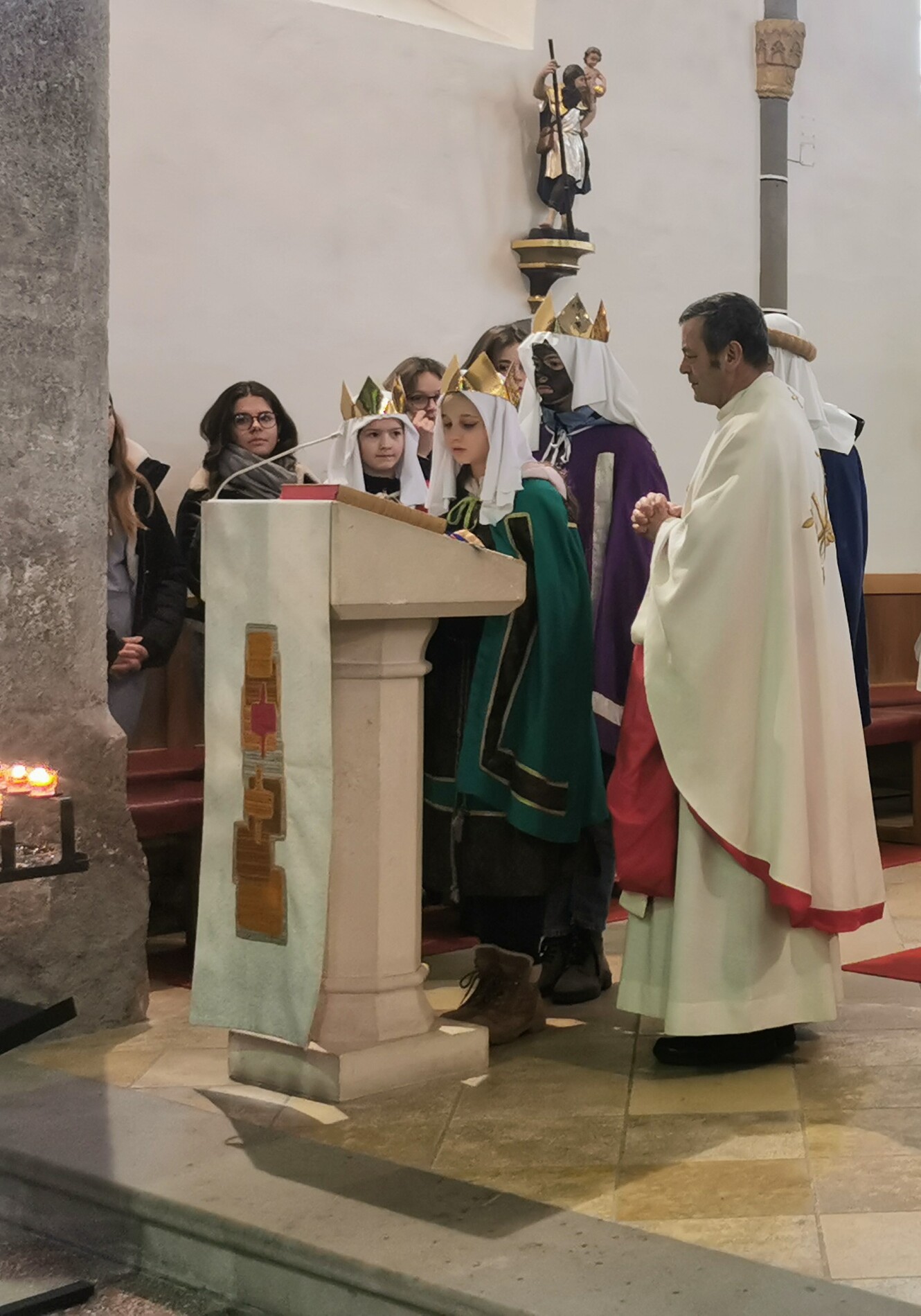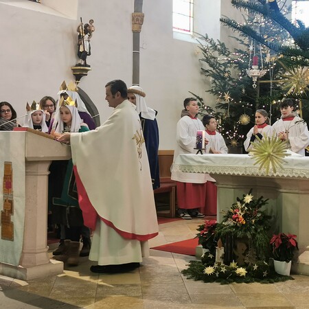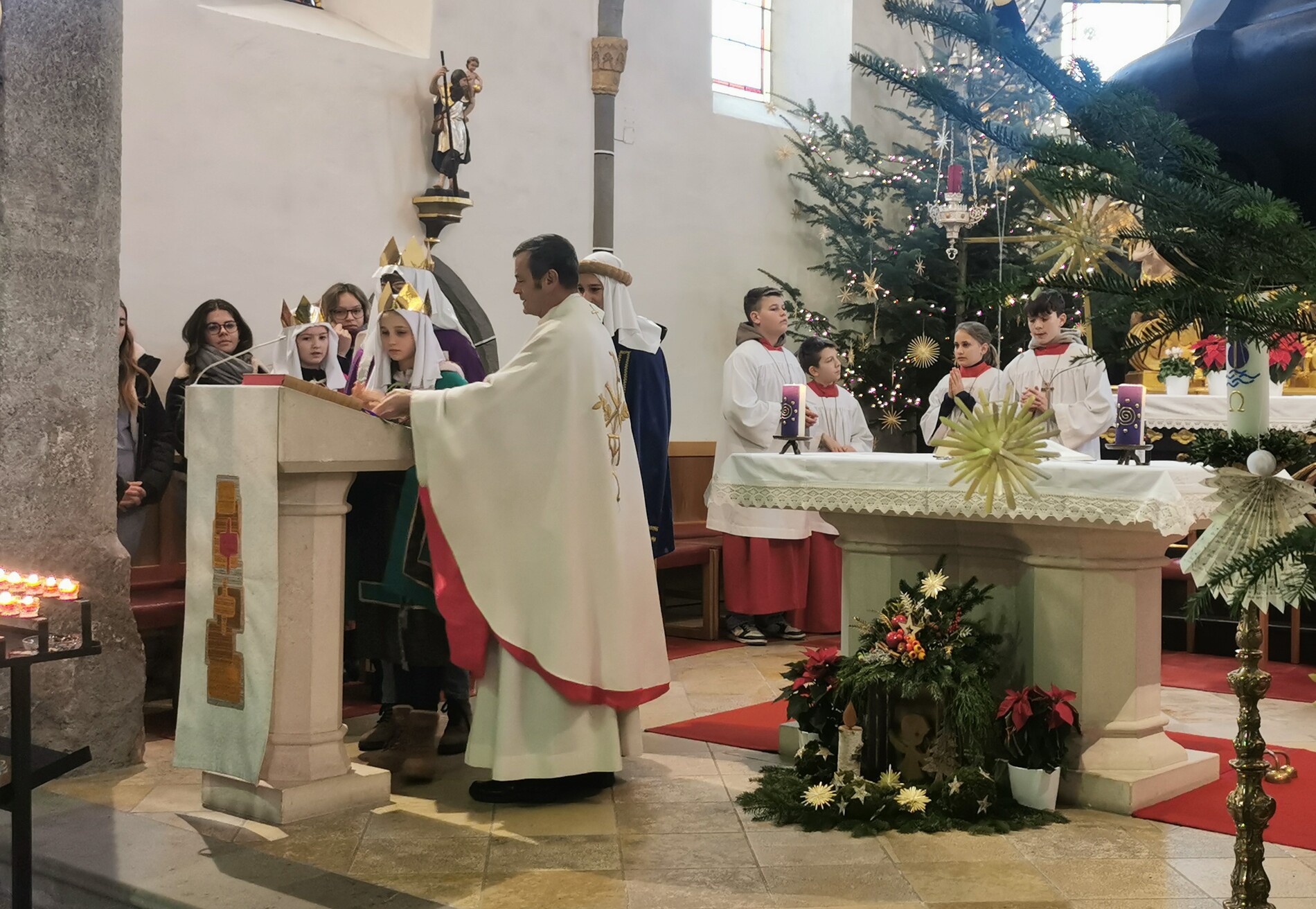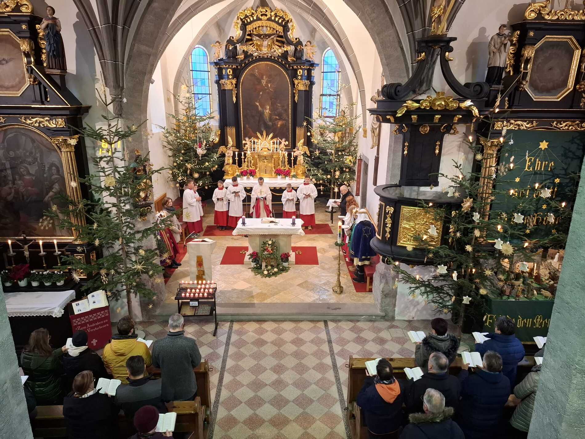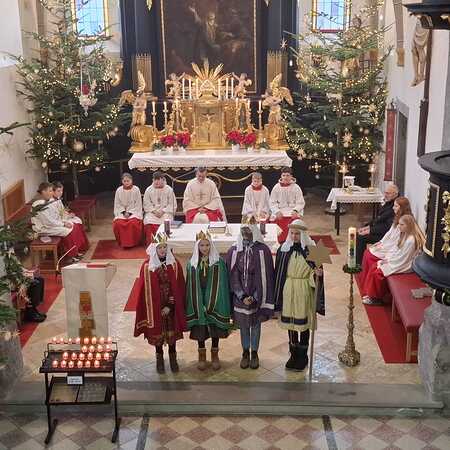 Gerne sind wir gekommen - an einem der "heiligsten Tage des Kirchenjahres" - um noch einmal die "Oberndorfer Stille Nacht Messe" zu hören, aufgeführt von unserem Kirchenchor mit Orchester-Unterstützung. Am Ende des Hochamtes, zelebriert von P. Laurentius, brachte uns auch noch eine Sternsinger-Gruppe den Segen mit - und so gehen wir gesegnet in das neue Jahr 2025!