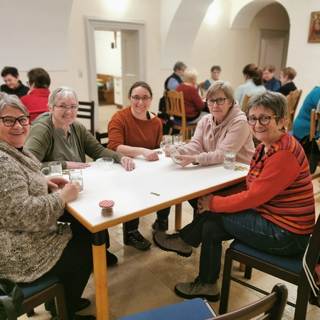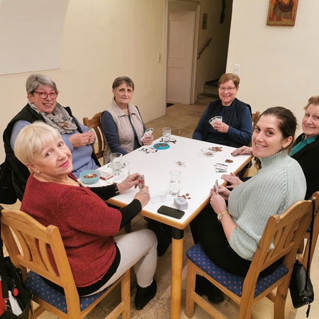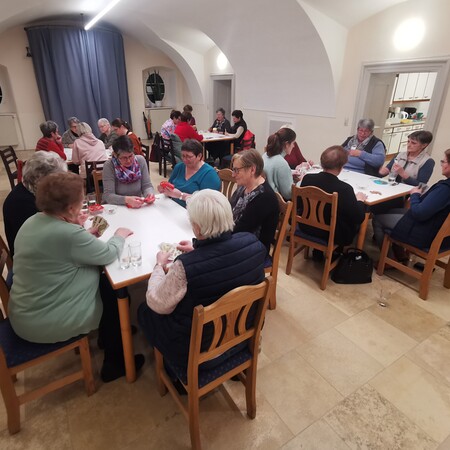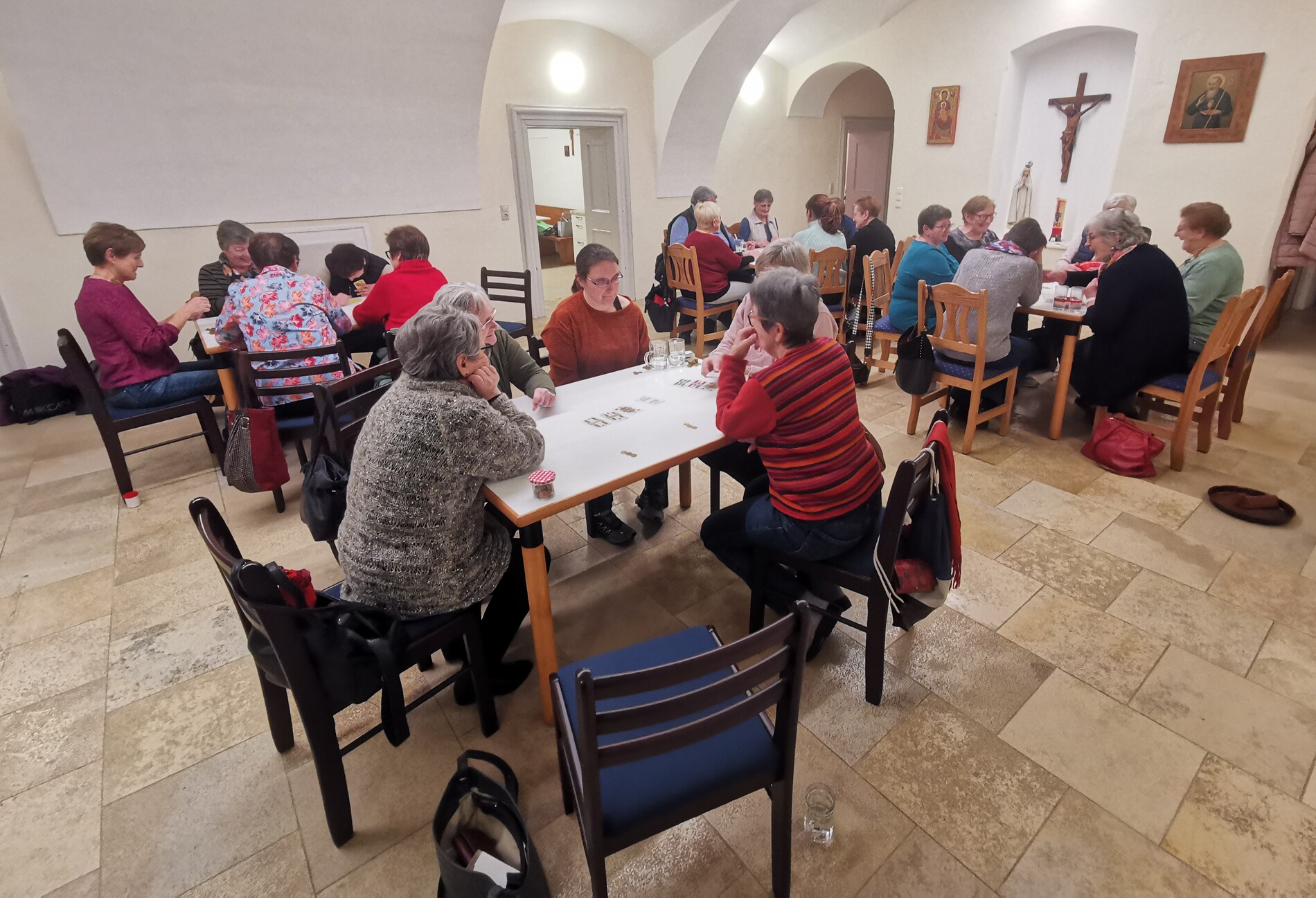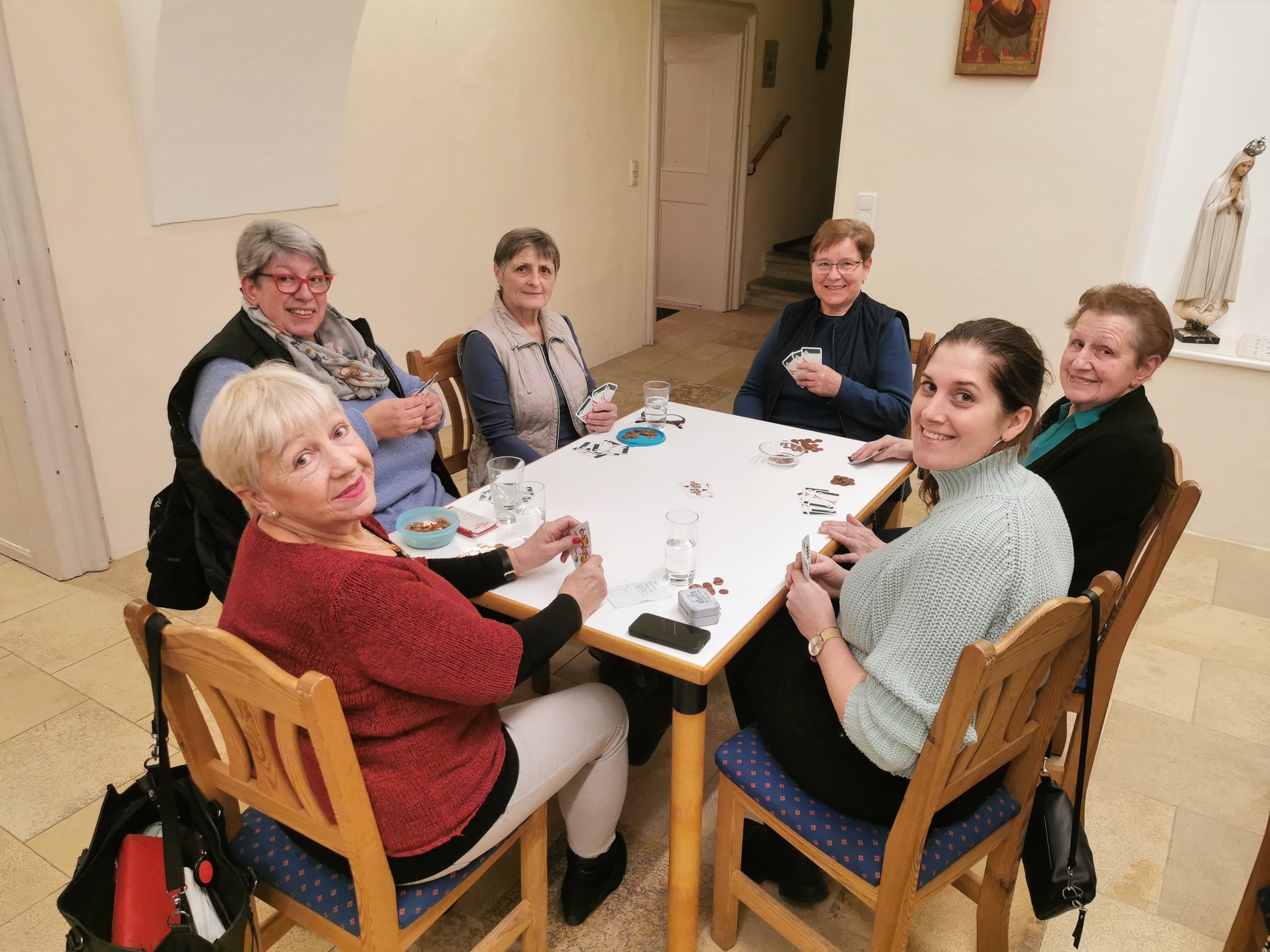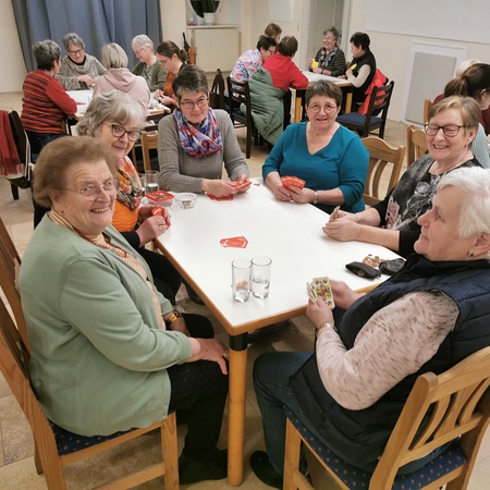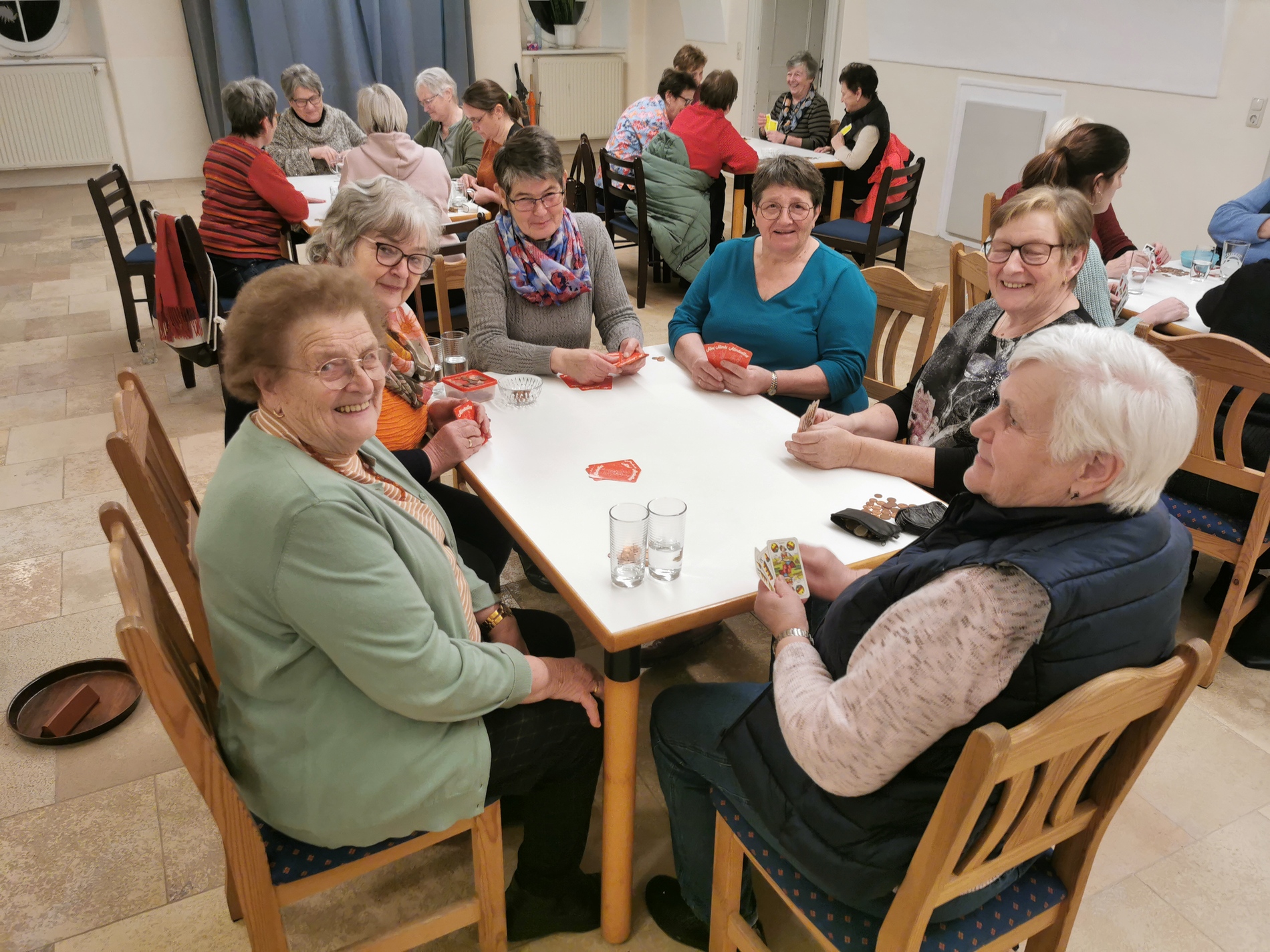 An 4 Tischen wurde gekartelt was das Zeug hält (Herzeln, Hosen obi, ..) , alles verfeinert mit 1-2 herrlichen Schnapserln. Nach einigen Stunden Spiel gab's zum Abschluss noch gemütliches Zusammensitzen an einer langen Tafel, bei Tee und köstlichen Bäckereien der kfb Damen.