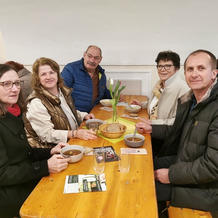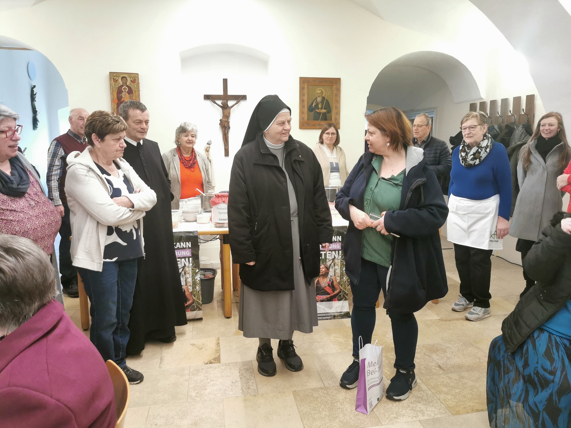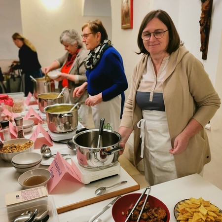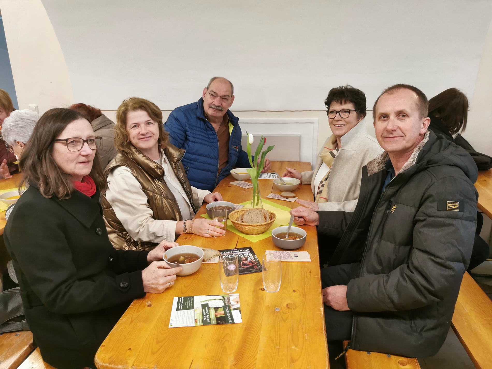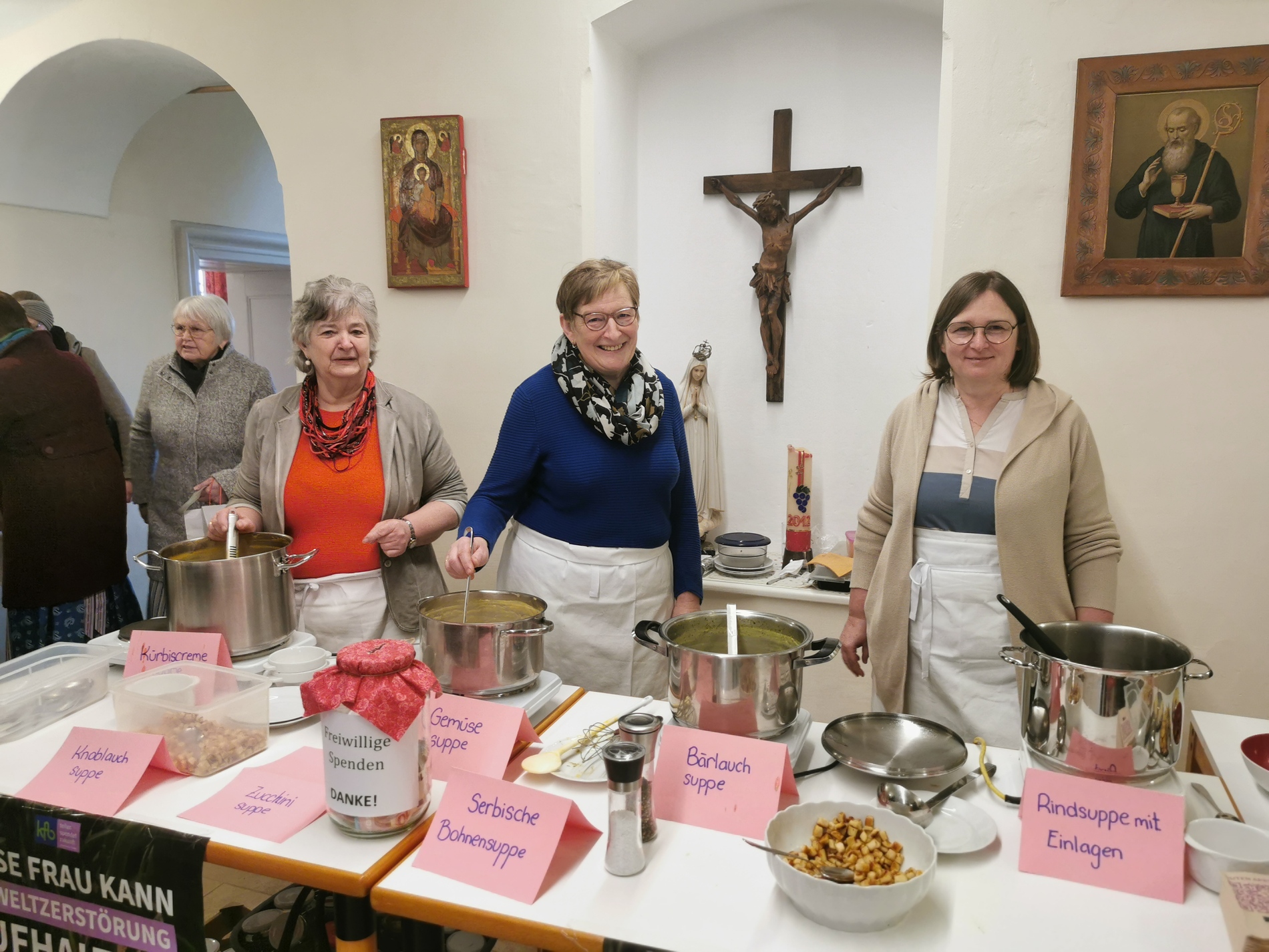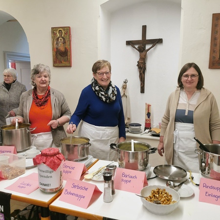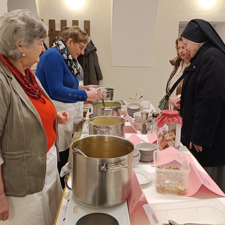 Zwei Benefiz-Projekte wurden am heutigen Sonntag zu einem Herzensprojekt vereint: die Biberbacher kfb Damen veranstalteten zum ersten Mal einen Suppensonntag im Pfarrhof zu Gunsten der Aktion Familienfasttag der kfb - und der Caritas Arbeitskreis der Pfarre lud auf Anregung von P. Laurentius Sr. Ingrid Sturm -Kreuzschwestern Linz - zur Präsentation ihrer Rumänienhilfe ein.
