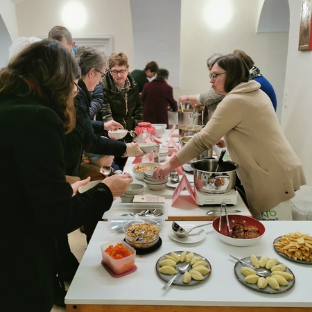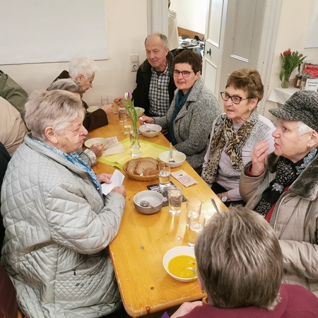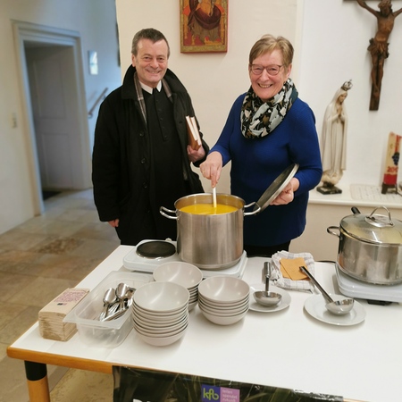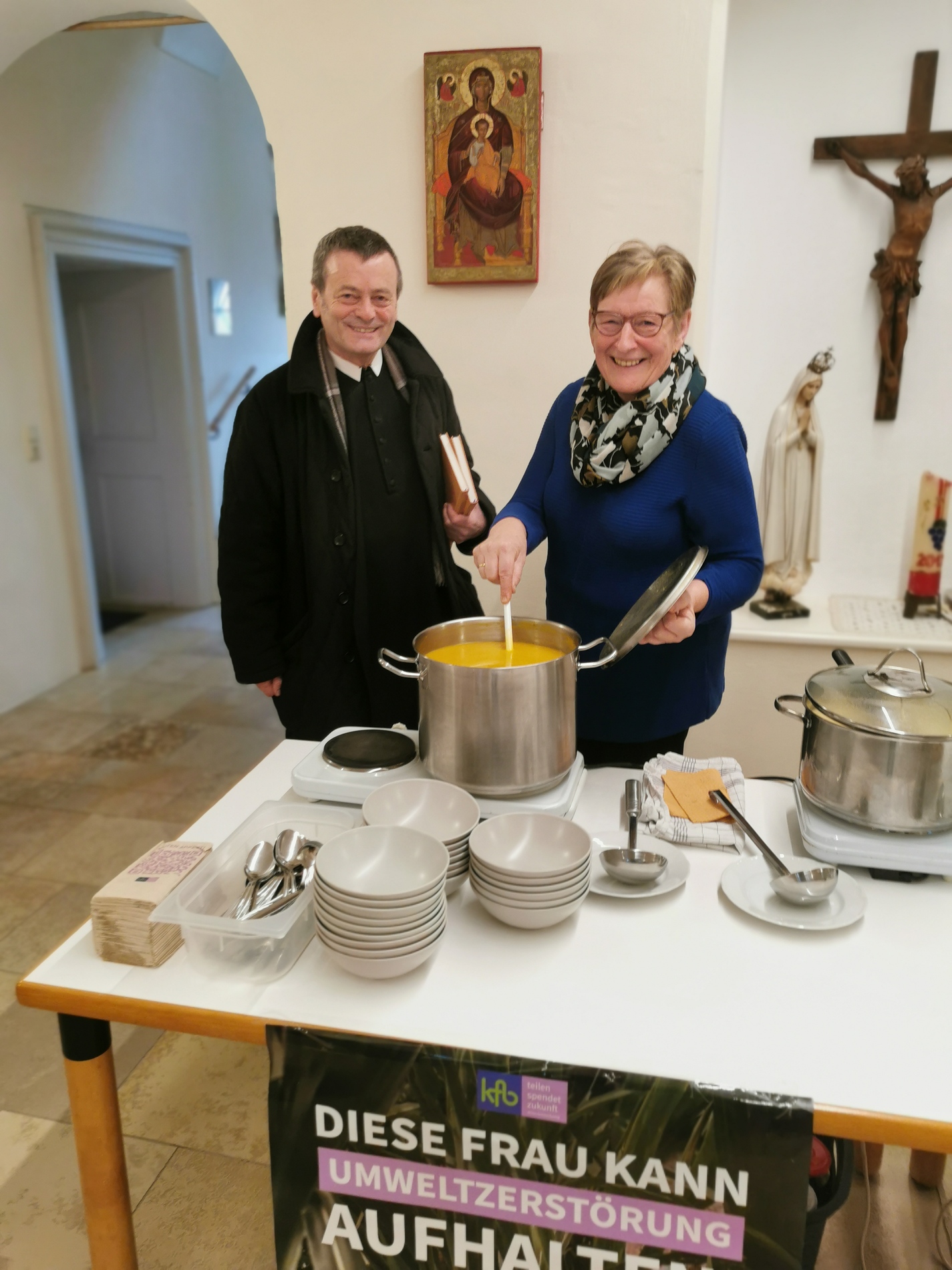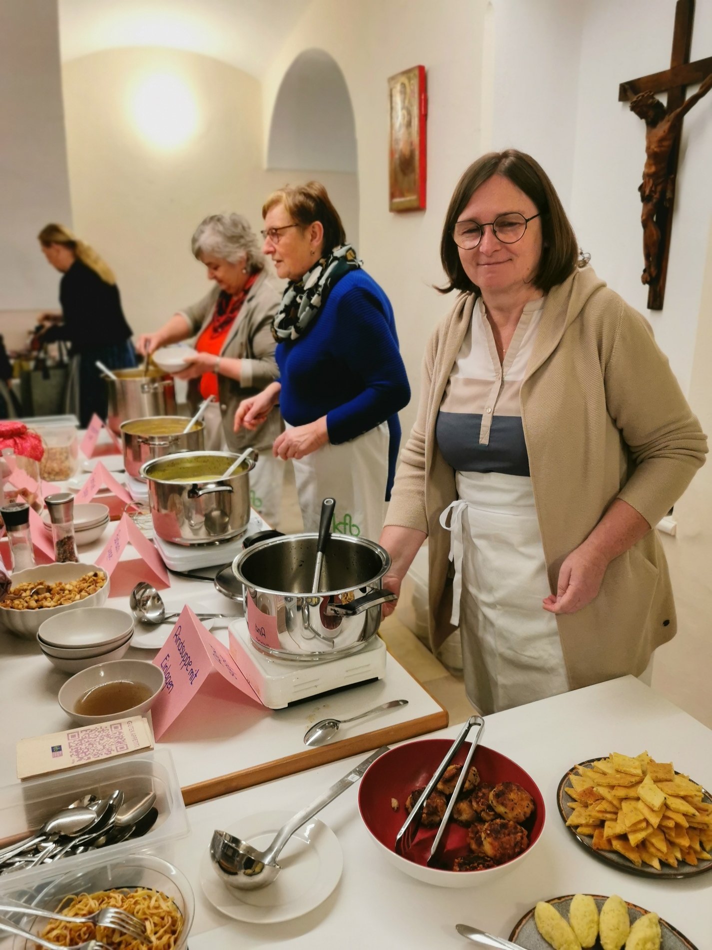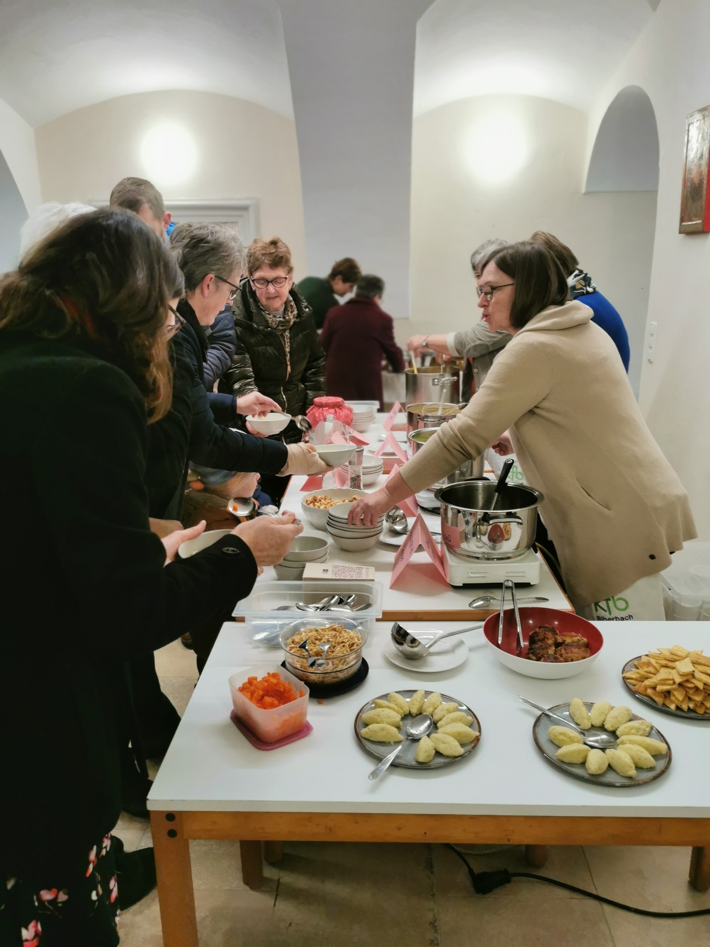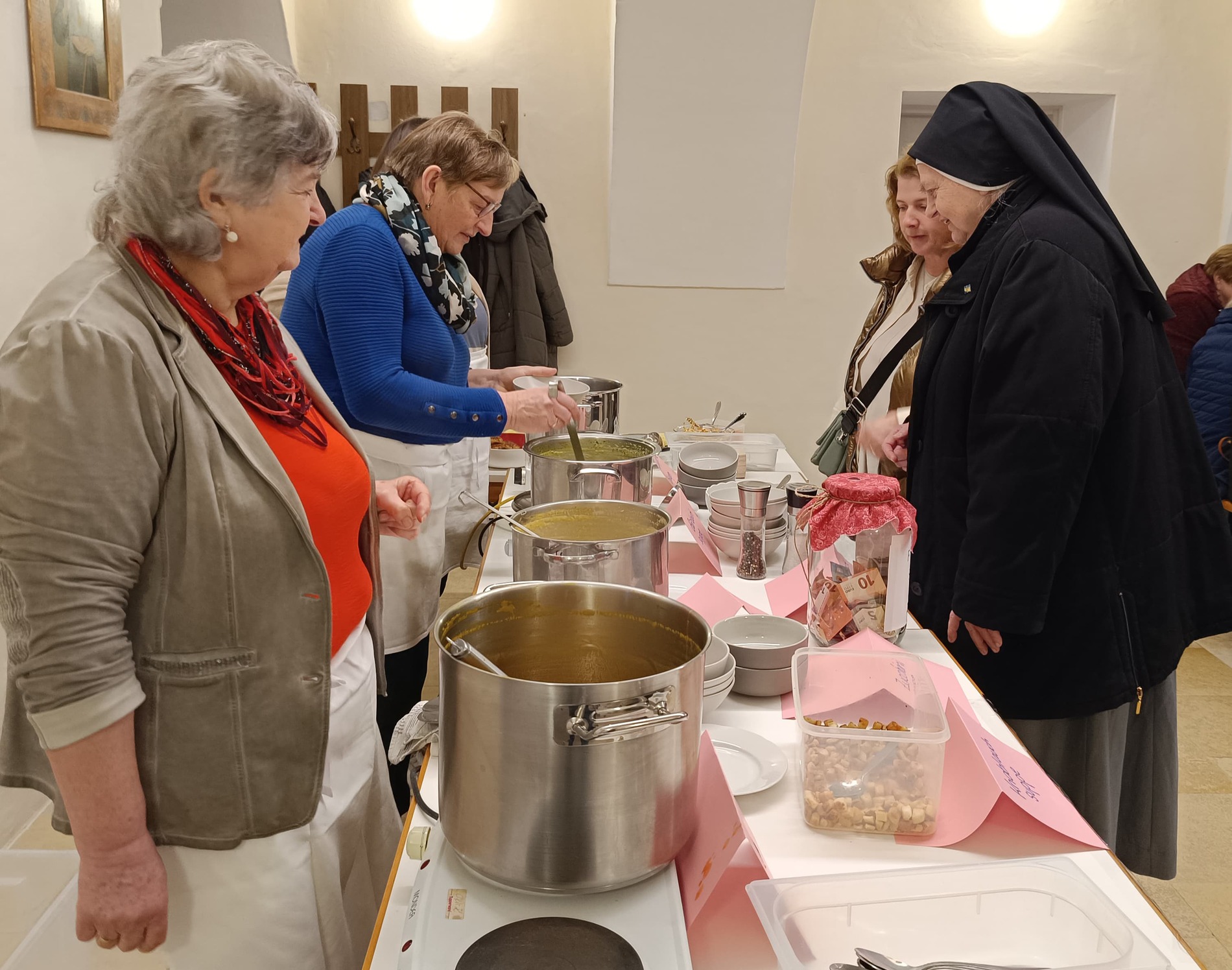 Zwei Benefiz-Projekte wurden am heutigen Sonntag zu einem Herzensprojekt vereint: die Biberbacher kfb Damen veranstalteten zum ersten Mal einen Suppensonntag im Pfarrhof zu Gunsten der Aktion Familienfasttag der kfb - und der Caritas Arbeitskreis der Pfarre lud auf Anregung von P. Laurentius Sr. Ingrid Sturm -Kreuzschwestern Linz - zur Präsentation ihrer Rumänienhilfe ein.