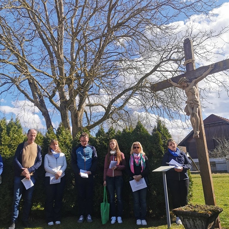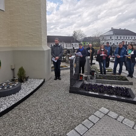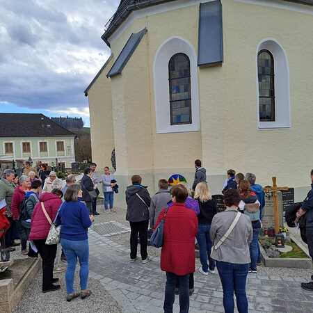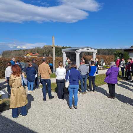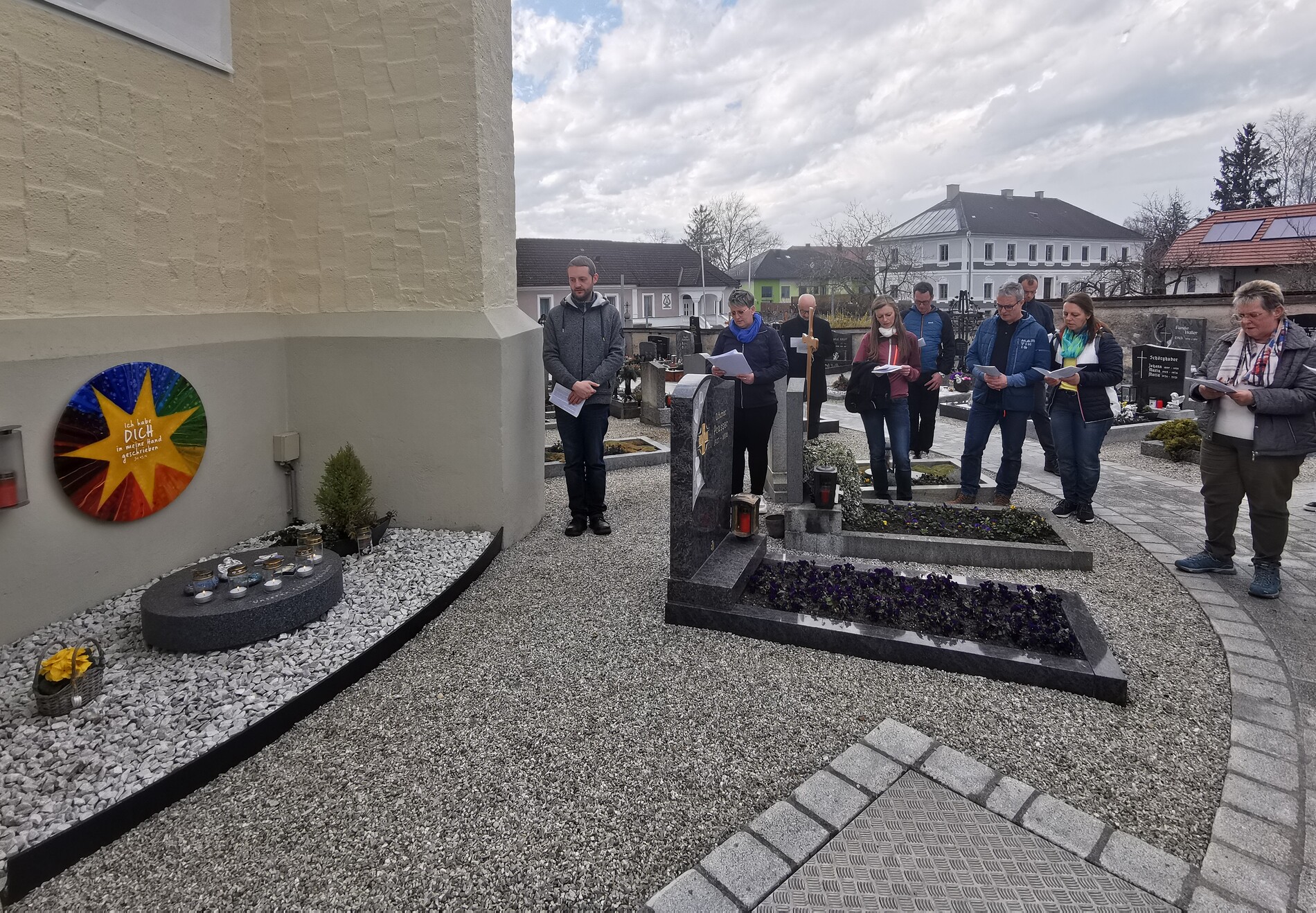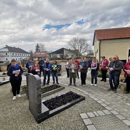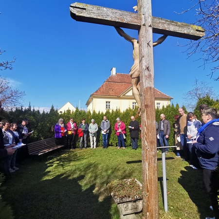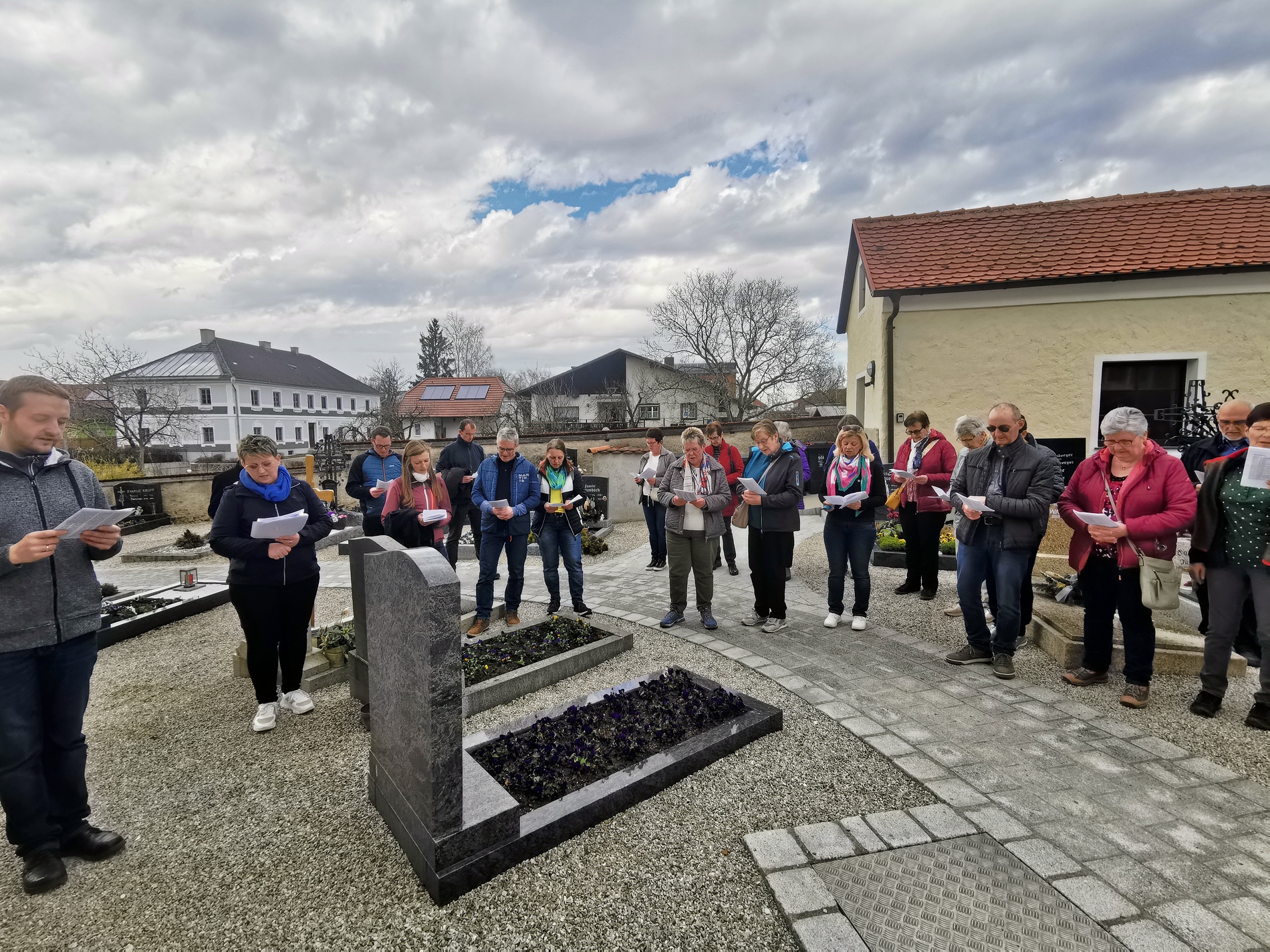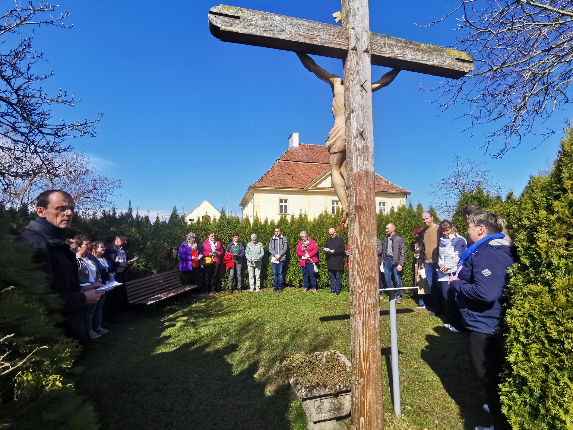 Am Sonntag 23. März lud der PGR zum Kreuzweg durch den Ort - mit Stationen in der Kirche, am Dorfplatz, im Pfarrgarten, in der Friedhofskapelle, beim Friedenskreuz und bei der Sternenkinder Gedenkstätte. Texte zu den 7 neuen Werken der Barmherzigkeit begleiteten den Weg; diese "Werke" bzw. Haltungen sind: Ich teile mit dir - Ich rede gut über dich - Ich bete für dich - Ich besuche dich - Ich höre dir zu - Du gehörst genauso dazu - Ich gehe ein Stück mit dir.