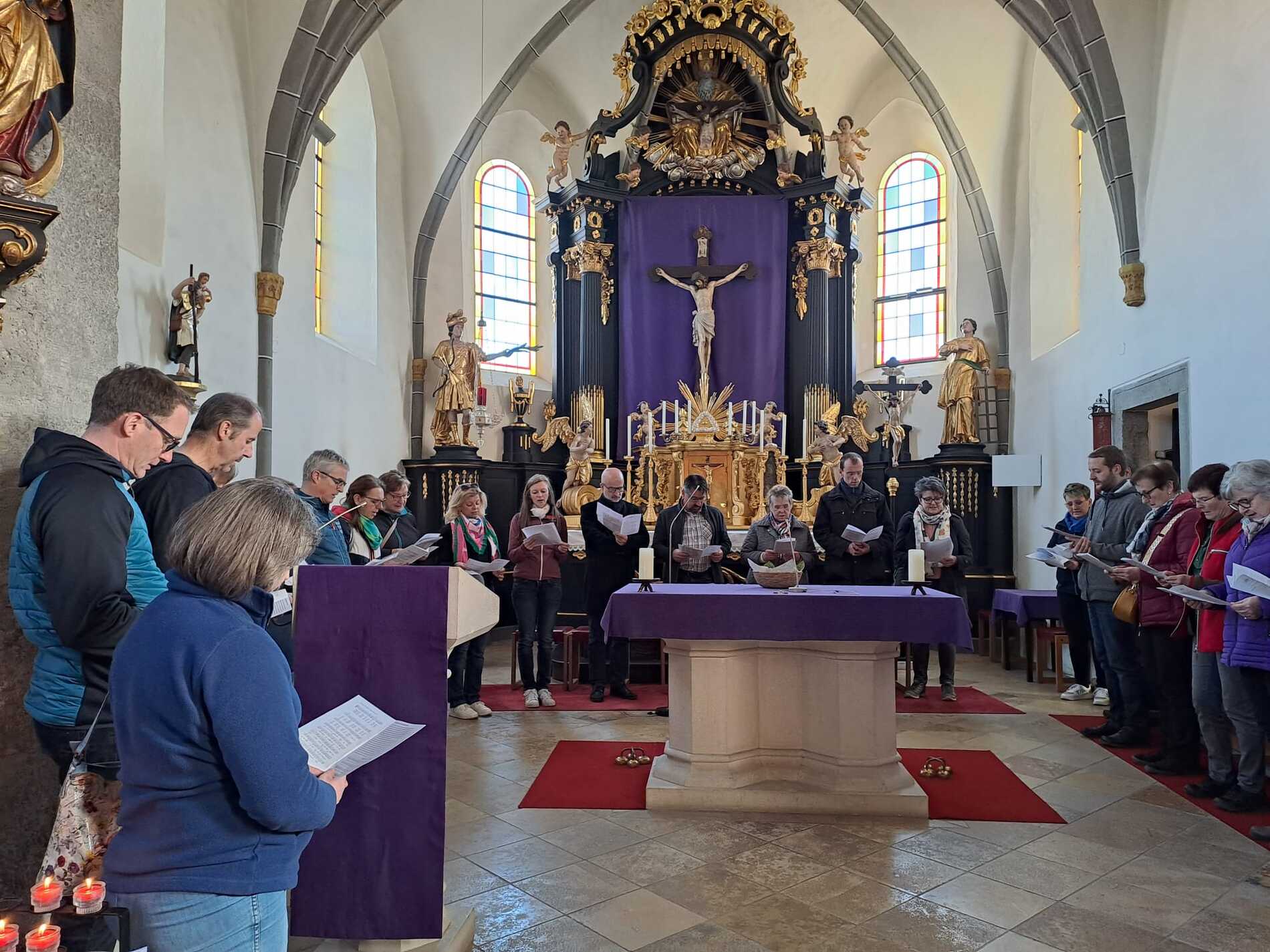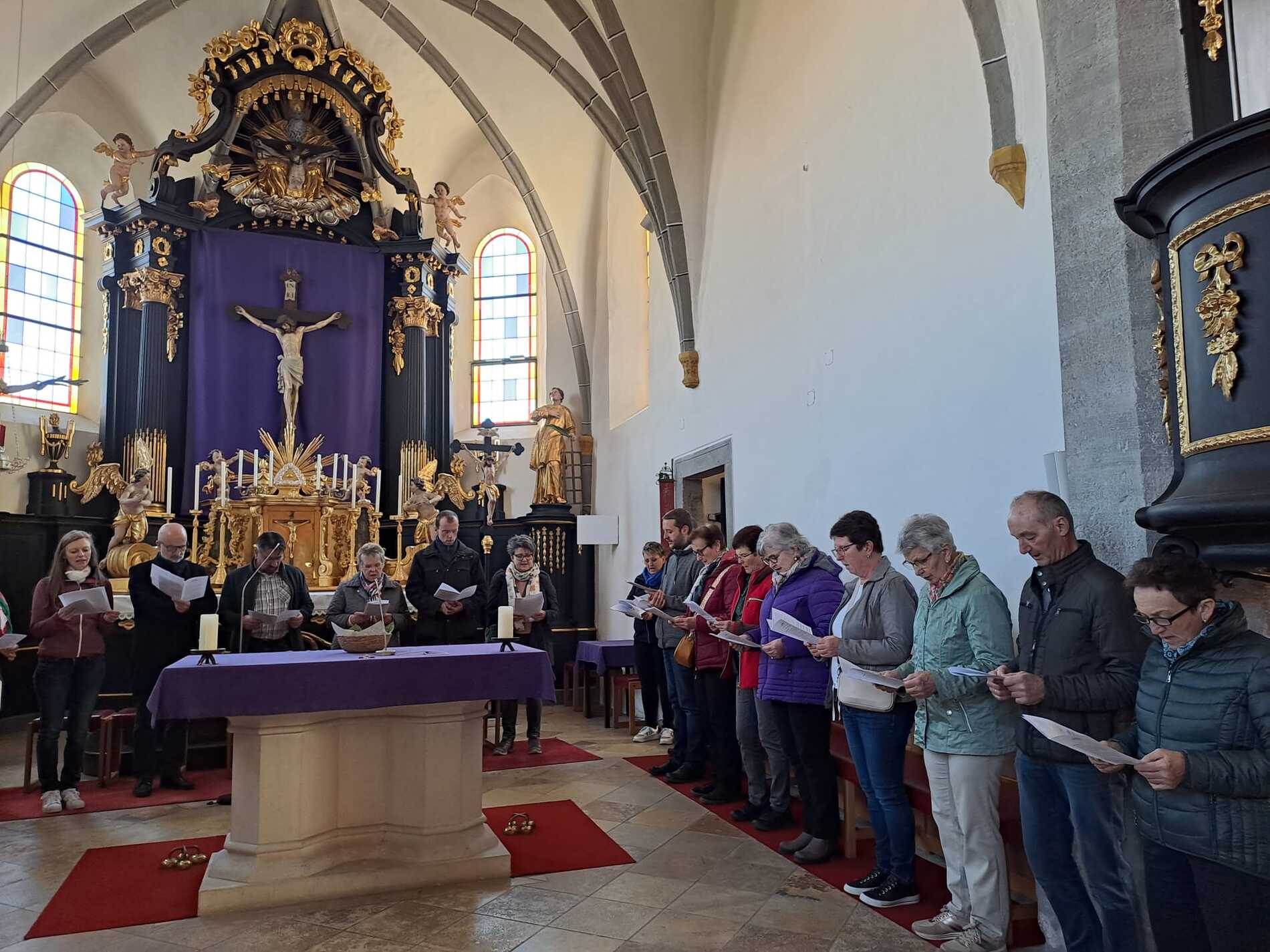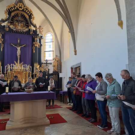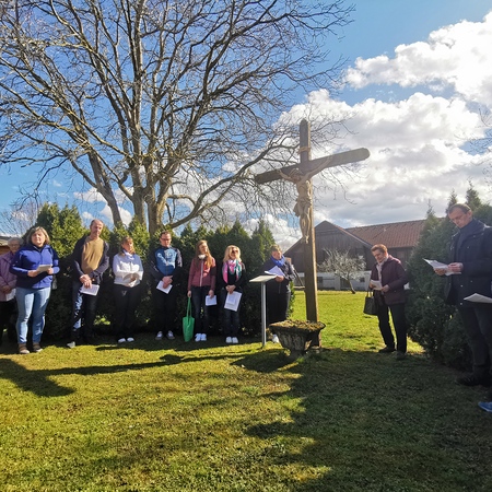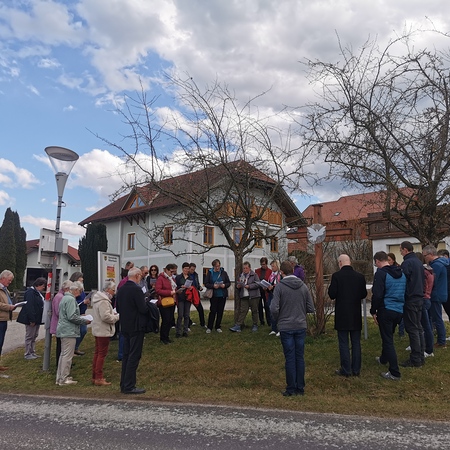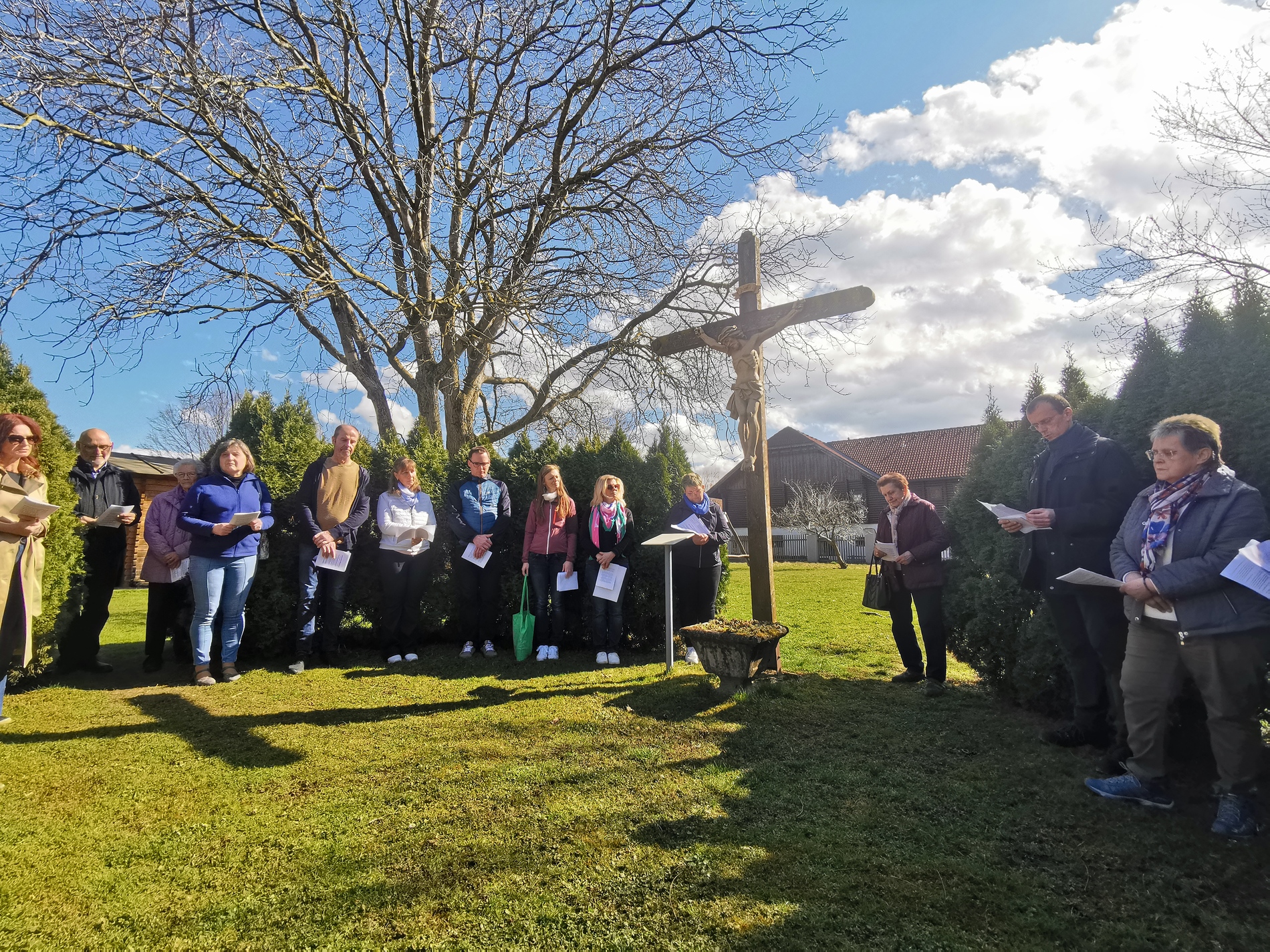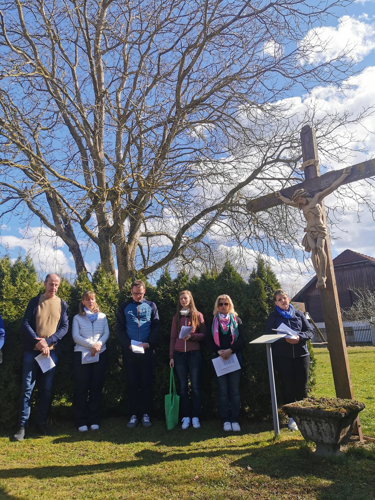 Am Sonntag 23. März lud der PGR zum Kreuzweg durch den Ort - mit Stationen in der Kirche, am Dorfplatz, im Pfarrgarten, in der Friedhofskapelle, beim Friedenskreuz und bei der Sternenkinder Gedenkstätte. Texte zu den 7 neuen Werken der Barmherzigkeit begleiteten den Weg; diese "Werke" bzw. Haltungen sind: Ich teile mit dir - Ich rede gut über dich - Ich bete für dich - Ich besuche dich - Ich höre dir zu - Du gehörst genauso dazu - Ich gehe ein Stück mit dir.