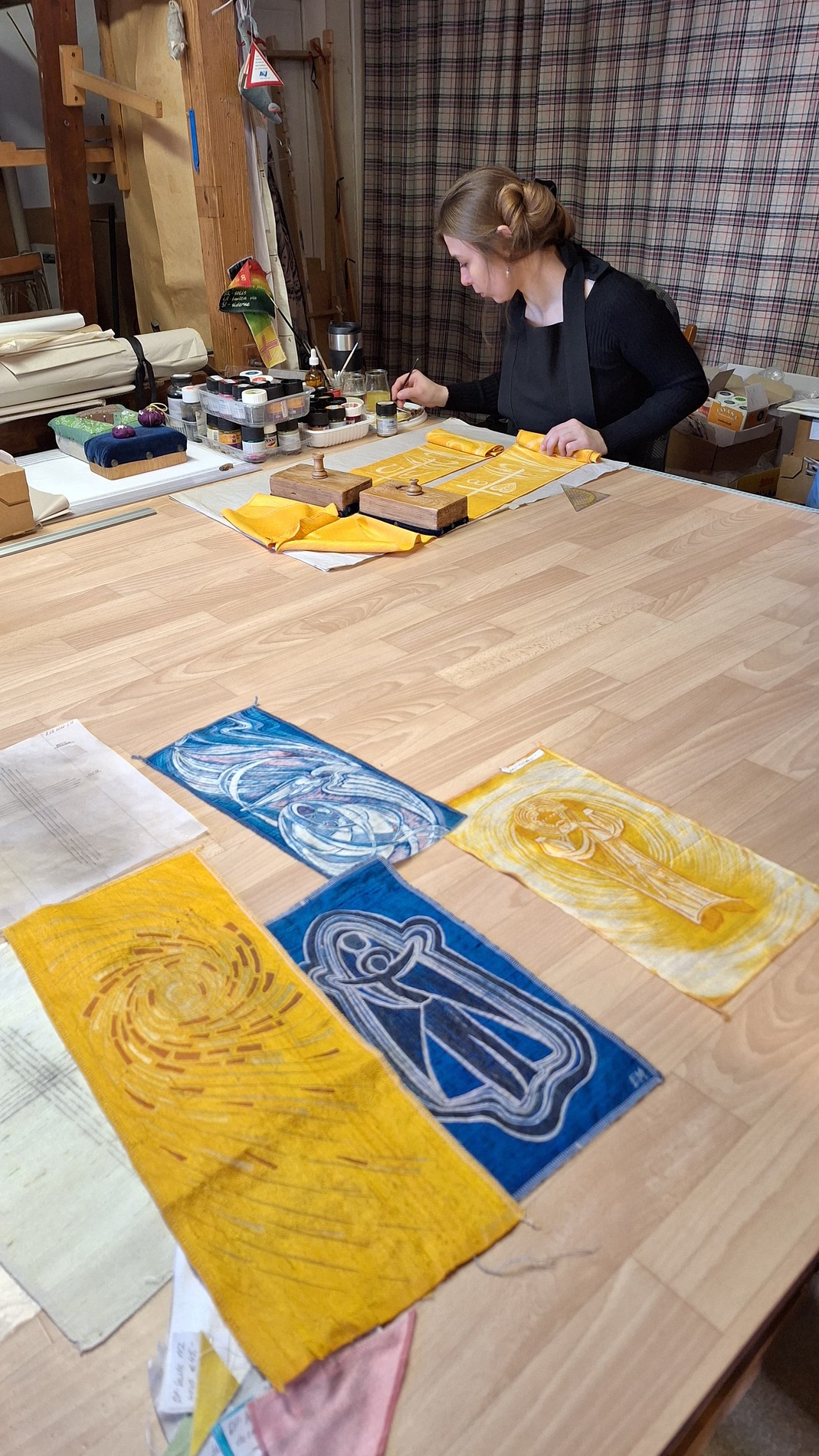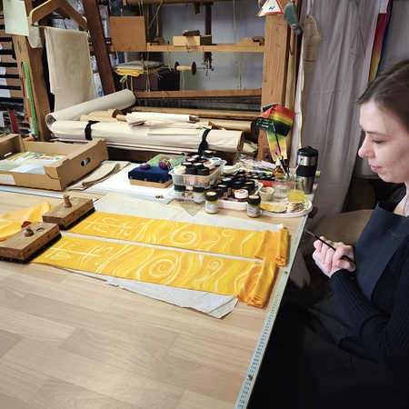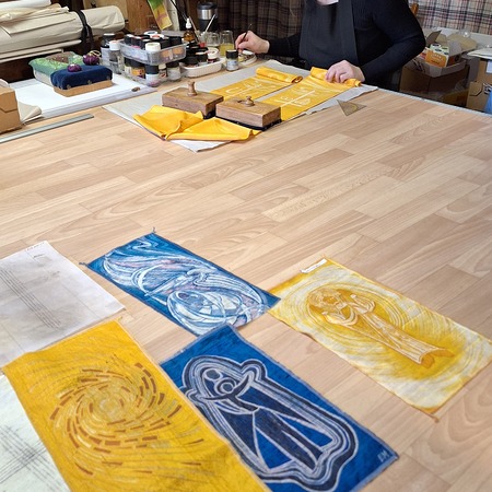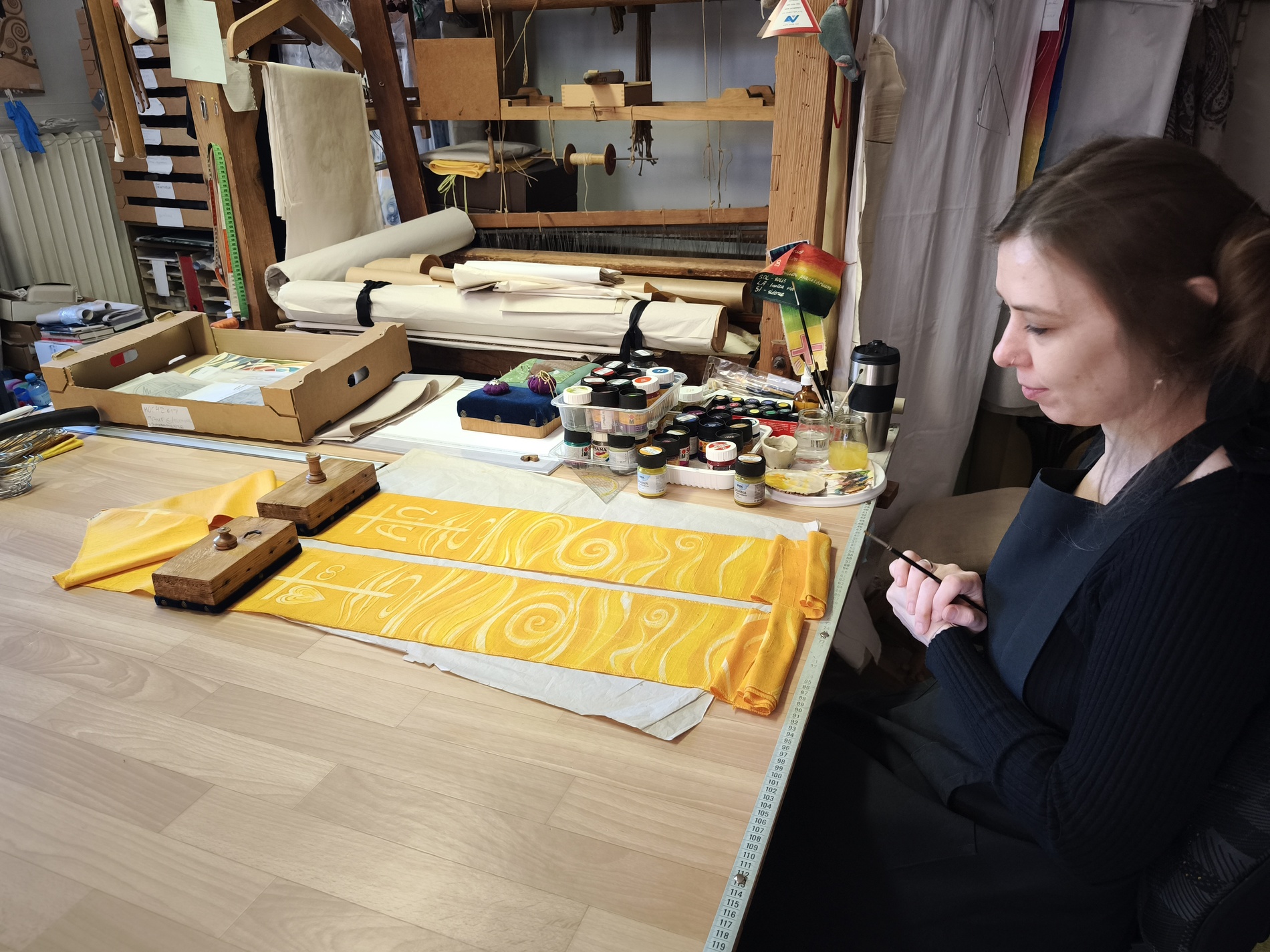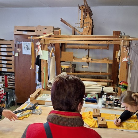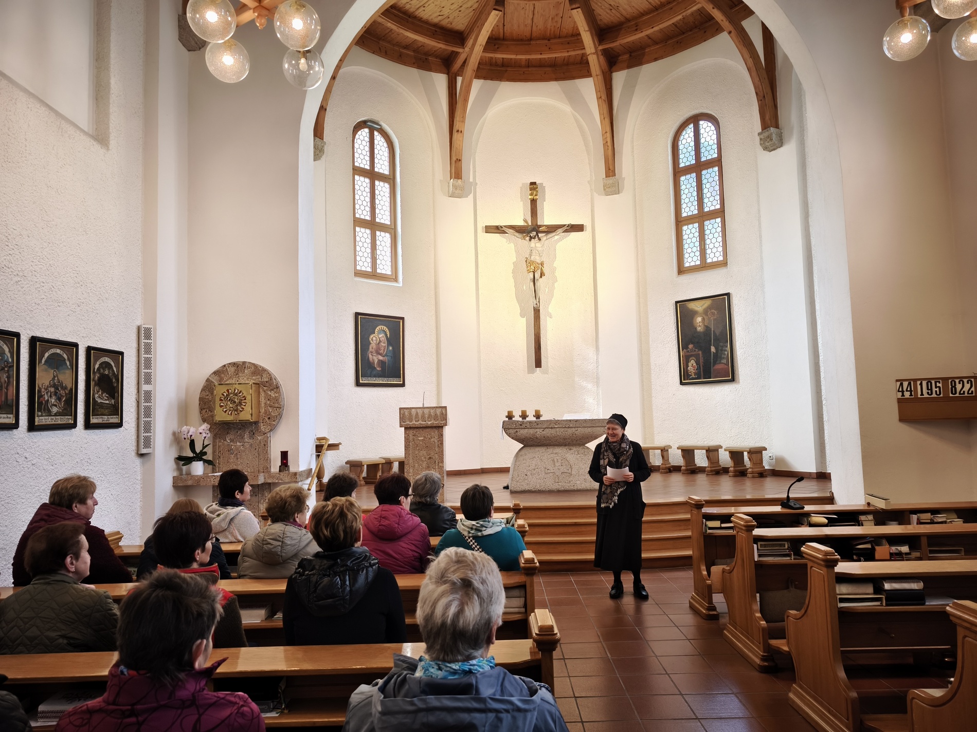 Da zur Zeit der Biberbacher Fronleichnams-Himmel im Kloster der Benediktinerinnen in Steinerkirchen zur Restaurierung ist kam der Wunsch auf, die dortige Paramentik einmal zu besuchen und mehr über dieses Handwerk zu erfahren. Viel zu Bestaunen gab es dann auch bei der Führung durch die Paramenten-Stickerei und die Batik-Abteilung: Das ganze handwerkliche Geschick ruht in den Händen von nur mehr wenigen weltlichen MitarbeiterInnen oder Klosterschwestern.