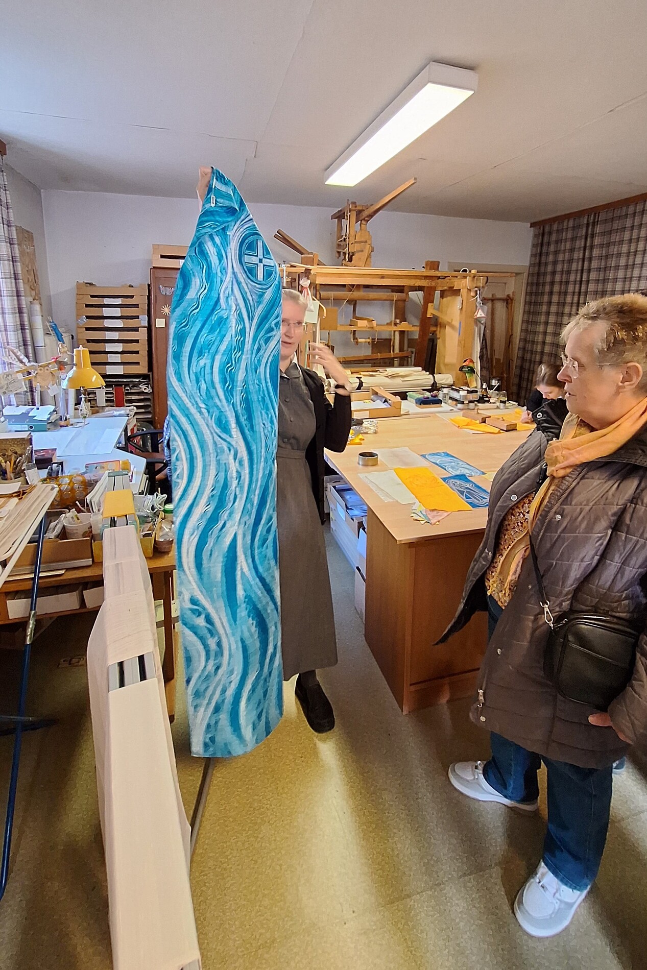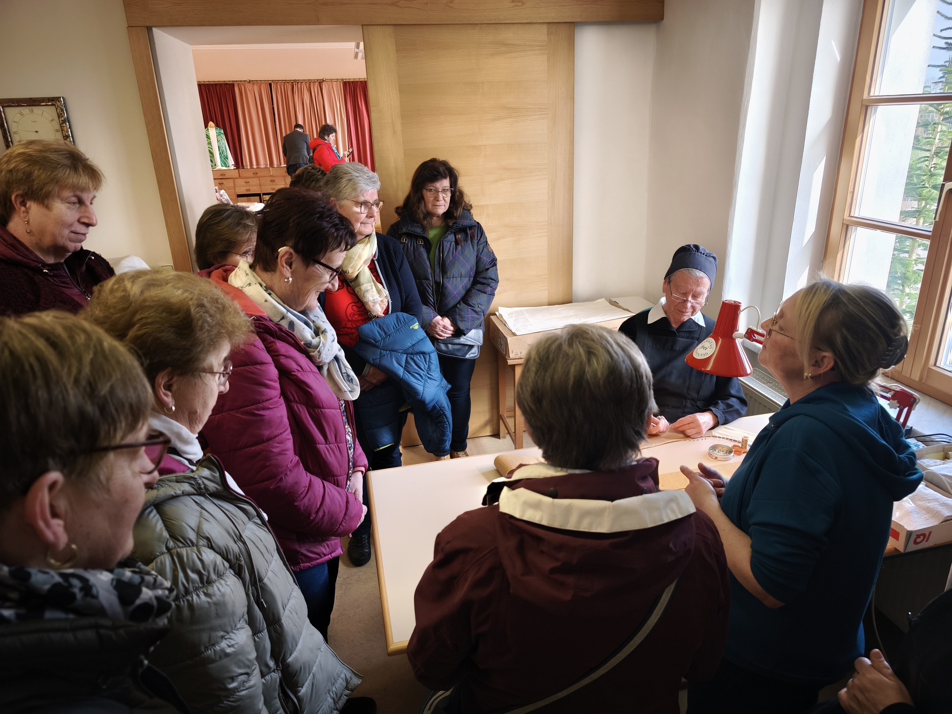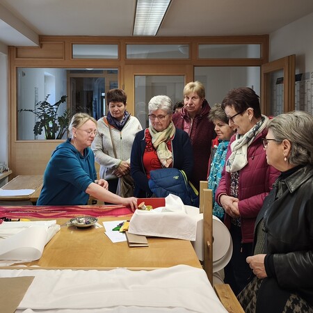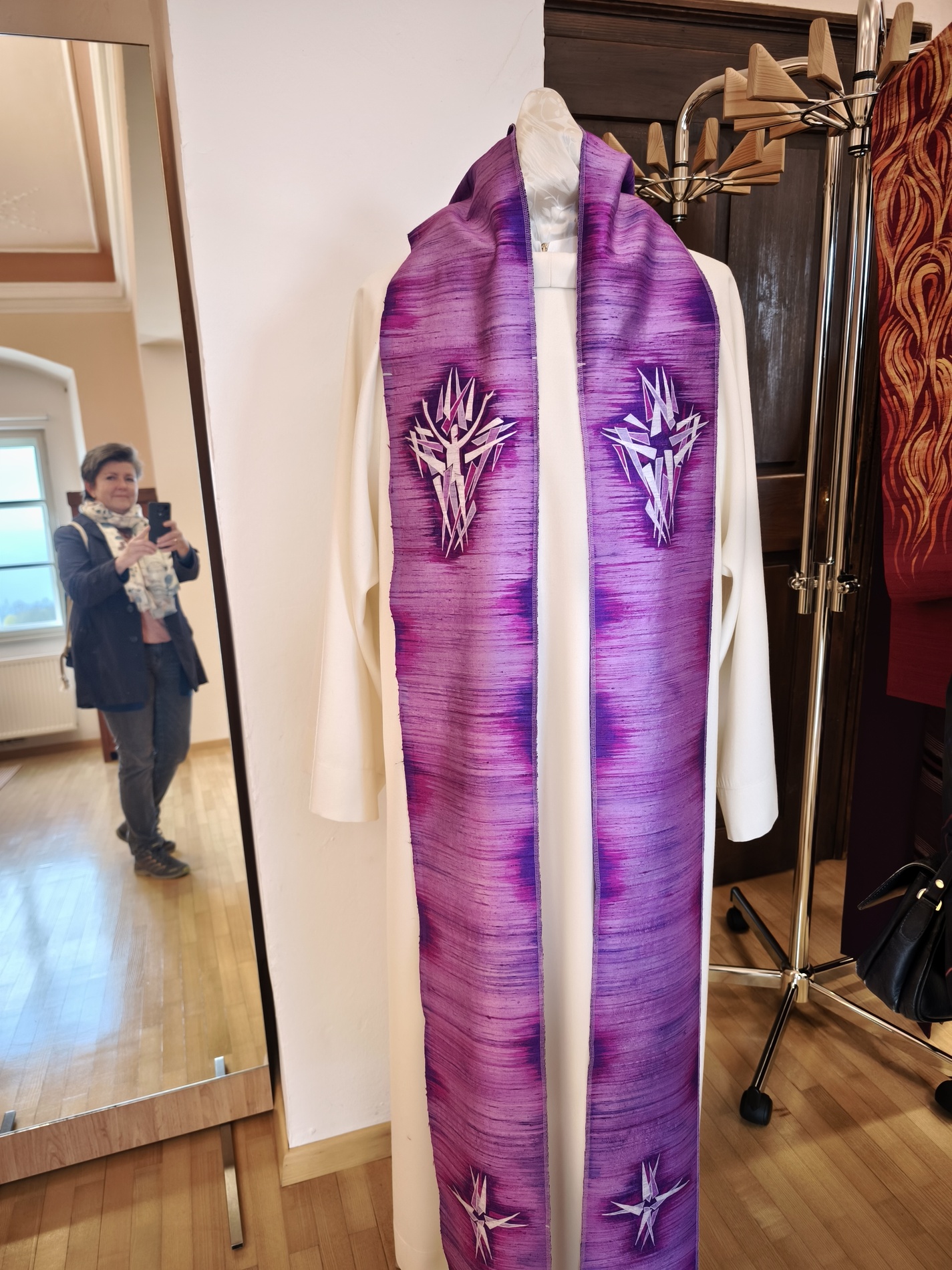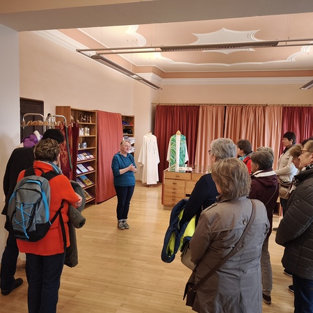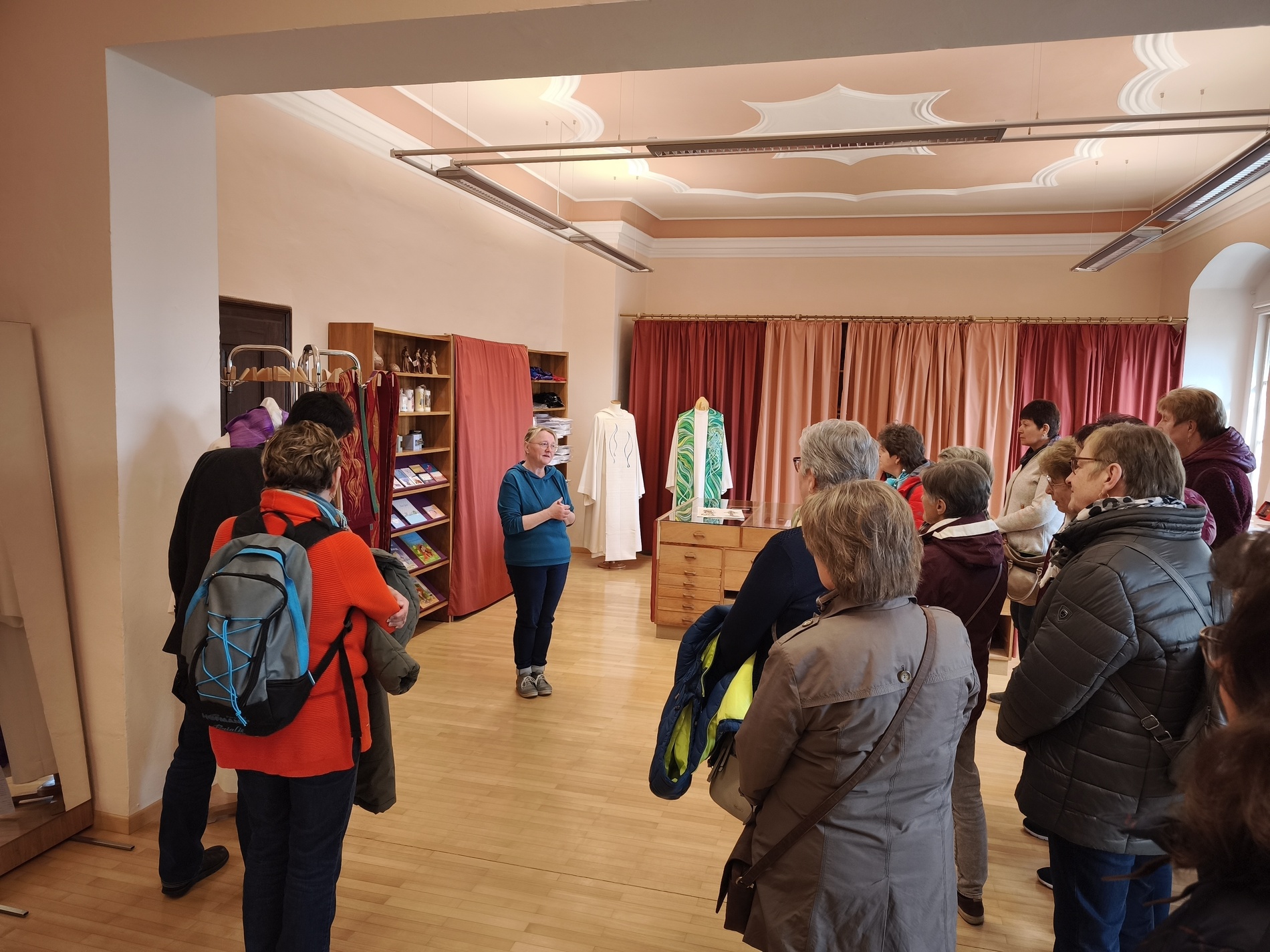 Leider werden immer mehr Paramenten-Stickereien aufgelassen und so gibt es in Steinerkirchen lange Wartezeiten auf handgefertigte Messgewänder, Stolen oder Restaurierungen von Fahnen oder anderen Paramenten. Wir waren begeistert von den schönen Stoffen, Stickereien und Motiven, die auf verschiedenste Weise hergestellt werden.