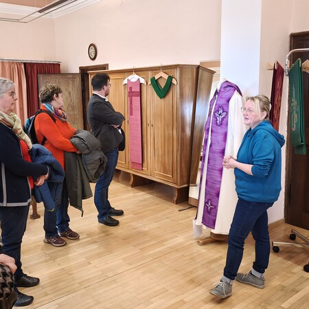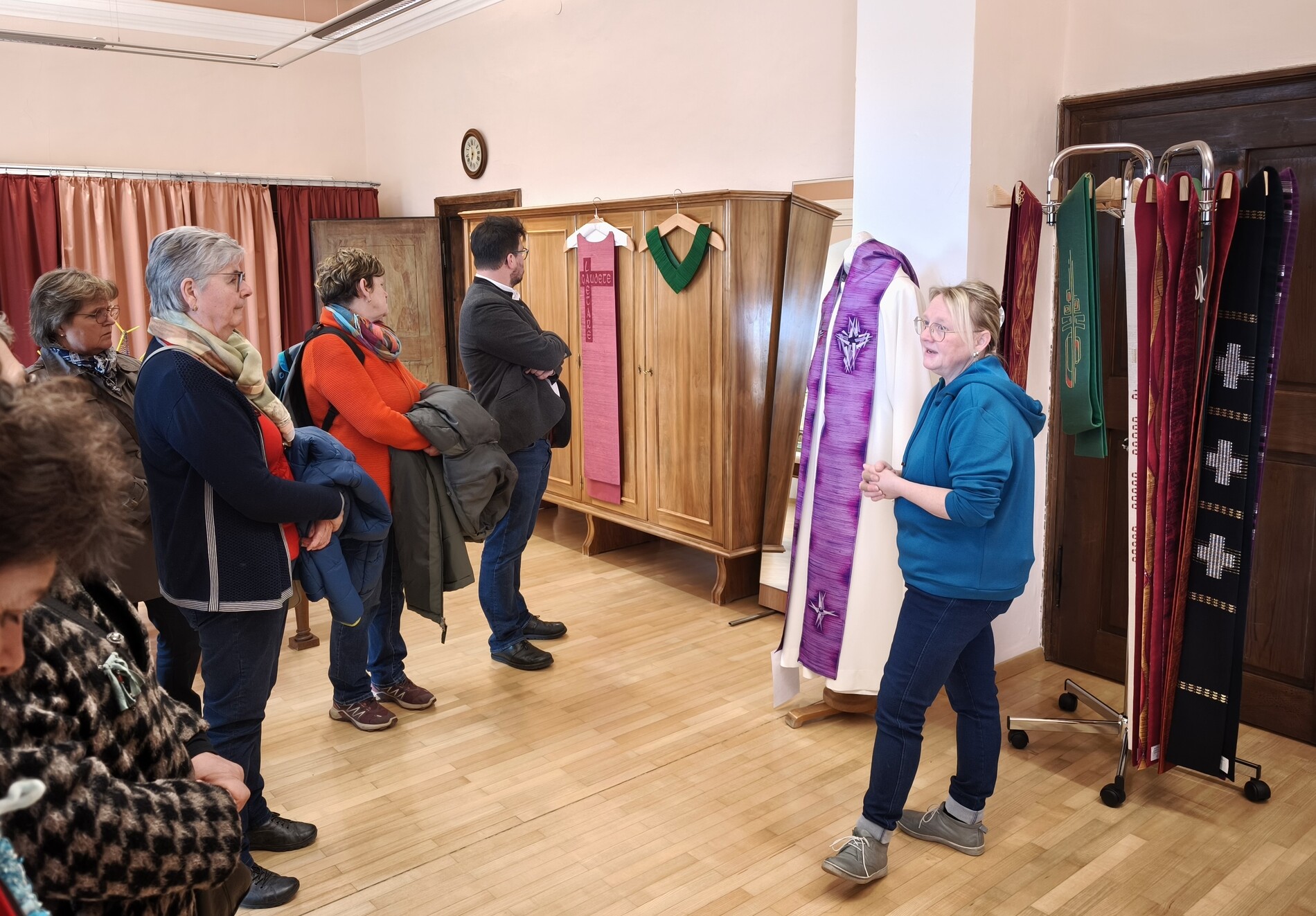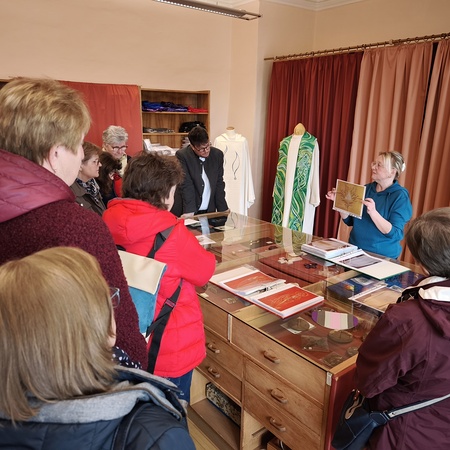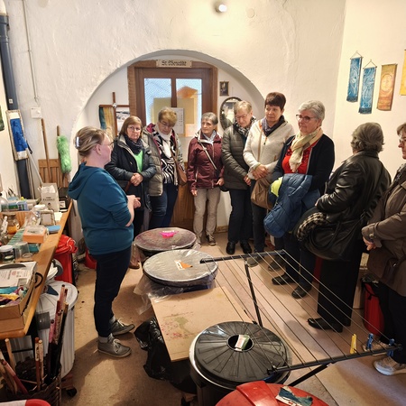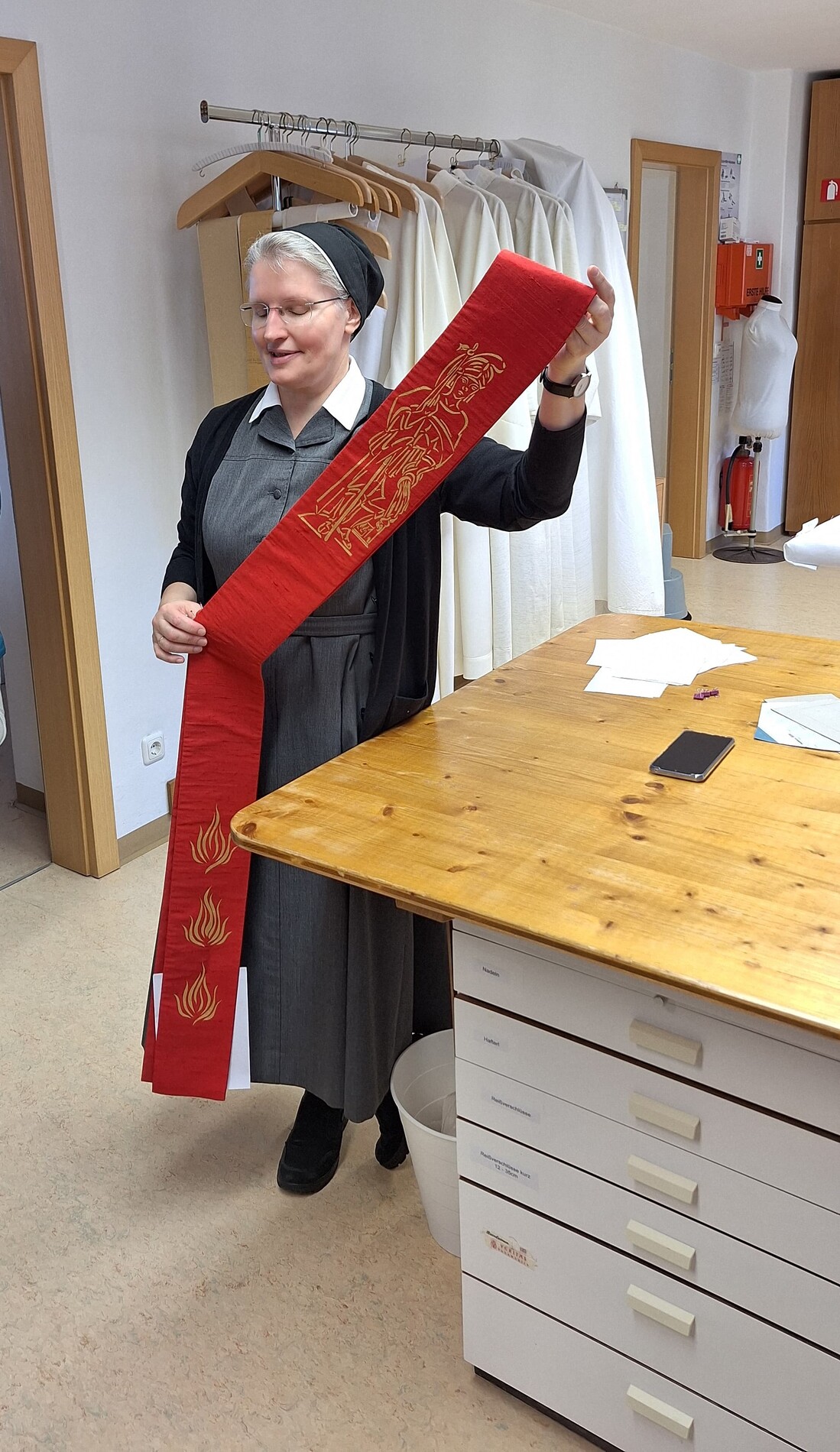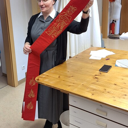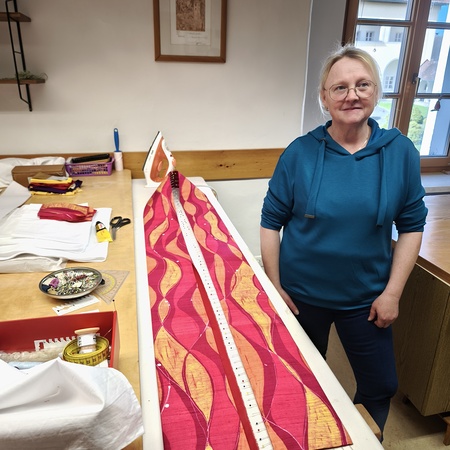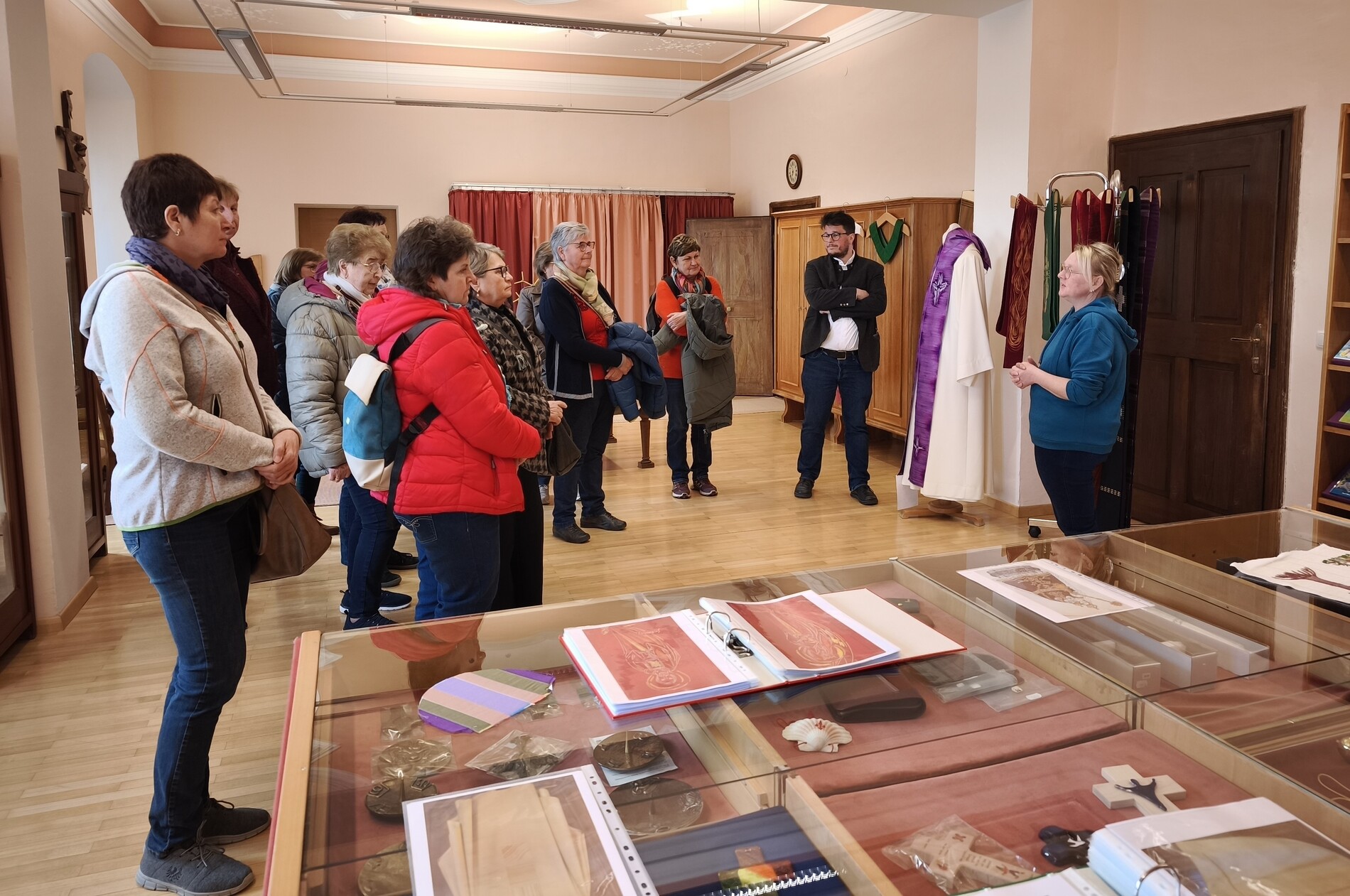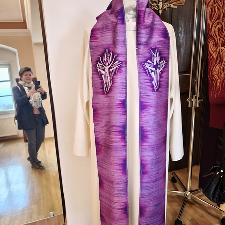 Leider werden immer mehr Paramenten-Stickereien aufgelassen und so gibt es in Steinerkirchen lange Wartezeiten auf handgefertigte Messgewänder, Stolen oder Restaurierungen von Fahnen oder anderen Paramenten. Wir waren begeistert von den schönen Stoffen, Stickereien und Motiven, die auf verschiedenste Weise hergestellt werden.