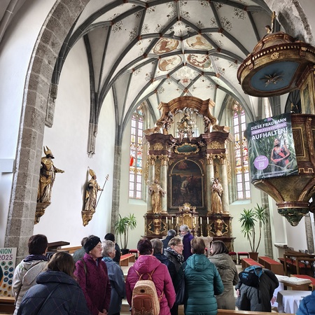 Nach der Führung durch die Paramentik durften wir noch die übrigen Trakte des Klosters kennenlernen und feierten schließlich mit P. Florian die Messe in der Klosterkapelle. Im Anschluss an das Mittagessen und einen kurzen Blick in die Pfarrkirche ging es weiter nach Allhaming zur Pralinenwelt Wenschitz.