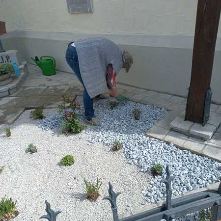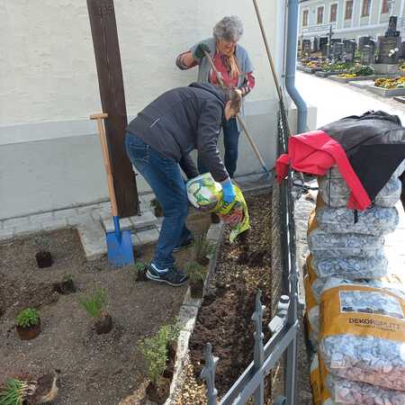 Die Stauden wurden vom Stiftsgärtner Stefan Kastenhofer ausgesucht und geliefert, beim Pflanzen und Kies aufbringen waren Anneliese und Leopold Haneder, Hilda Heiligenbrunner und Cilli Kammerhofer fleißig am Werk. Vielen Dank für die gute Idee und die Umsetzung!