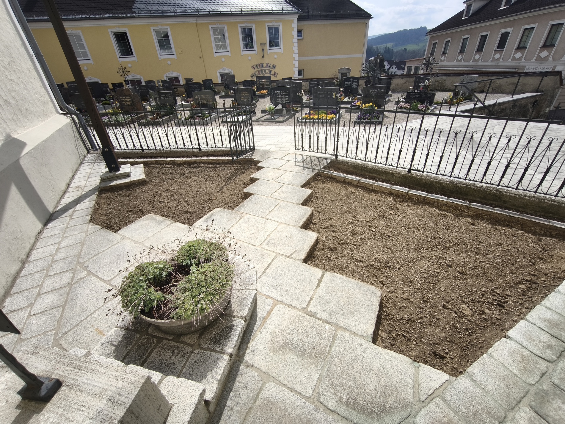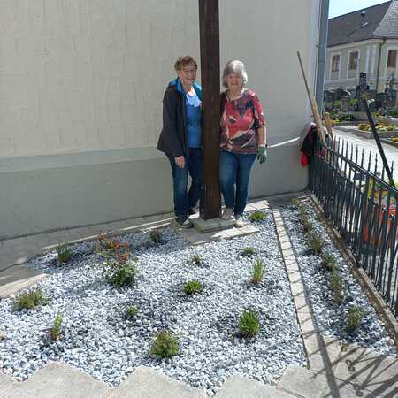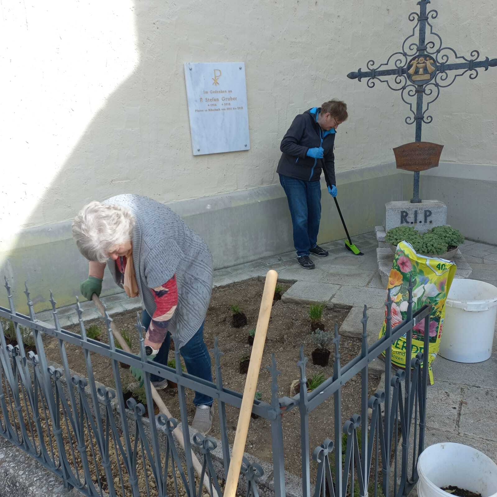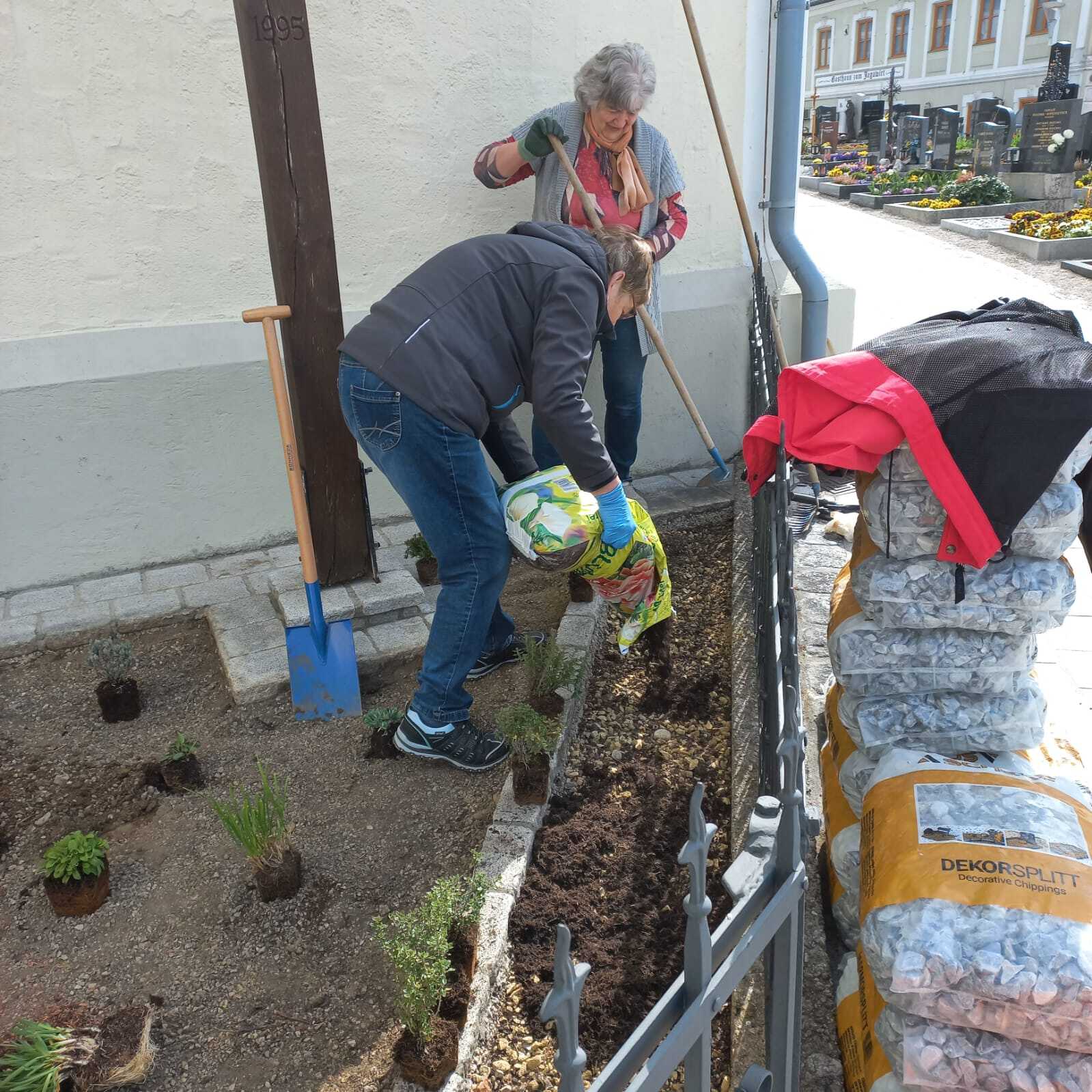 Auf Anregung und mit tatkräftigem Einsatz der kfb Damen wurde nun das Priestergrab beim Kirchturm neu gestaltet und mit dauerhaften Stauden bepflanzt.