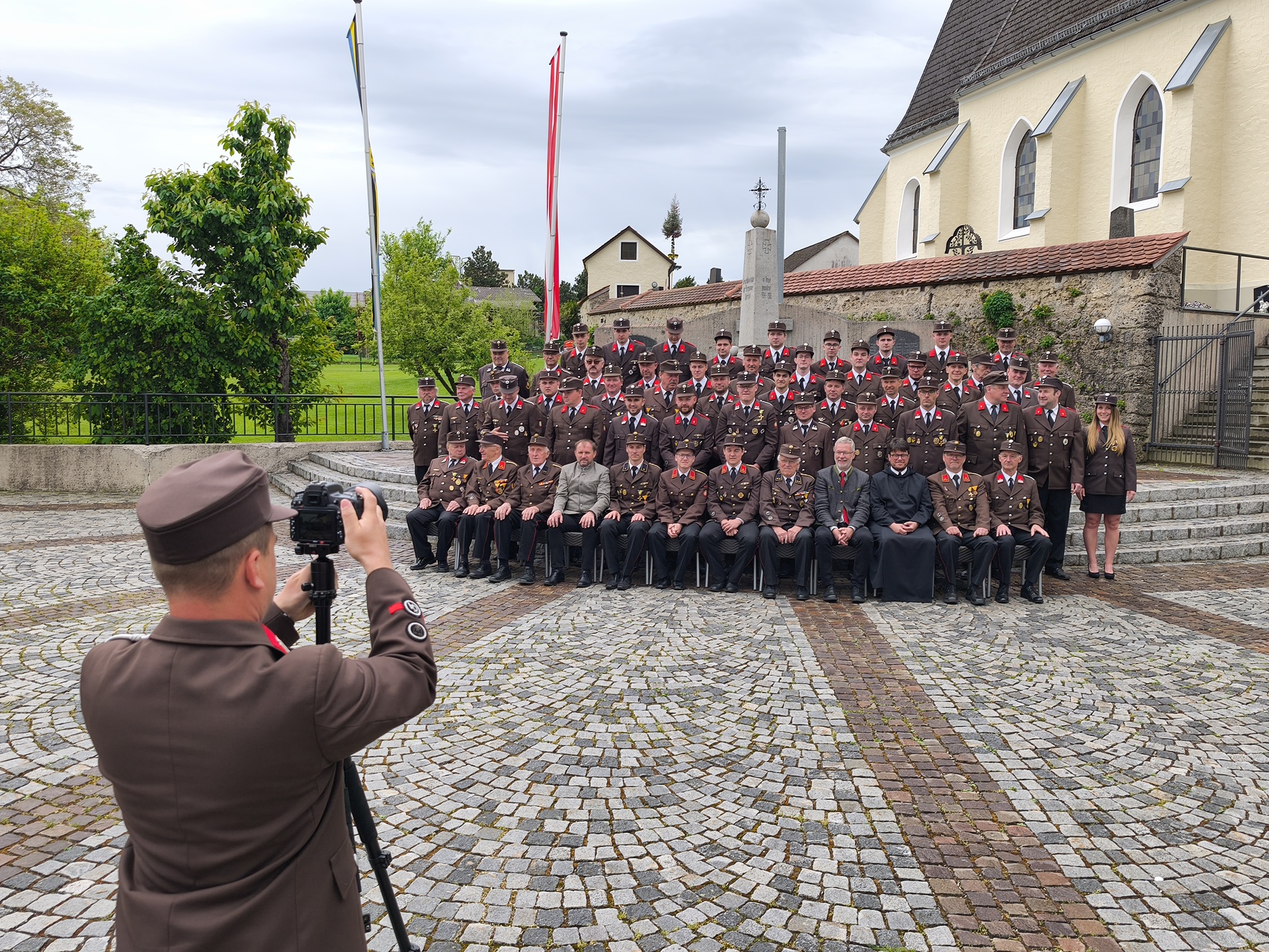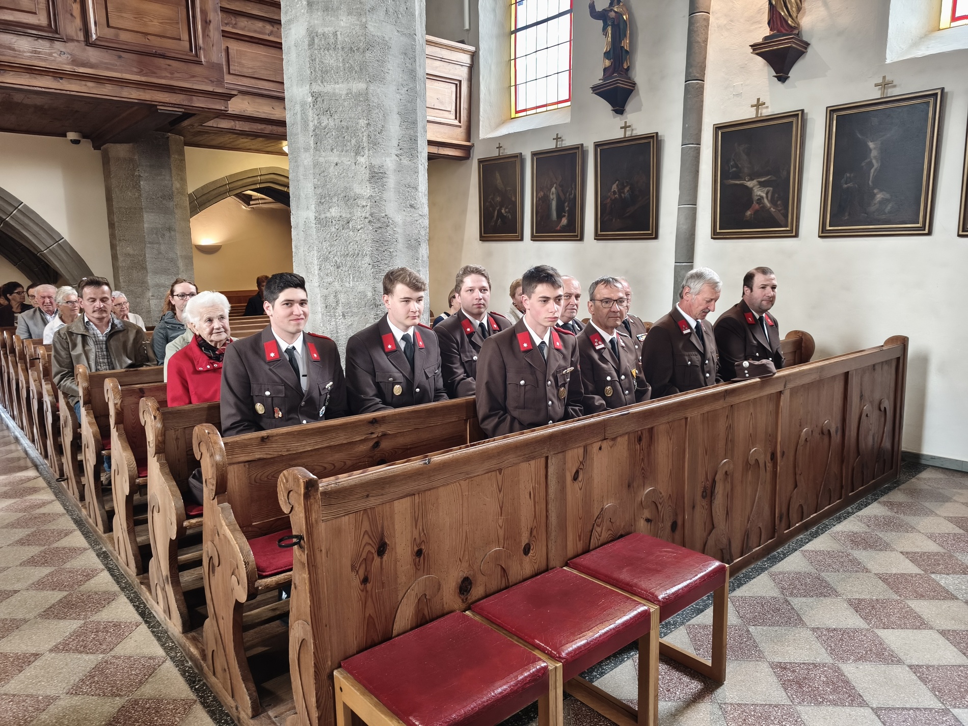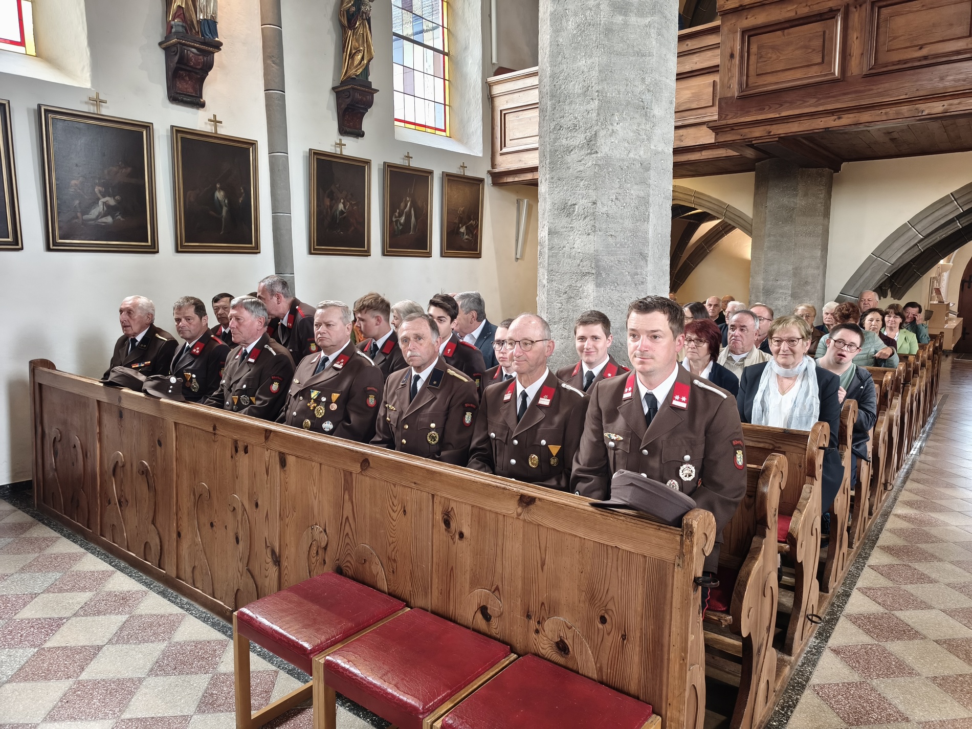 An diesem Florianisonntag nahm die Feuerwehr in größtmöglicher Mannschaftsstärke an der Messe teil - ein beindruckendes Bild - waren doch alle im Anschluss zum gemeinsamen Gruppenfoto am Dorfplatz geladen, das aus Anlass des 125 Jahr-Jubiläums entstand.