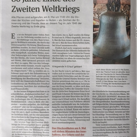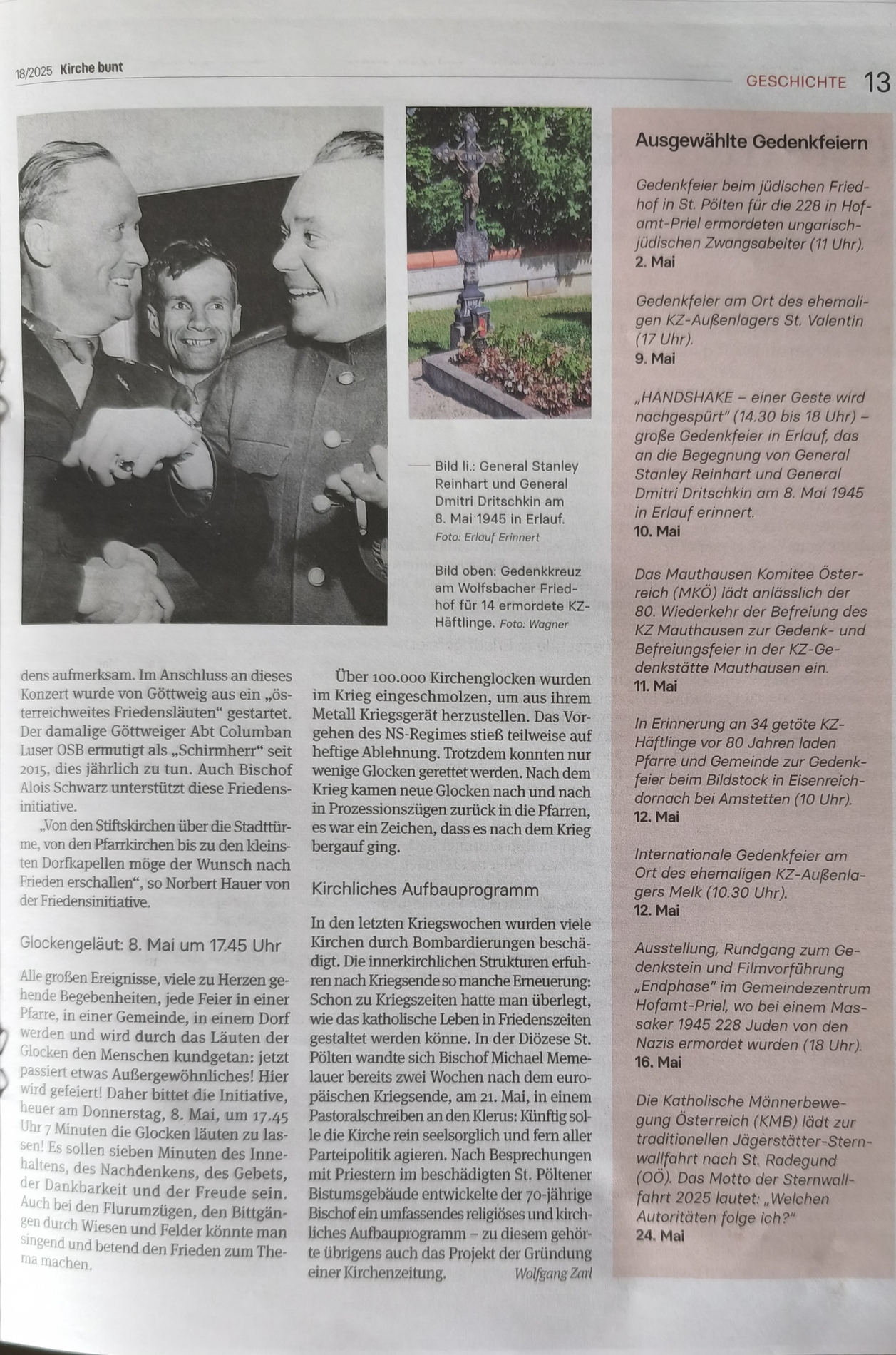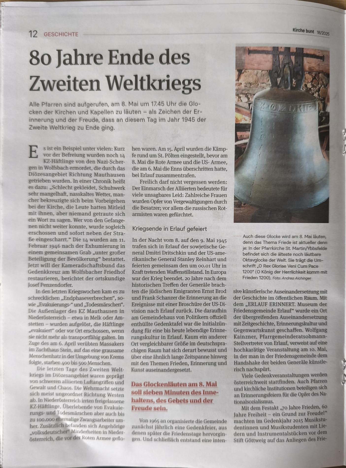 Läuten für den Frieden: am Donnerstag 8.5. läuten um 17.45 Uhr die Glocken für 7 Minuten - und zeugen so vom Ende des 2. Weltkrieges vor 80 Jahren!