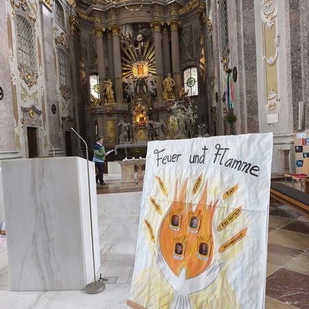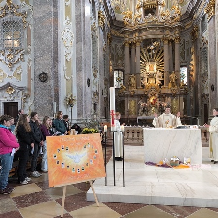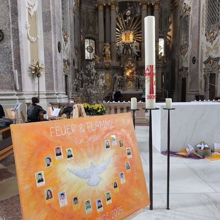 Begleitet vom Motto der diesjährigen Firmvorbereitung „Feuer & Flamme“ und gestärkt durch Gottes guten Geist (….und doch noch bei gutem Wetter) ging es am Samstag, den 17. Mai 2025, mit unseren 17 Firmlingen auf den Sonntagberg, zusammen mit den 4 St. Georgner Firmlingen - ein würdiger Abschluss der Vorbereitung auf das Hl. Sakrament.