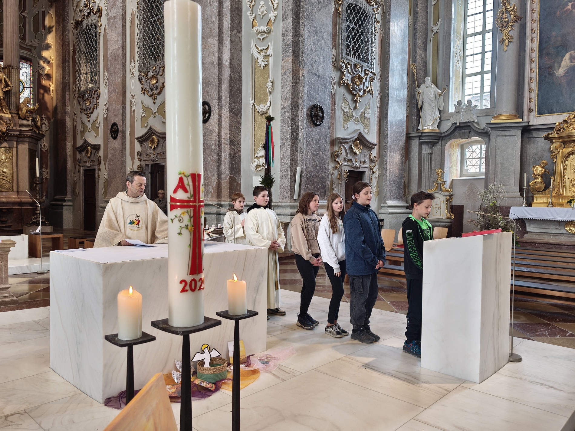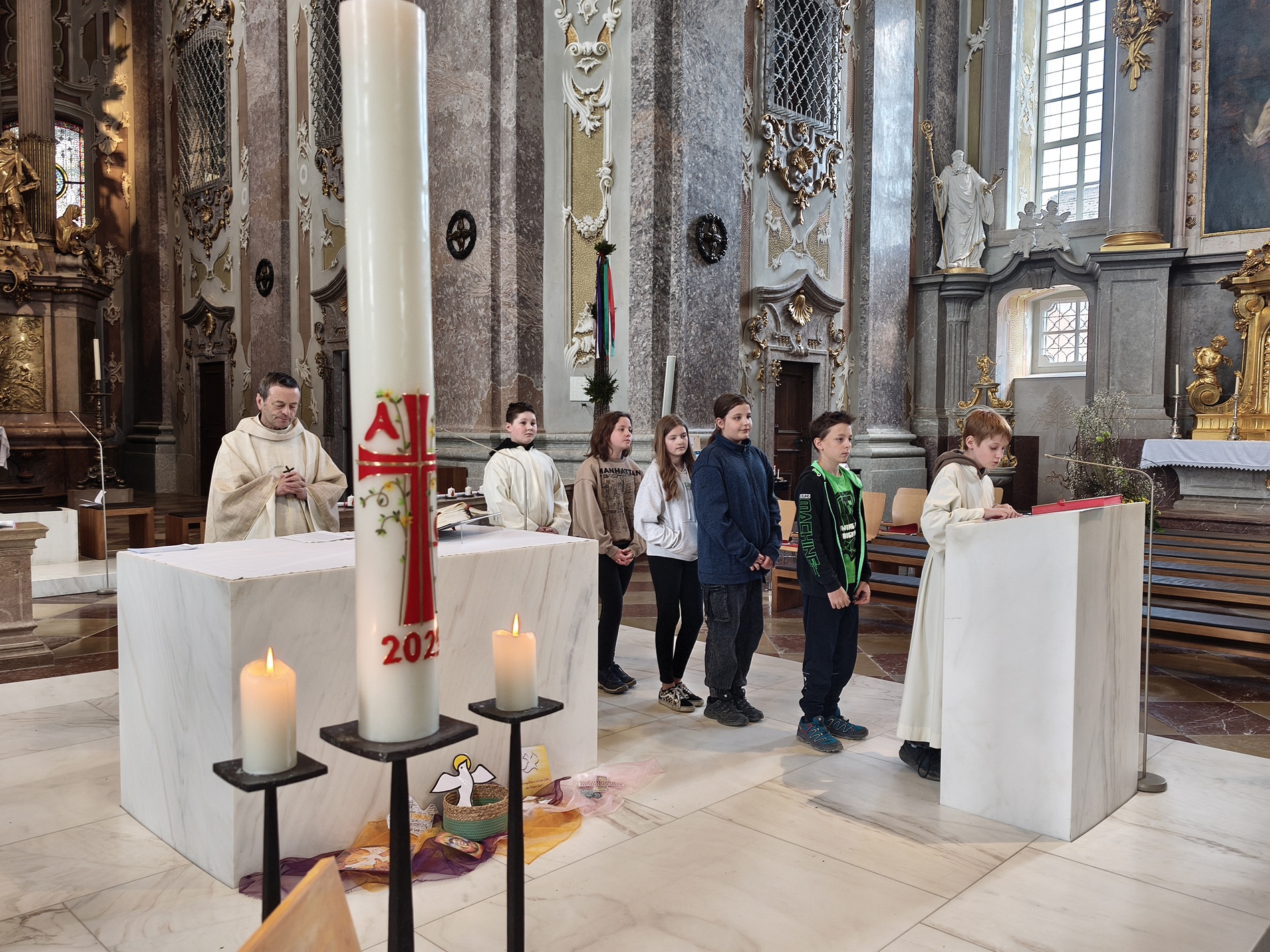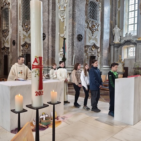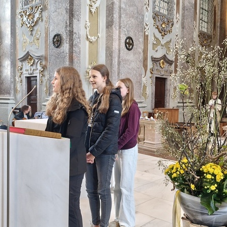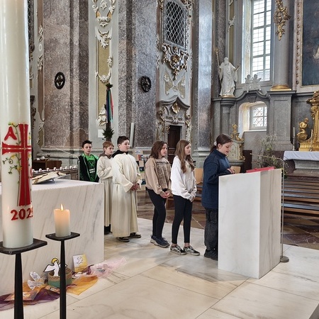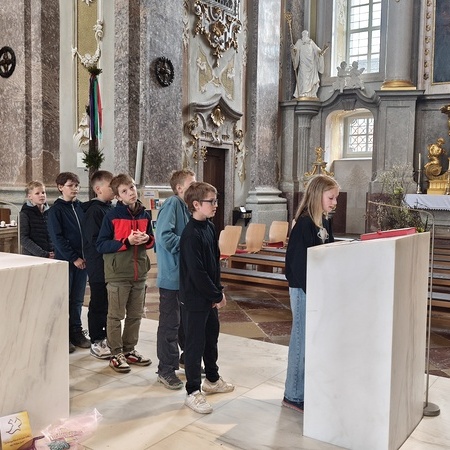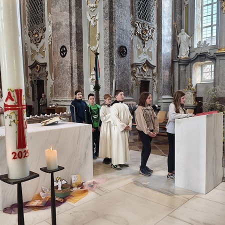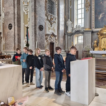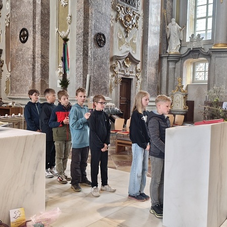 Während der Pilgerung legten wir kleine Pausen mit Gebets-Impulsen bei den Kapellen ein und am Spielplatz durften sich die Firmlinge zuletzt noch austoben. Danach zogen wir gemeinsam in die Basilika zum feierlichen Gottesdienst ein, bei dem die Firmlinge ihre Firmkarte überreicht bekamen.