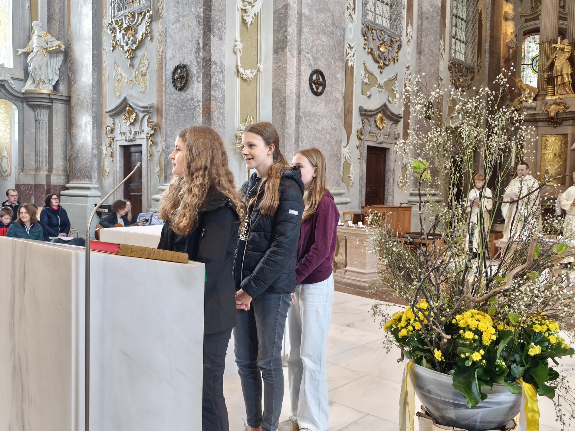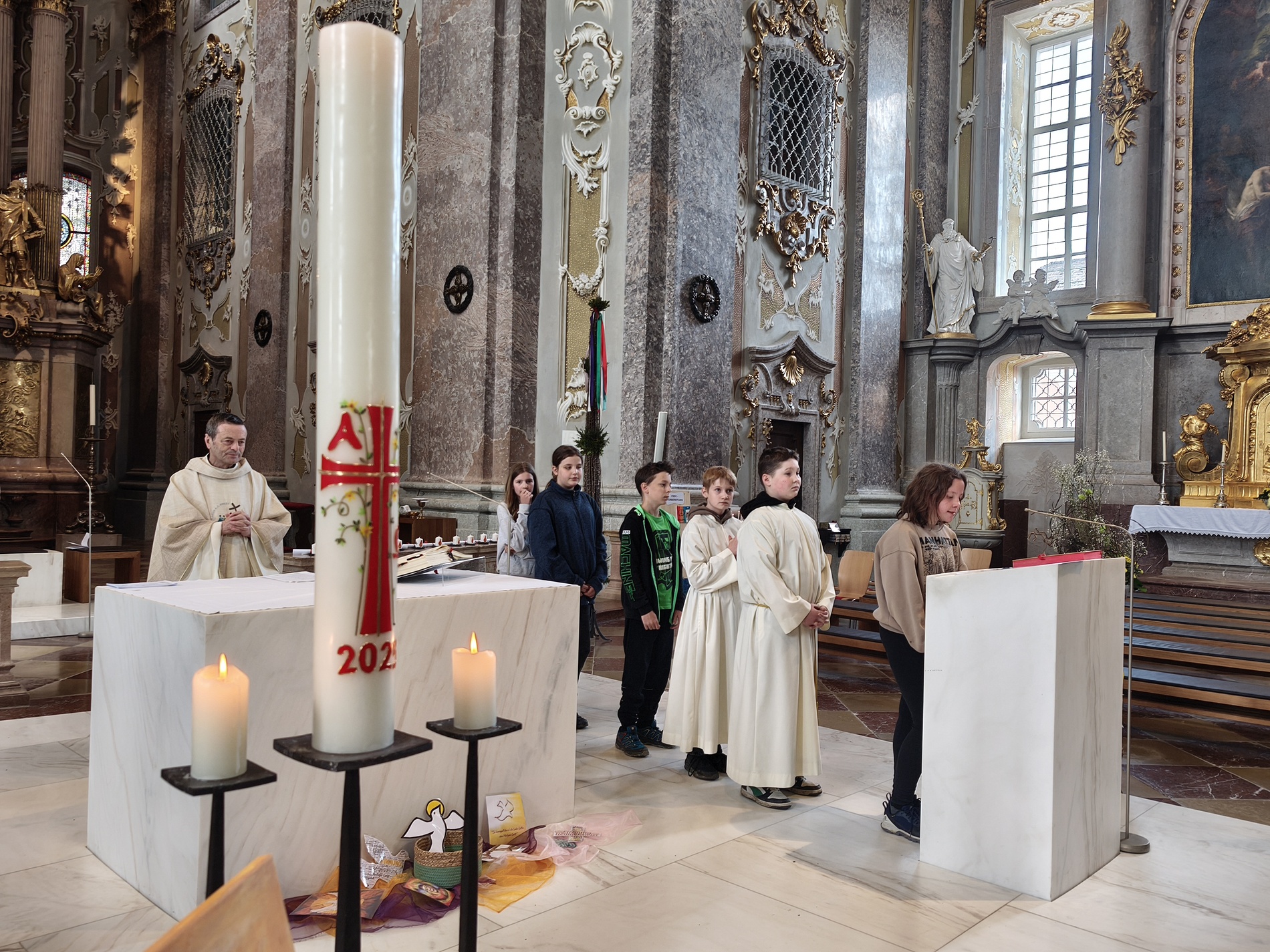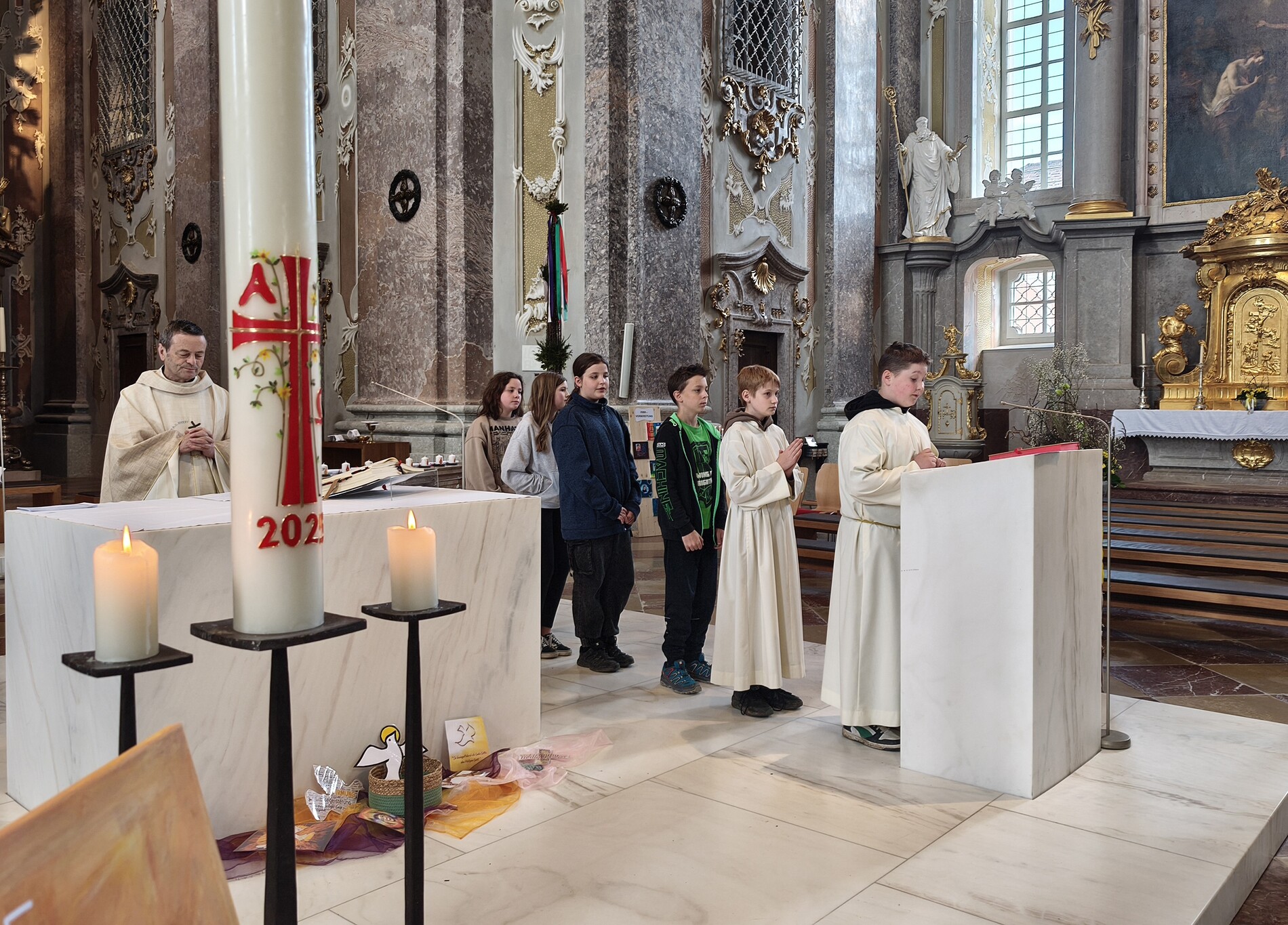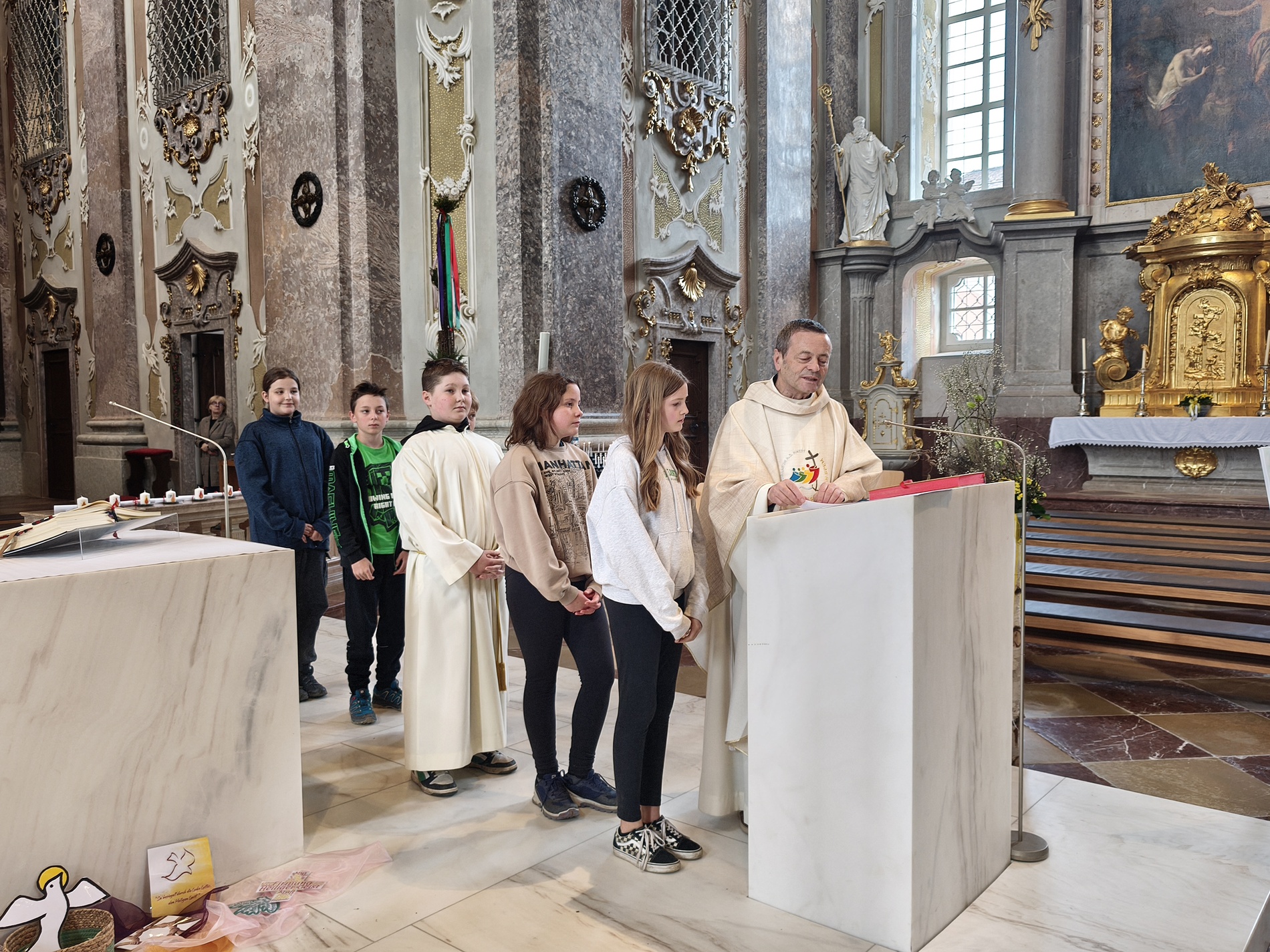 Während der Pilgerung legten wir kleine Pausen mit Gebets-Impulsen bei den Kapellen ein und am Spielplatz durften sich die Firmlinge zuletzt noch austoben. Danach zogen wir gemeinsam in die Basilika zum feierlichen Gottesdienst ein, bei dem die Firmlinge ihre Firmkarte überreicht bekamen.