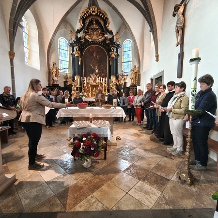 Die Leiterin des Pfarrcaritas-Arbeitskreises Silke Bauer sprach im Anschluss an die Andacht ein Danke an Monika Bramauer aus - unsere ehemalige Pfarrcaritas-Referentin, von der wir uns durch den Wechsel des Dekanats verabschieden mussten und begrüßte Ilse Kappelmüller sehr herzlich.