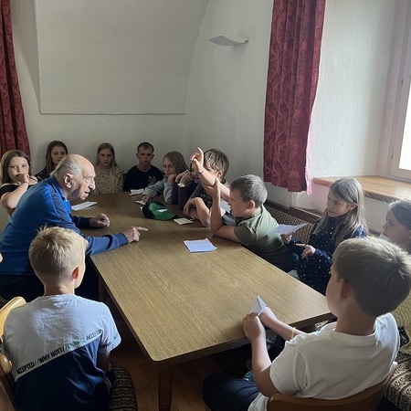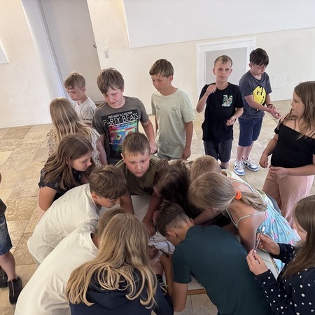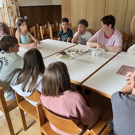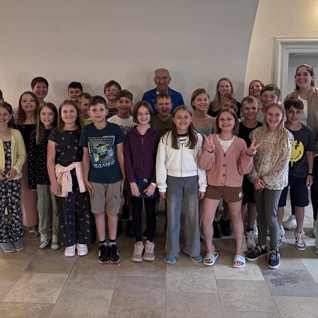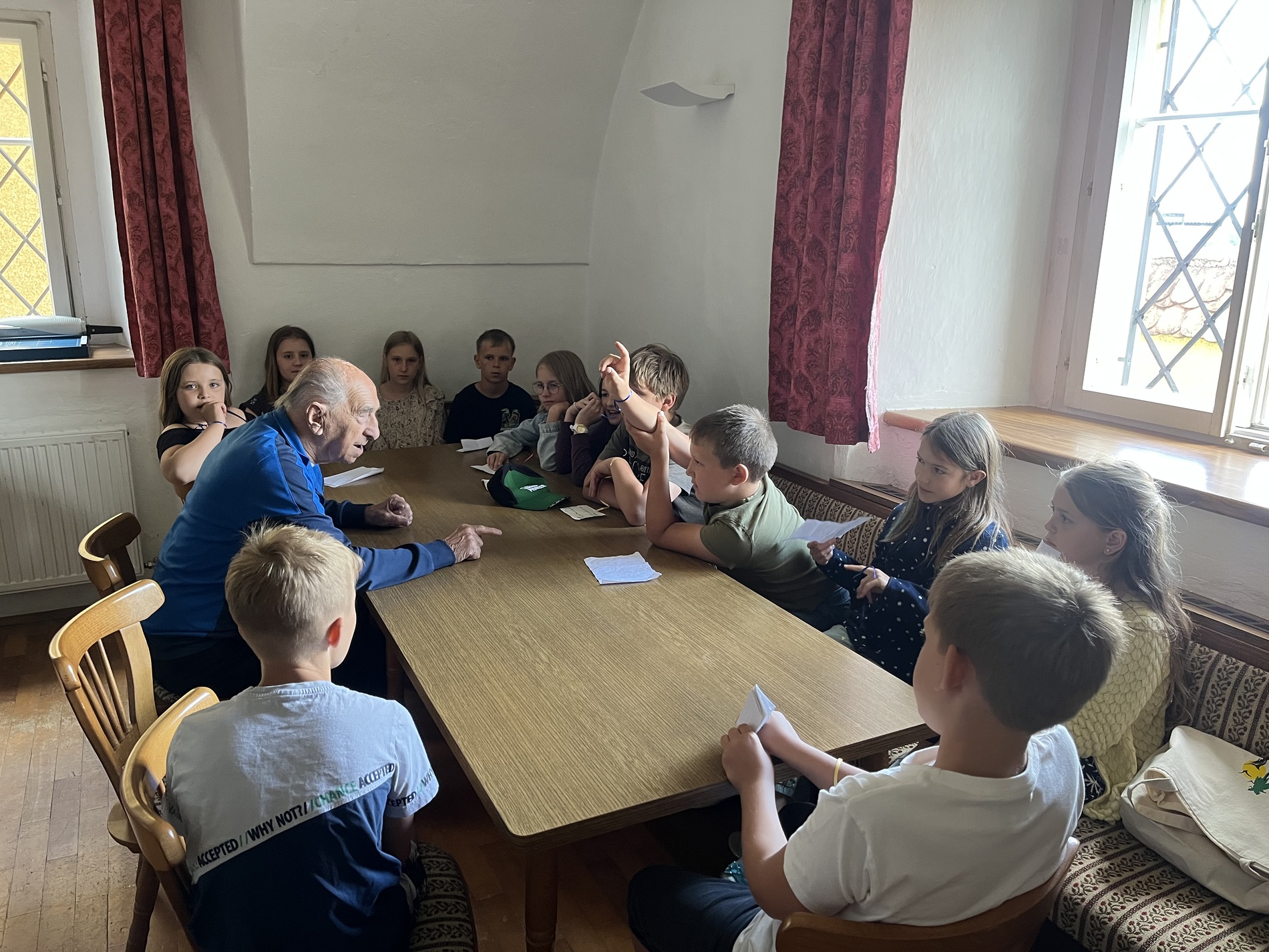 Insgesamt 23 SchülerInnen nahmen daran teil. Im Mittelpunkt stand der Zeitzeuge OSR Karl Lammerhuber, der eindrucksvoll aus seiner Kindheit in der Kriegszeit erzählte. In Kleingruppen durften die Kinder Herrn Lammerhuber zuhören und ihm Fragen stellen – ein berührender und authentischer Zugang zur Geschichte.