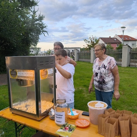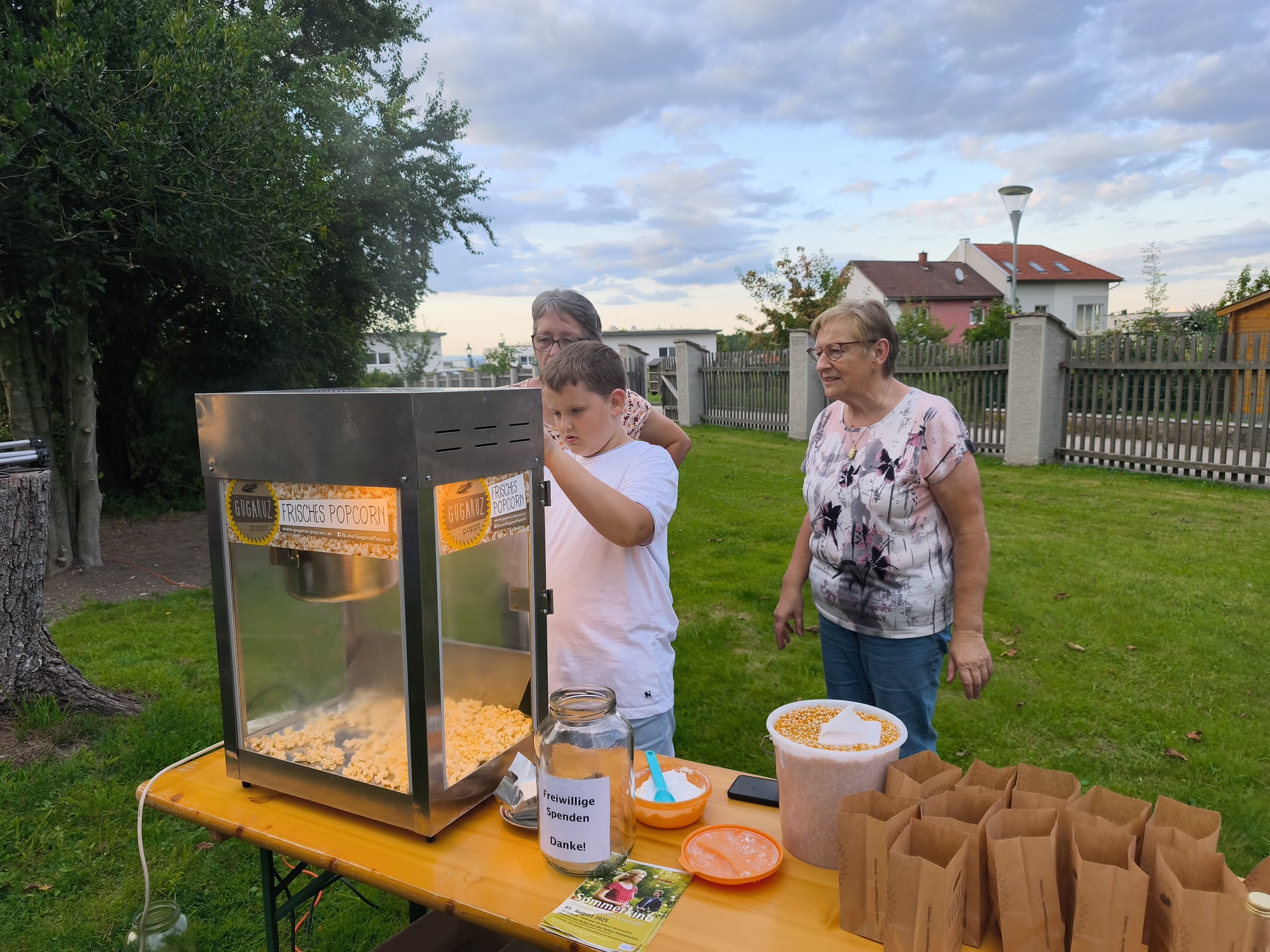 Um die 200 BesucherInnen haben die Plätze im Pfarrgarten belegt, um diesen Film zu sehen - und dabei das Angebot von Popcorn und Getränken eifrig genutzt. Der Wettergott war uns an diesem Abend sehr gnädig, nur ein paar wenige Tropfen zeugten von der herannahenden Wetterfront (die dann nach 23 Uhr eintraf ..!).