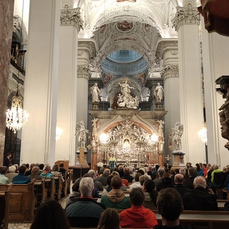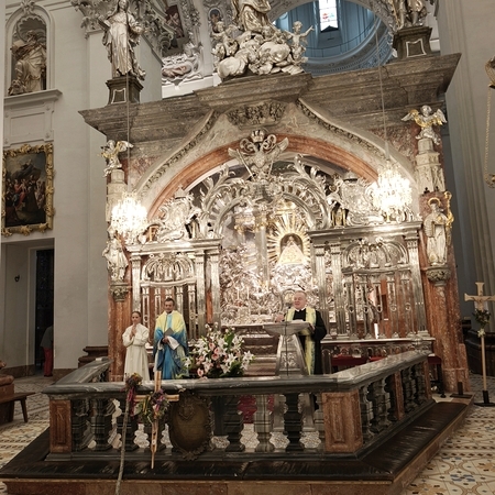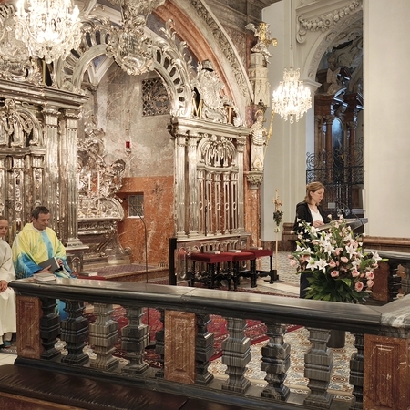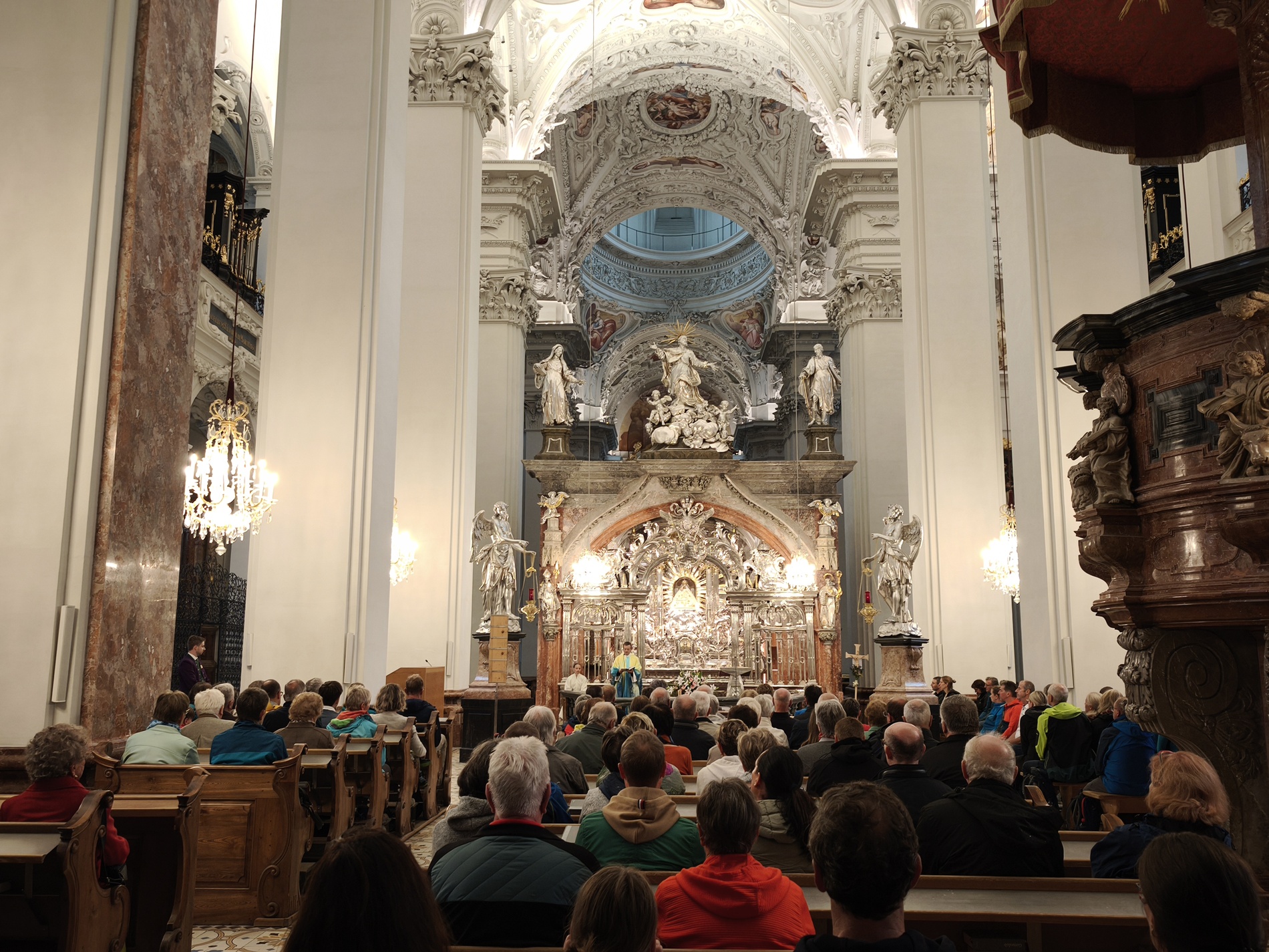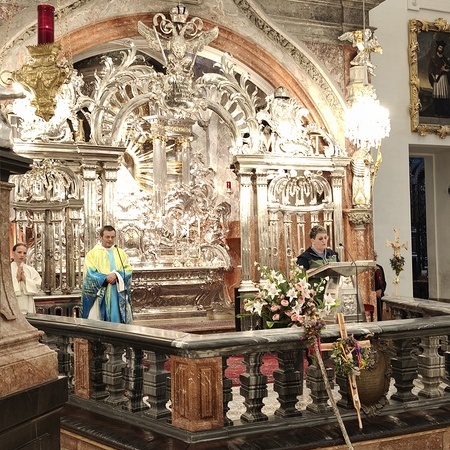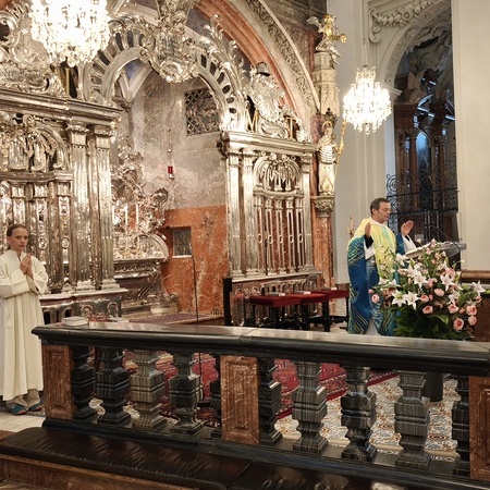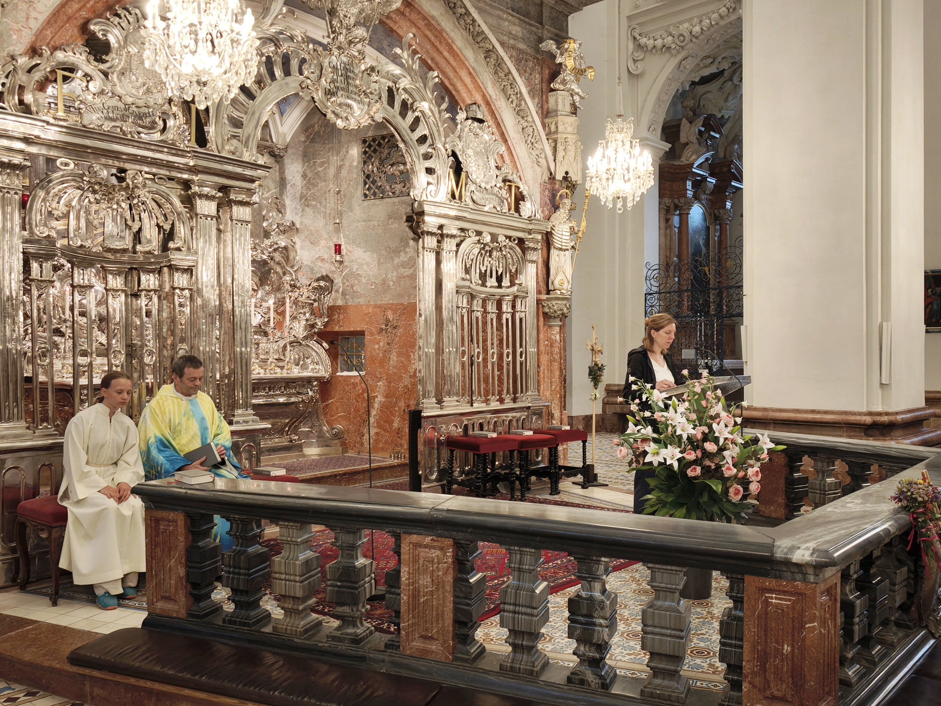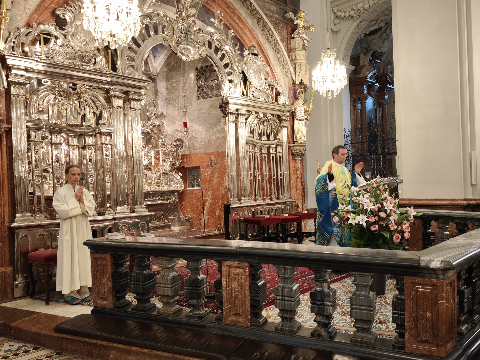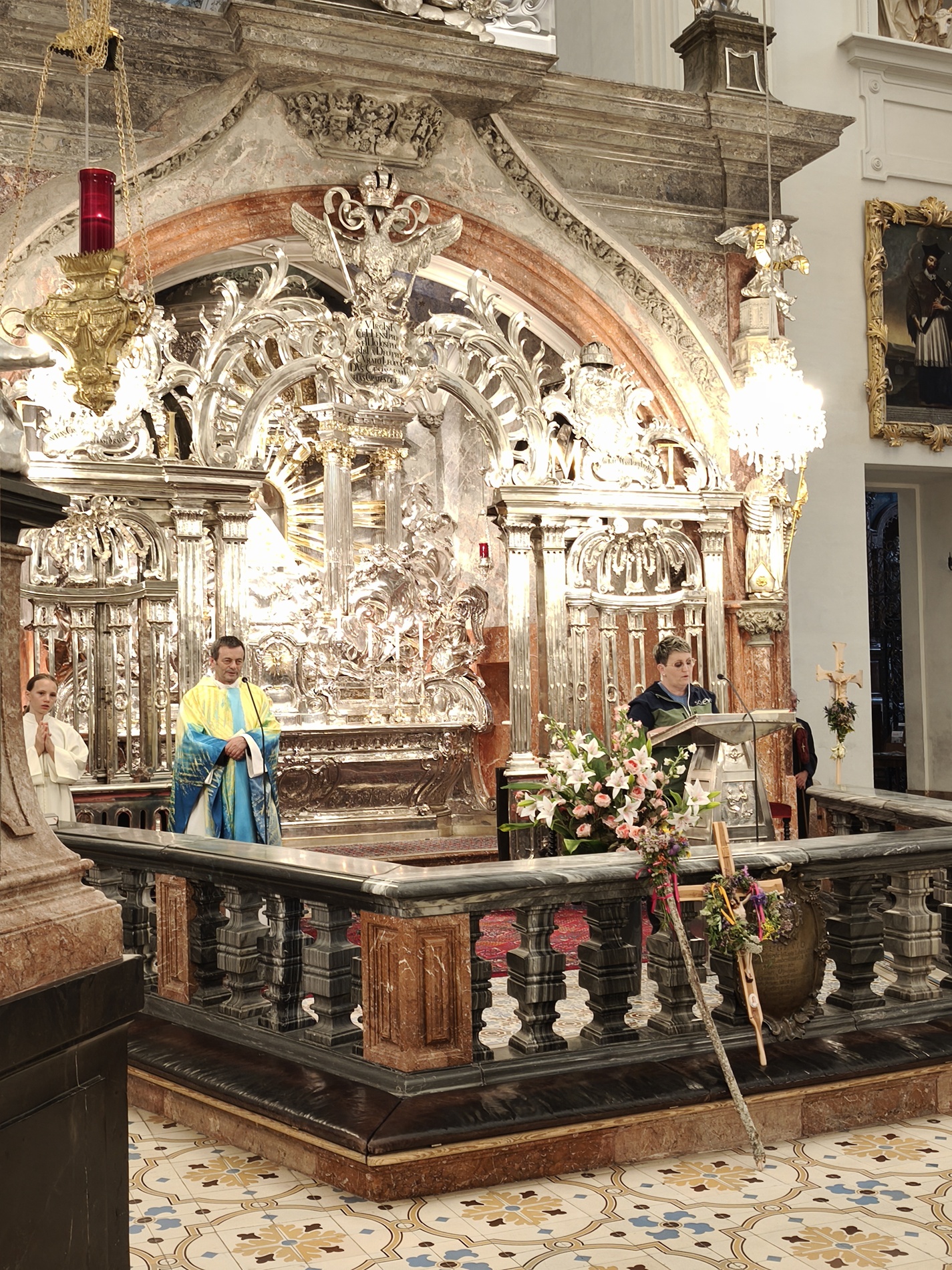 P. Laurentius hielt die Hl. Messe am Gnadenaltar in der Basilika, unterstützt von Ministrantin Anna Schönegger, die als jüngste Wallfahrerin von Wiener Bruck weg den Weg nach Mariazell auch selber zu Fuß zurücklegte - tolle Leistung, liebe Anna!