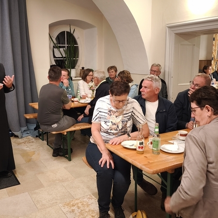 Die Idee dieser Veranstaltung war es, einfach einmal „Danke“ zu sagen - in den Begrüßungsreden von Pfarrer P. Florian und BGM Fritz Hinterleitner treffend mit „Dank´sche und Bitt´goar sche dafür“ formuliert; und es wurde ein sehr gemütlicher Abend im Pfarrhof, kulinarisch begleitet von Grillerei und Kaffee/Kuchenbuffett (Danke an alle fleißigen BäckerInnen!) Das Serviceteam an diesem Abend setzte sich aus Mitgliedern des Gemeinderats und des Pfarrgemeinderats zusammen, die Männer des Gemeinderats grillten trotz strömenden Regens und starkem Wind vor dem Pfarrhof unter einem Zeltdach.