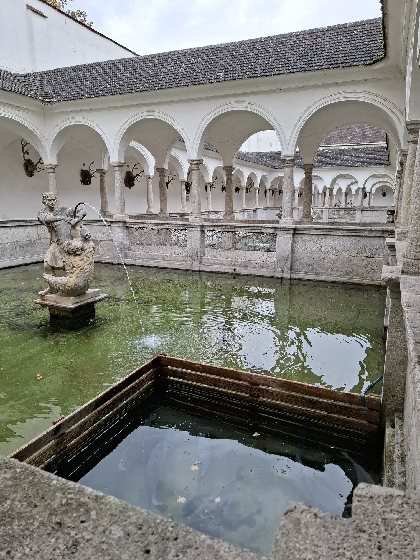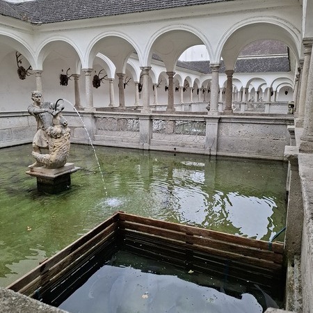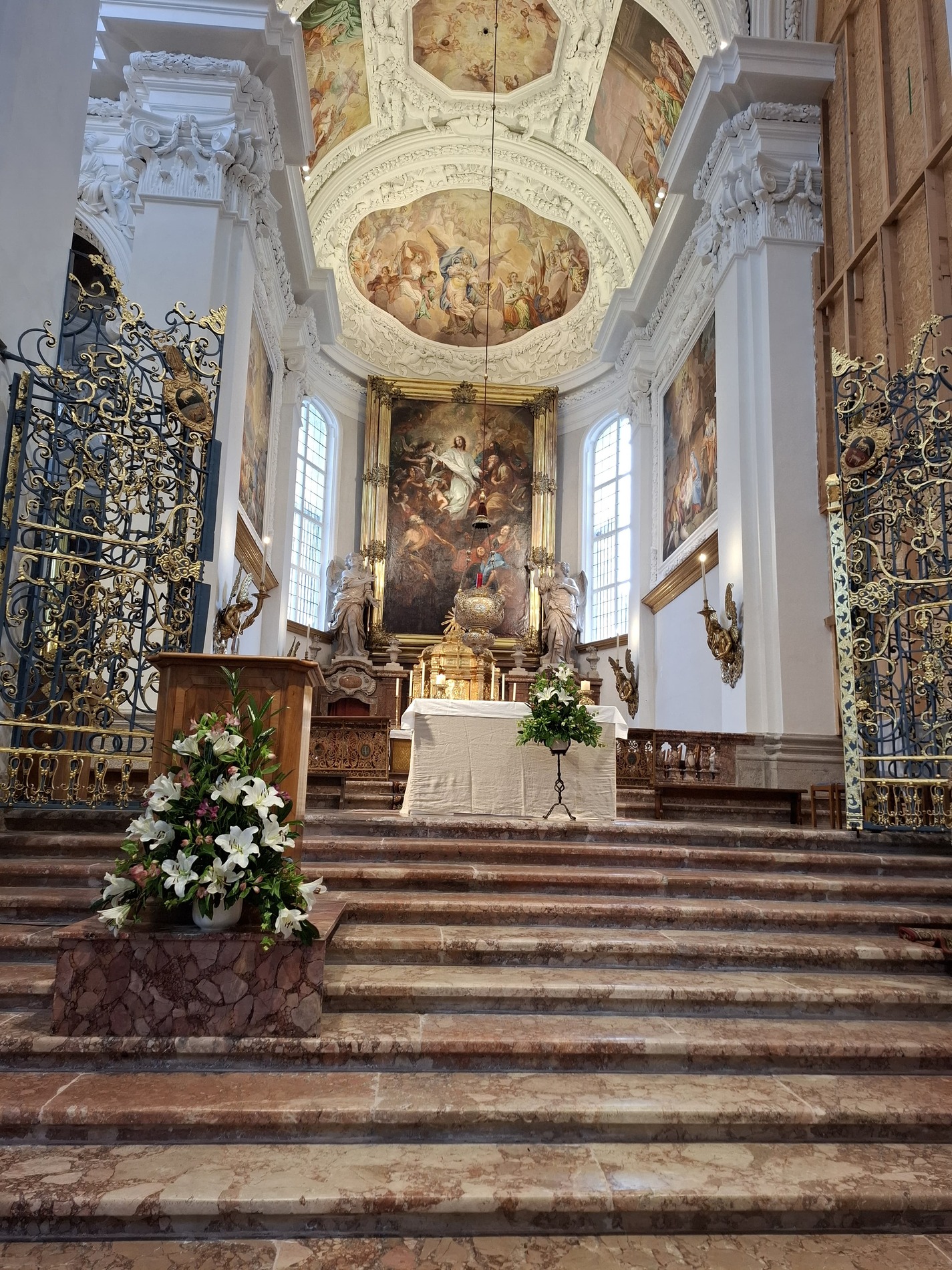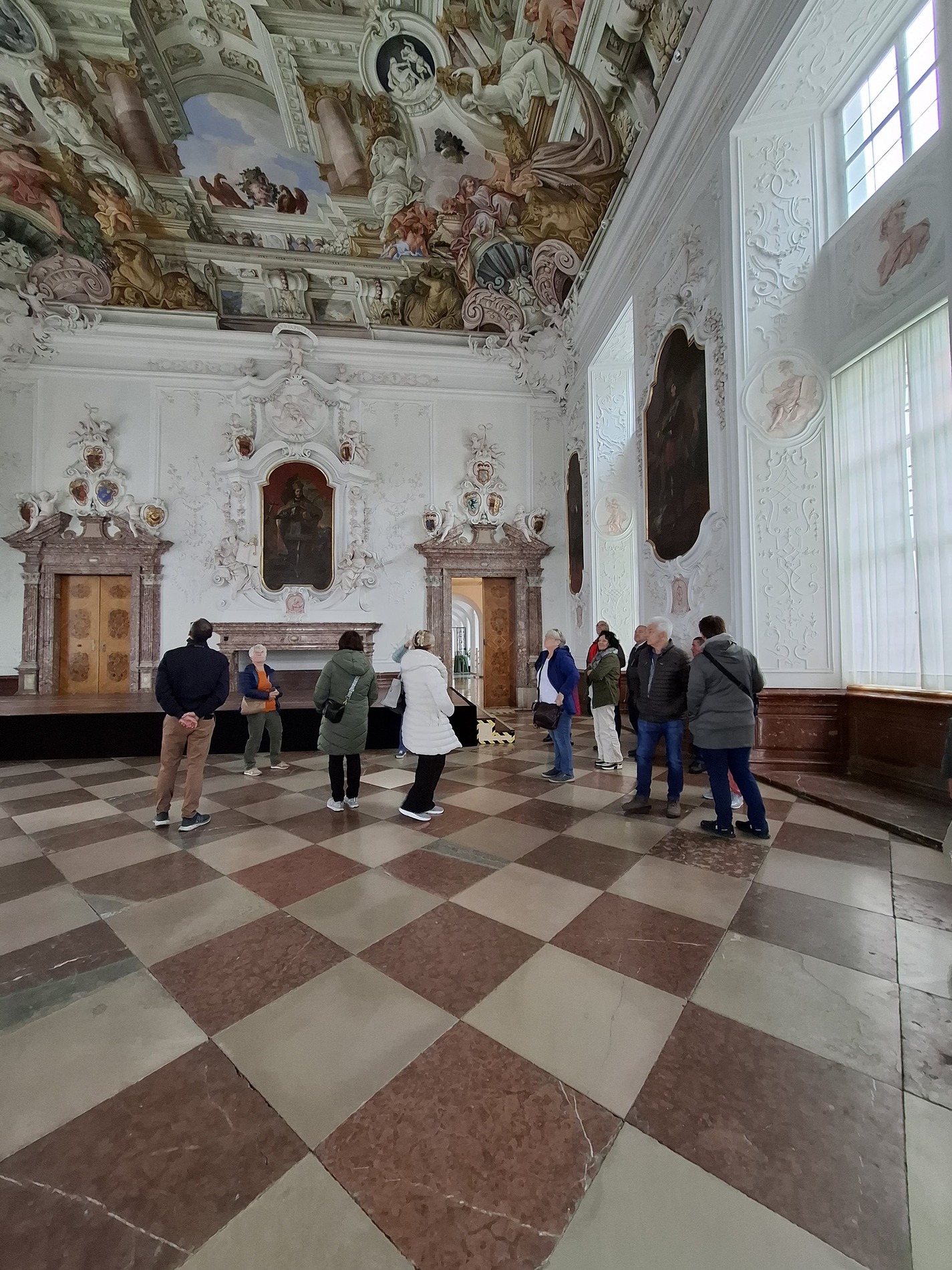 Das miteinander Singen und Musizieren macht uns Freude und trägt zu einer guten Gemeinschaft bei uns im Biberbacher Kirchenchor bei. Daher ist es auch wichtig, 1x im Jahr einen gemeinsamen Ausflug zu machen. Dieser führte uns am Samstag, den 18. Oktober 2025, nach Oberösterreich in das Benediktiner Stift Kremsmünster. Nach einer kleinen Stärkung in der Stiftsschänke und einer kurzen Andacht in der wunderschönen Kirche wurden wir durch mehrere Räume des Klosters geführt. Sehr eindrucksvoll waren dabei der Fischkalter mit den prunkvollen Wasserbecken, der Kaisersaal, die unzähligen Räume mit den Gemälden, Decken- und Wandfresken diverser Maler, die Schatzkammer mit dem Tassilokelch und die sehr imponierende Bibliothek mit ca. 160.000 Büchern.