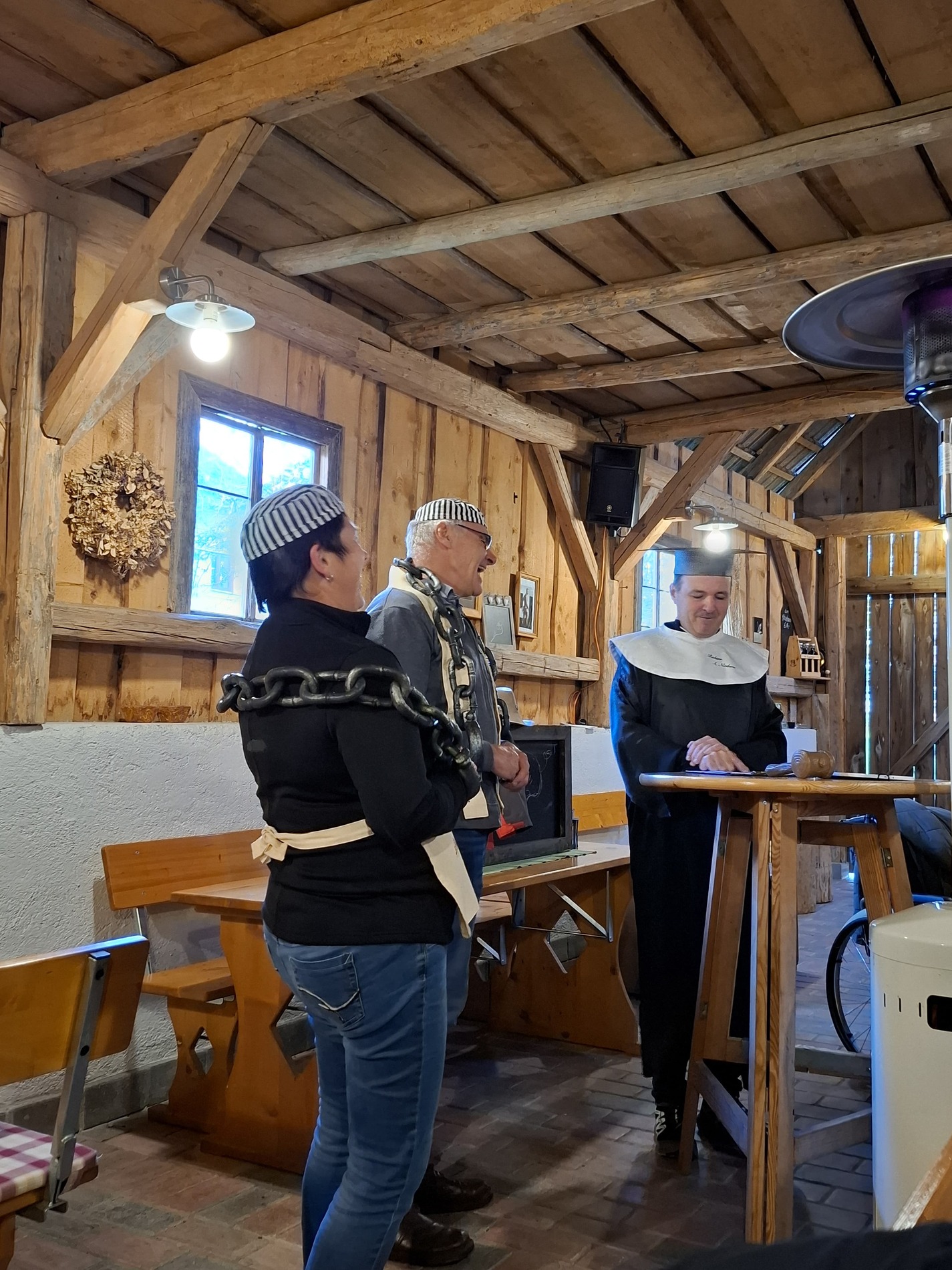 Nach diesem schönen Erlebnis ging es weiter nach Sierning zum Mittagessen ins Gasthaus Halusa (sehr empfehlenswert!). Nicht weit von dort entfernt fand unser Nachmittagsprogramm statt - nämlich eine „Sauschädel-Krimirallye“. Bei diesem spannenden Rätselspaß galt es herauszufinden, wer der Bäuerin den Sauschädl gestohlen hat. Mit verteilten Rollen, gespickt mit kulinarischen Vorzügen, wurde dieser Nachmittag zu einem unterhaltsamen und spannenden Abenteuer!