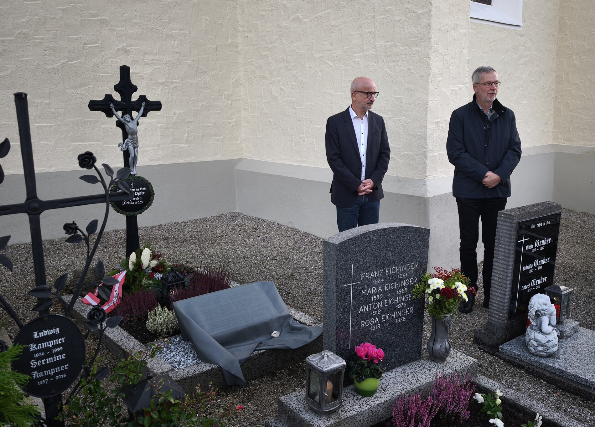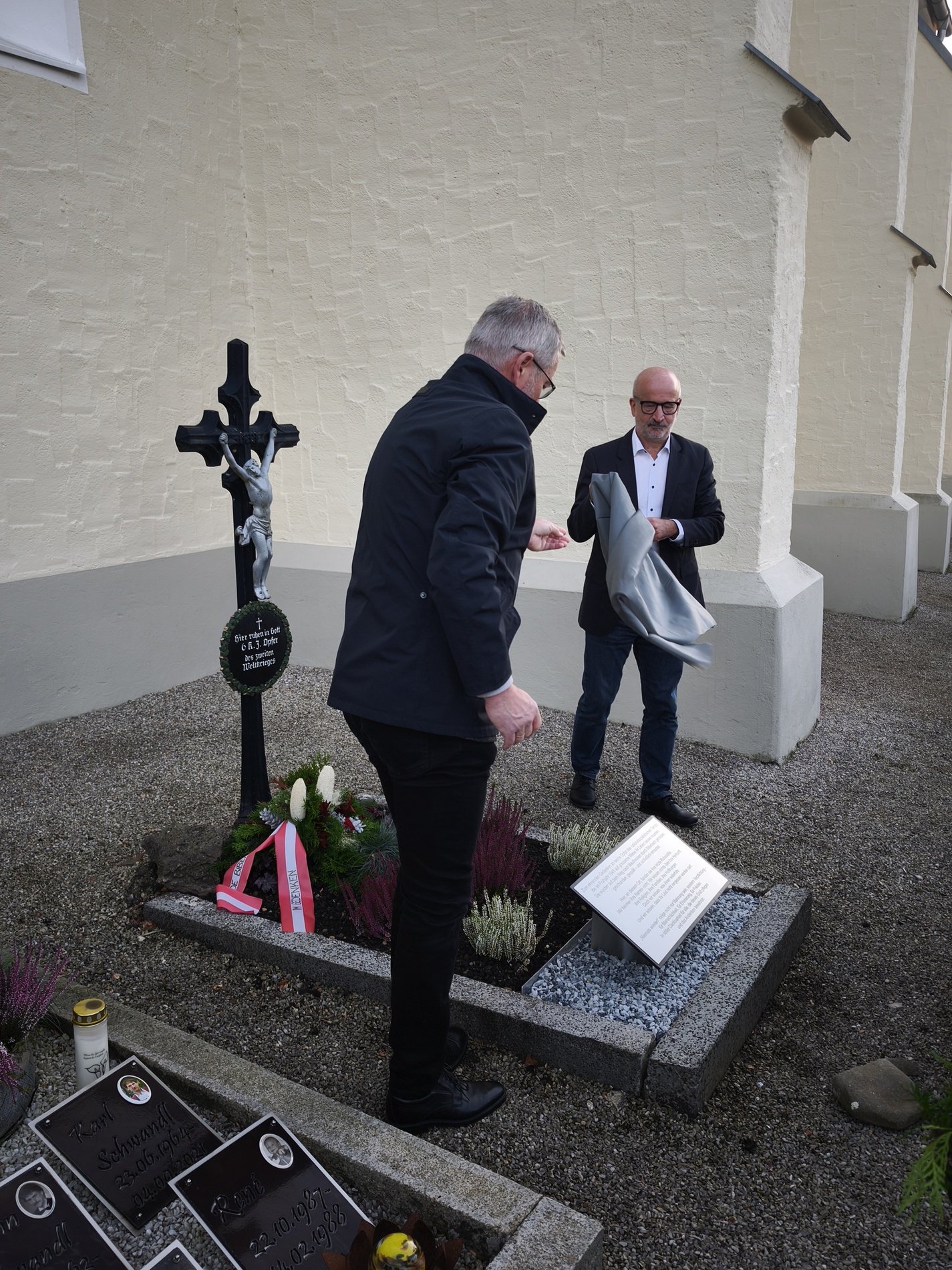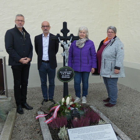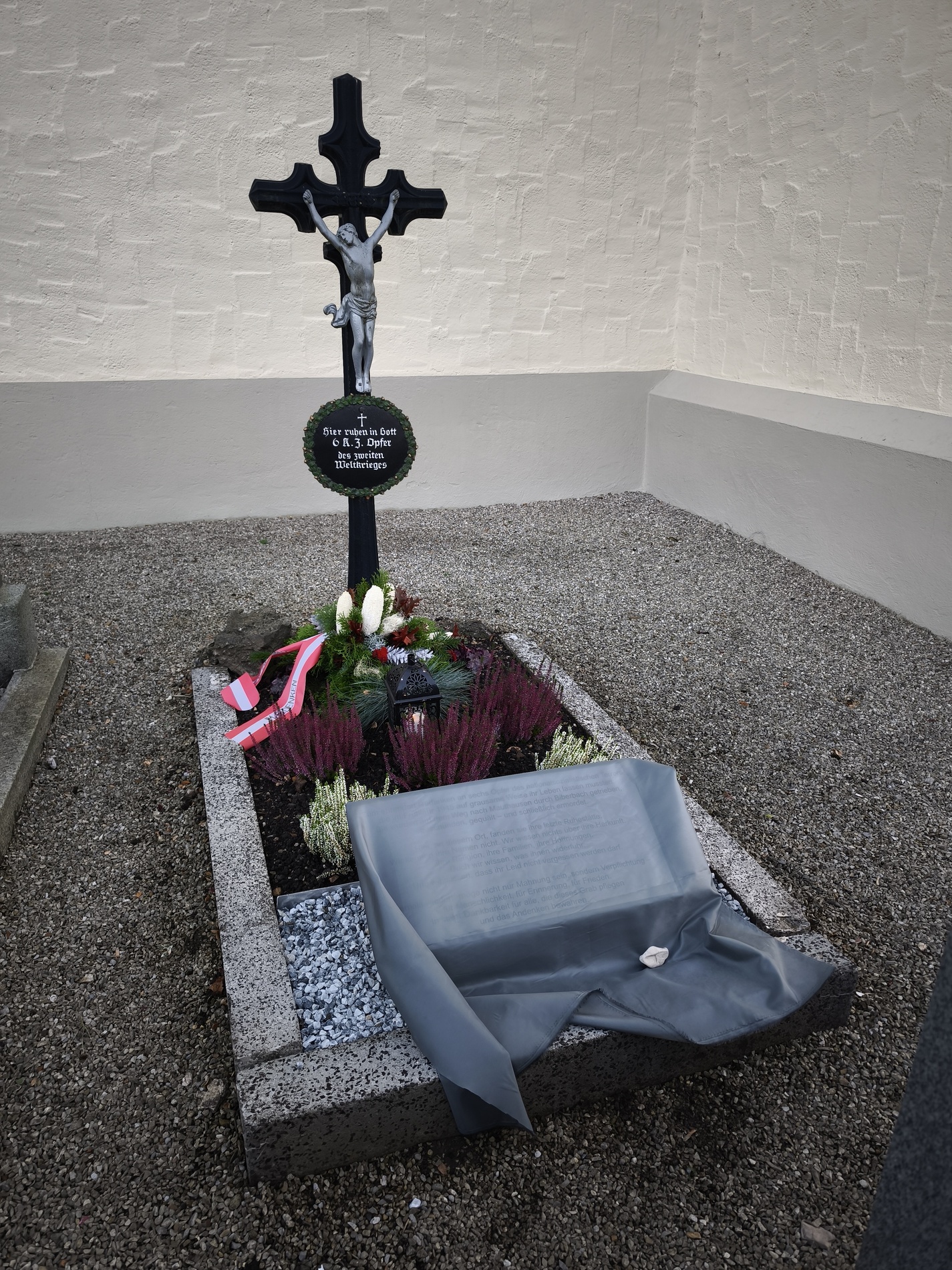 Freitag 16 Uhr: Enthüllung der Gedenktafel beim Grab von 6 KZ Opfern am Pfarrfriedhof - zum Gedenken an die Todesmärsche von (vermutlich jüdischen) KZ Häftlingen, die auch durch Biberbach geführt haben.