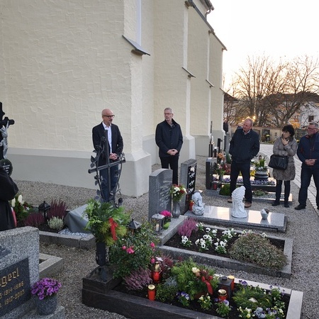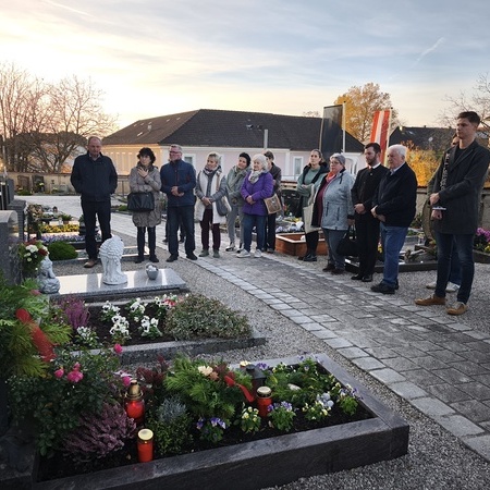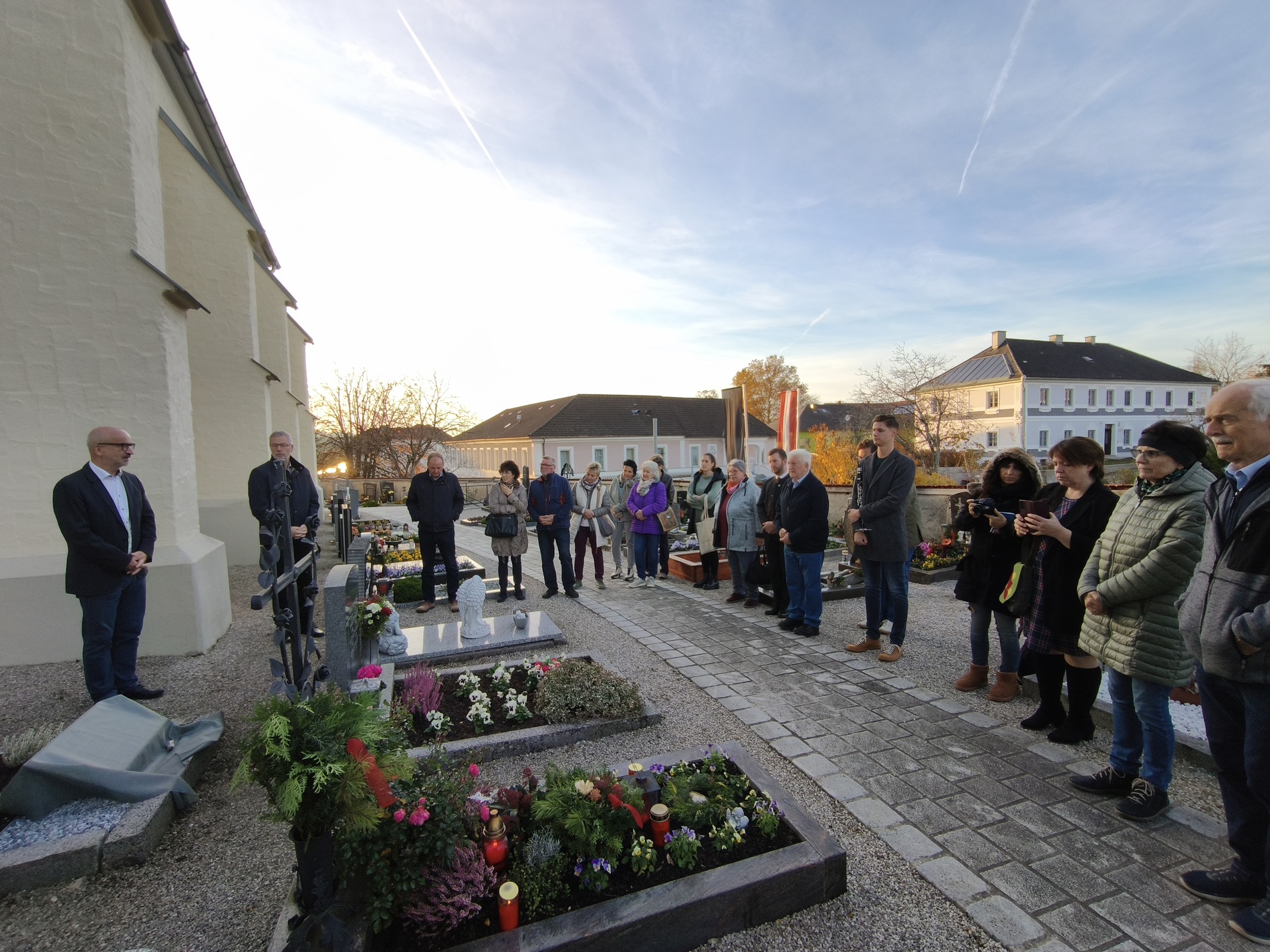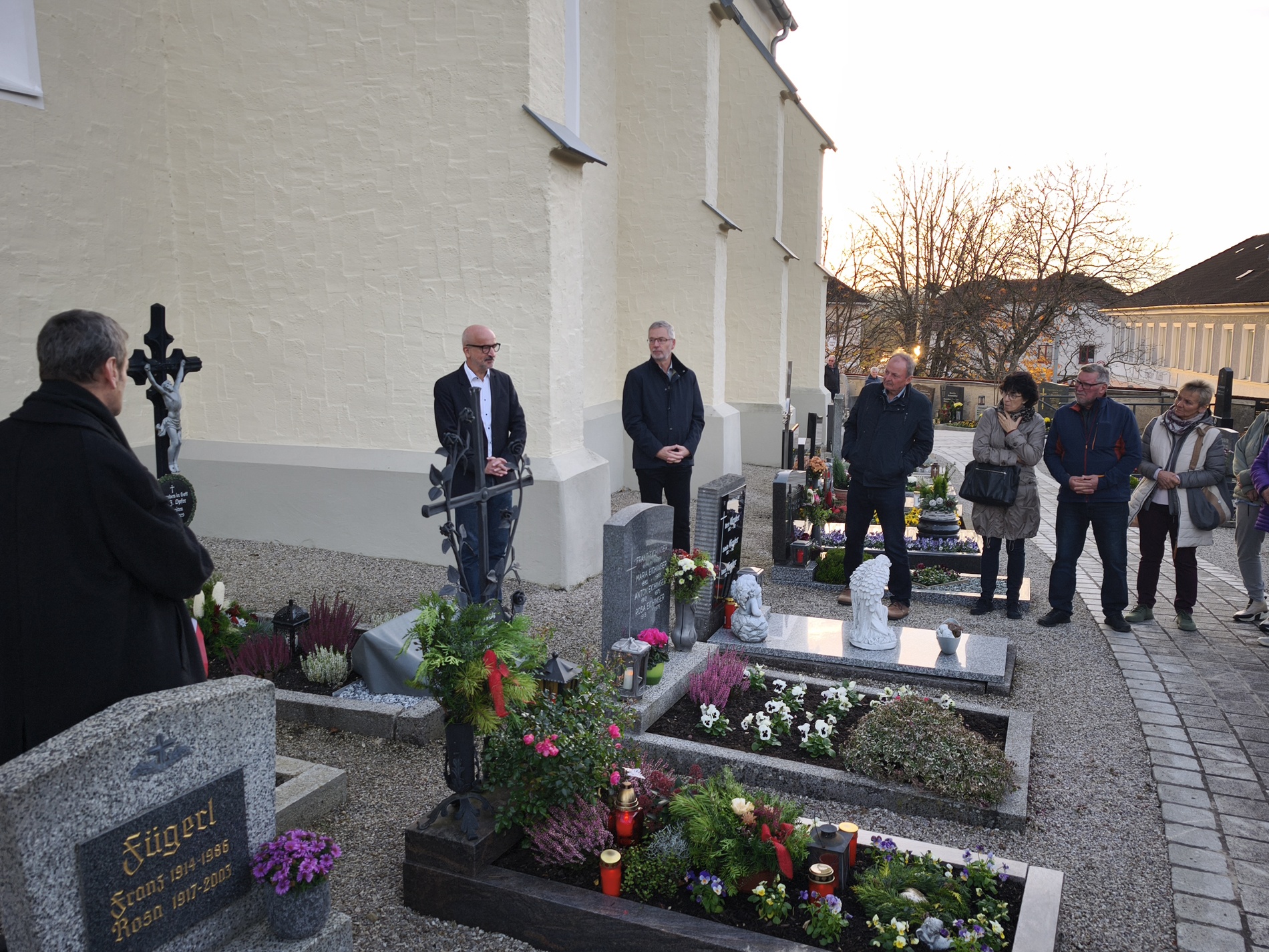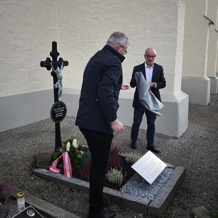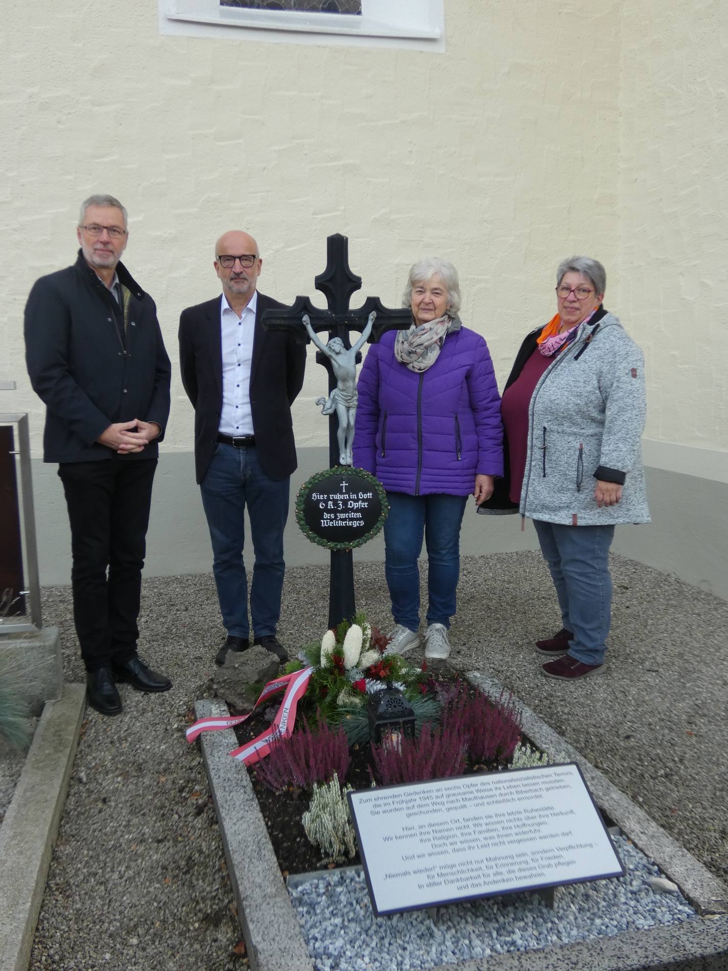 Freitag 16 Uhr: Enthüllung der Gedenktafel beim Grab von 6 KZ Opfern am Pfarrfriedhof - zum Gedenken an die Todesmärsche von (vermutlich jüdischen) KZ Häftlingen, die auch durch Biberbach geführt haben.