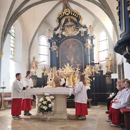 Samstag 1. November - Allerheiligen: Am Vormittag feierten wir ein Hochamt, zelebriert von P. Aegid Ritt (der am Vortag seinen 87. Geburtstag feierte) und gestaltet von unserem Kirchenchor unter der Leitung von Maria Rittmannsberger, an der Orgel Manfred Wagner. Zur Aufführung kam die "Missa a tre voci" von Michael Haydn (Kyrie, Gloria, Sanctus und Agnus Dei). Als Solostimme im Sopran glänzte Claudia Schörghuber. Vielen Dank dem Chor und dem Organisten für die wunderbare musikalische Begleitung!