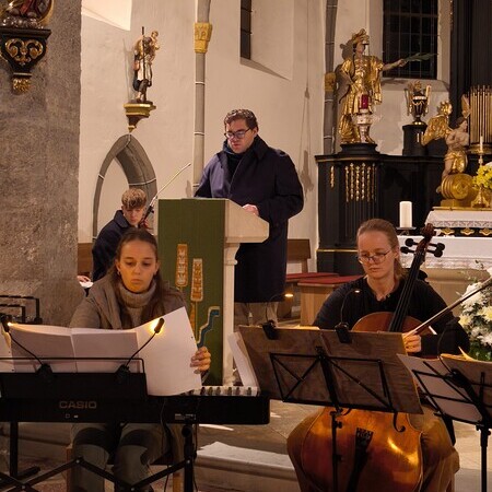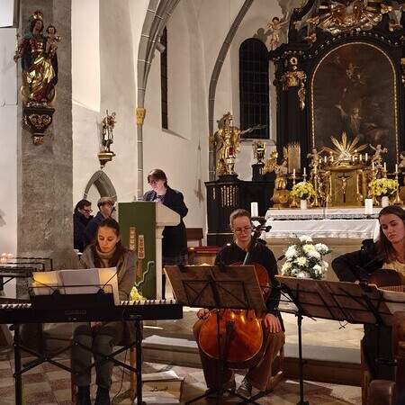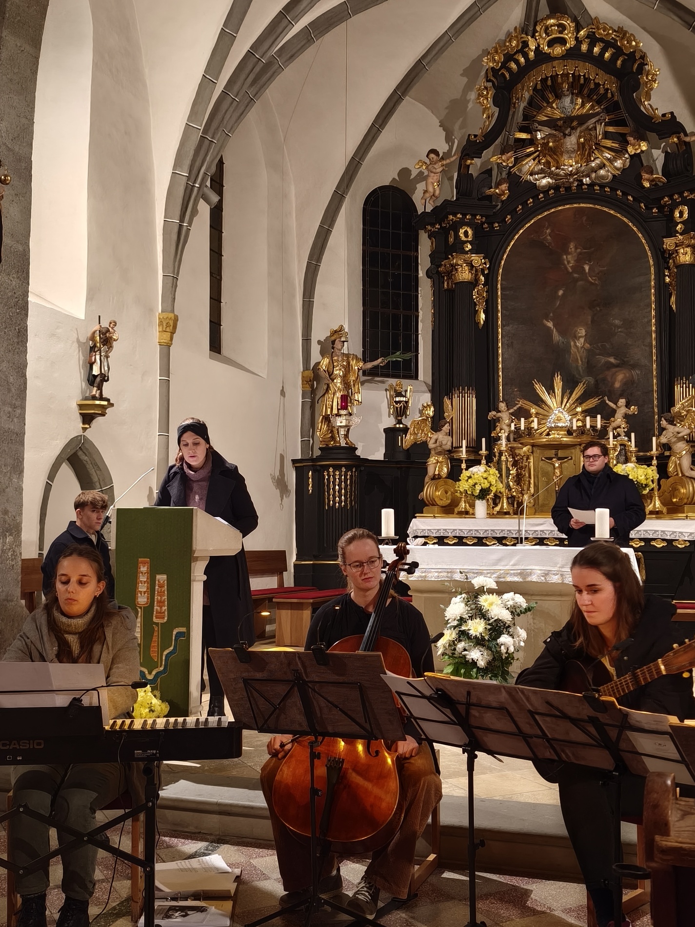 Lesung mit Musik am Sonntag Abend um 19 Uhr in der Pfarrkirche: Musikalisch begleitet vom Ensemble A'cord rund um Kerstin Wagner, das sich zum ersten Mal in dieser Zusammensetzung formiert hat. Danke für die wunderbaren und einfühlsamen Lieder - die sehr gut zu den Texten passten, die von Silke Bauer-Blamauer, Stefanie Peham, Martin Gruber und Raphael Rittmannsberger vorgetragen wurden. Ein stimmiger und sehr passender Abschluss dieses Gedenk-Wochenendes!