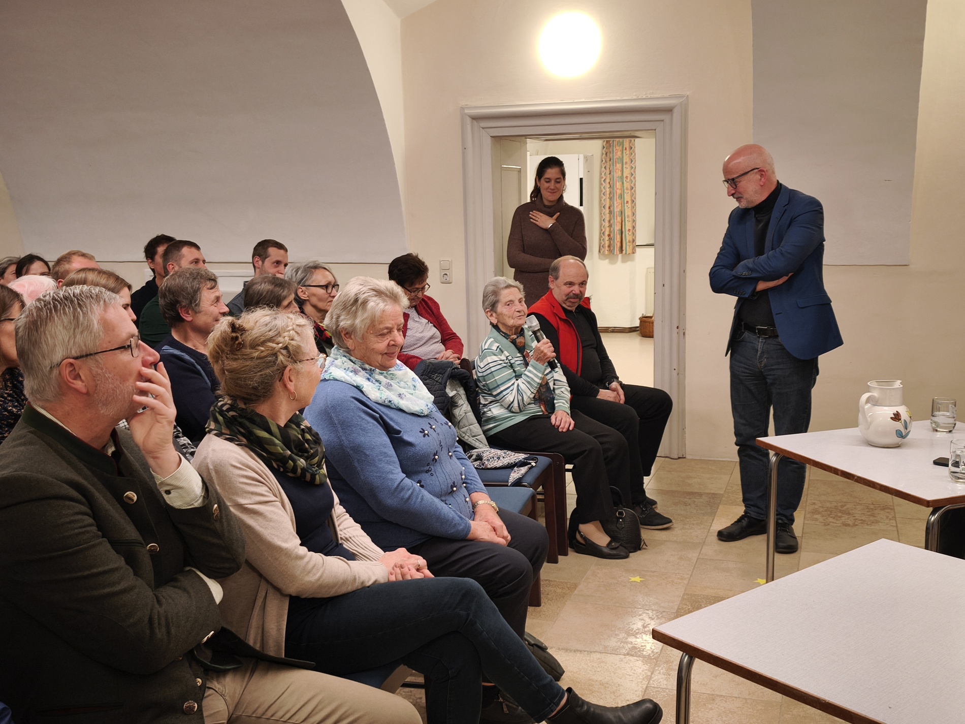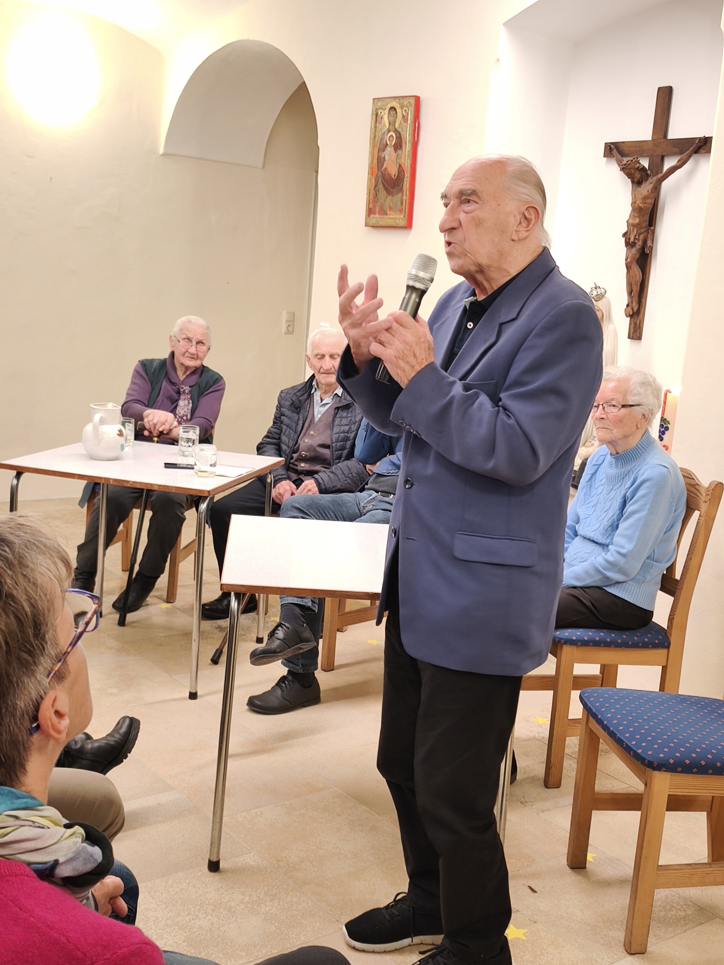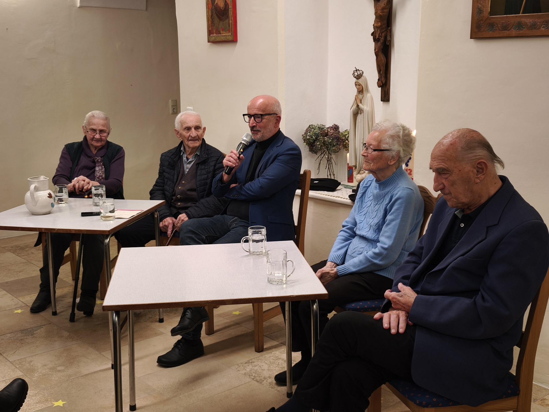 Sonntag 2. November- Allerseelen: am Nachmittag fand um 17 Uhr im Pfarrhof das ZeitzeugInnen-Gespräch statt - moderiert von Hannes Pruckner, der als GesprächspartnerInnen seine Mutter Theresia Pruckner, OSR Karl Lammerhuber und die Geschwister Stefanie und Pius Schörghuber/Angerhof hatte. Viel Schreckliches wussten sie zu erzählen über die Zeit des Krieges, aber vor allem über die Besatzungszeit und die Übergriffe der Russen.