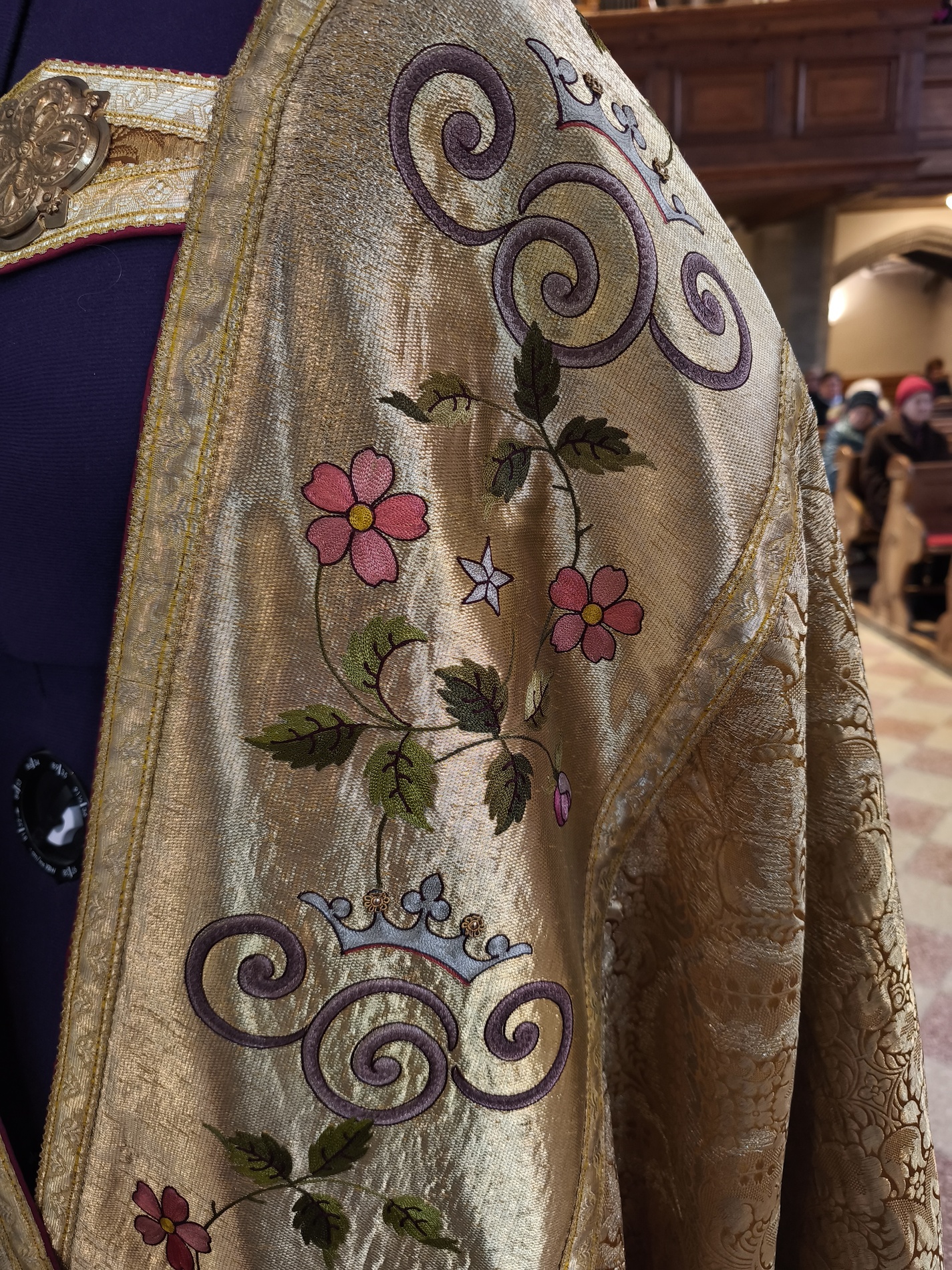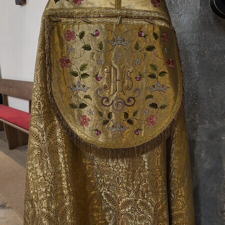 Und gleich nochmal Danke an die kfb für einen großzügigen Beitrag zur Restaurierung des goldenen Vesper-Mantels (durchgeführt von der Paramentik der Benediktinerinnen in Steinerkirchen), welcher dieser Tage wieder in der Sakristei eingetroffen ist.