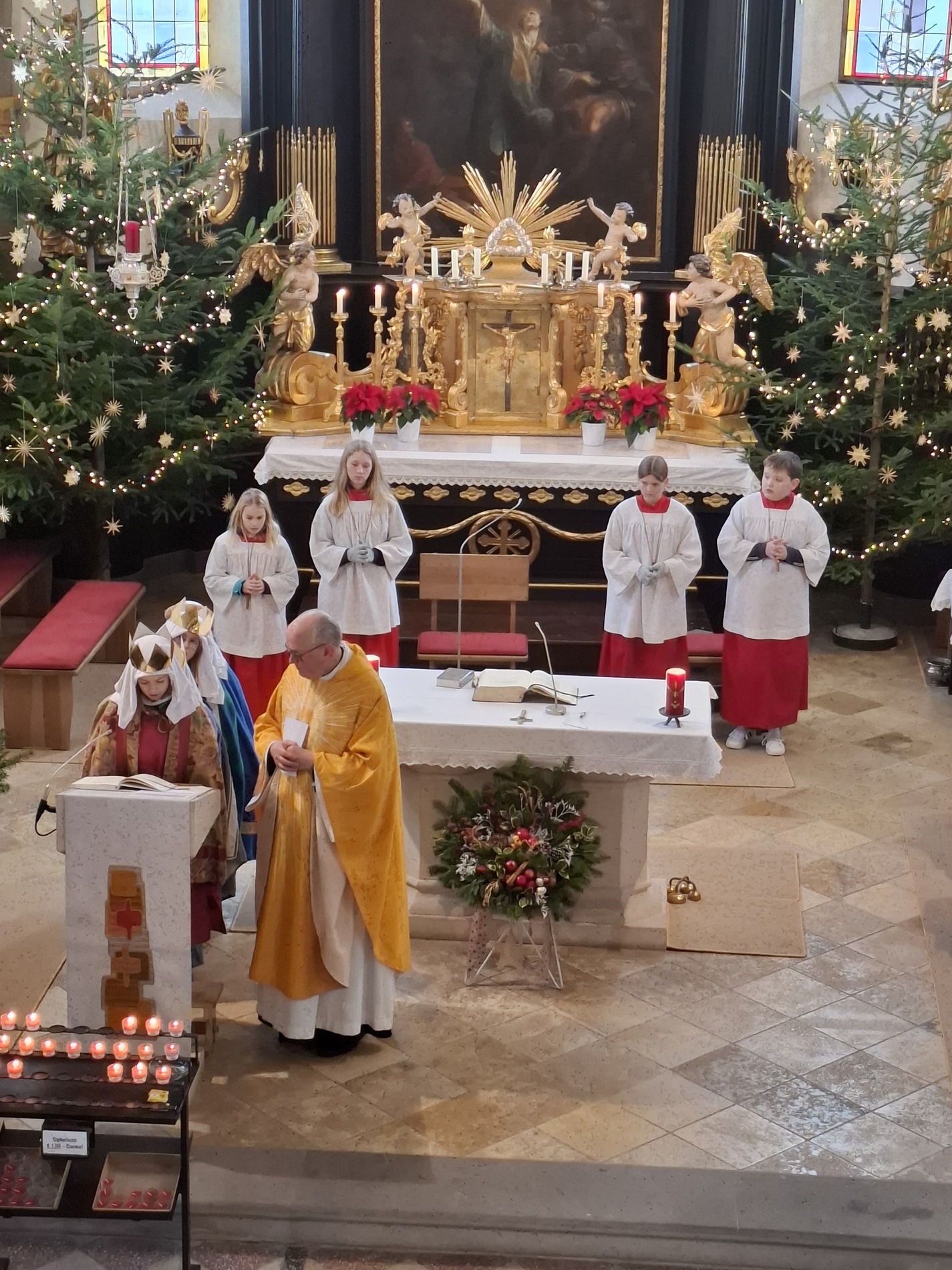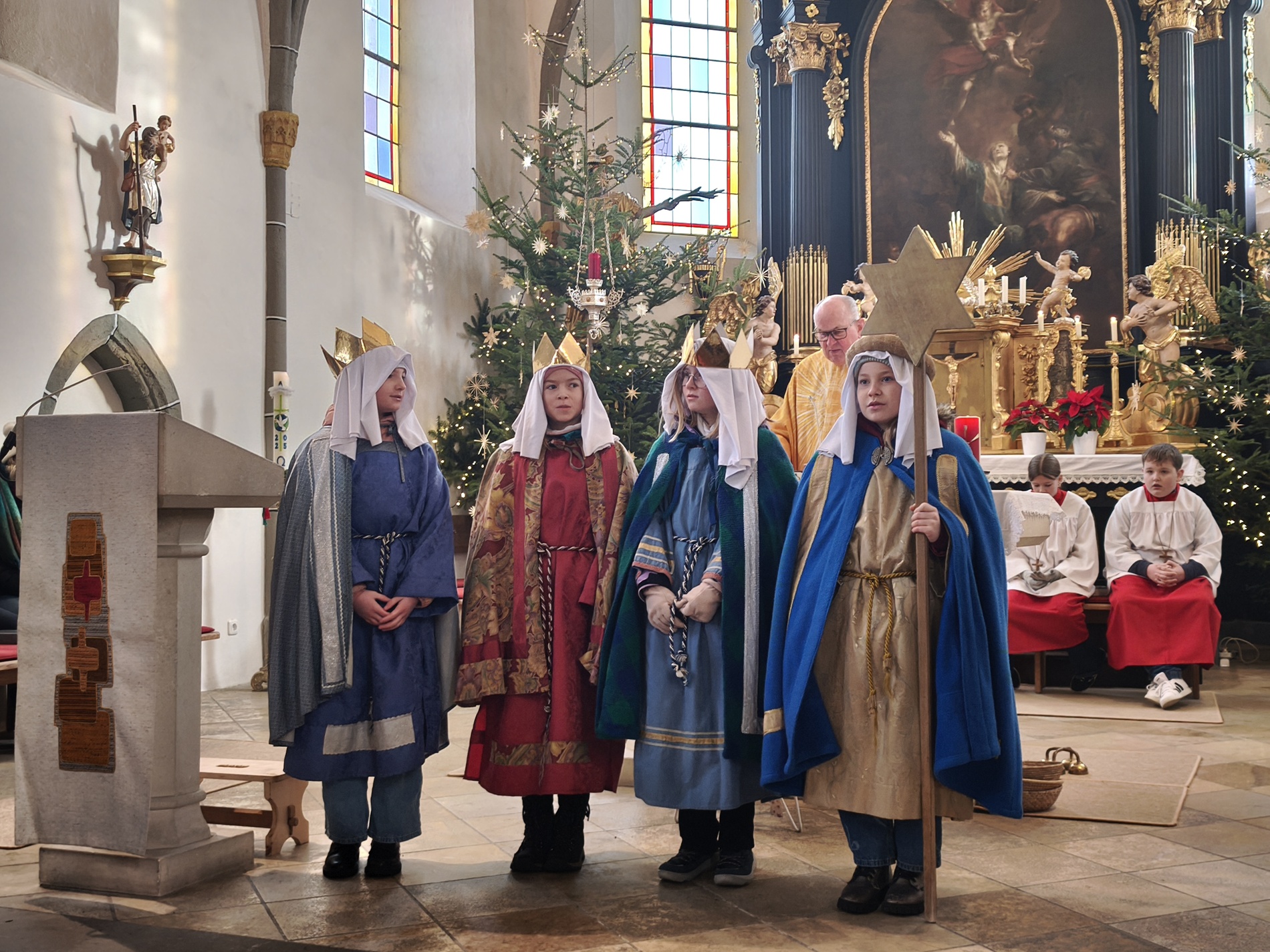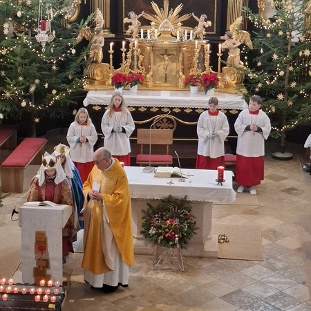Unter einem guten Stern stand das heutige Hochamt zum Festtag "Erscheinung des Herrn" - musikalisch begleitet vom Kirchenchor mit Teilen der "Missa a tre voci" von Michael Haydn und von einer Sternsingergruppe der Jungschar. Wir freuen uns über eine großartiges Spendenergebnis von mehr als EUR 8.000,-, die "ersungen" wurden.