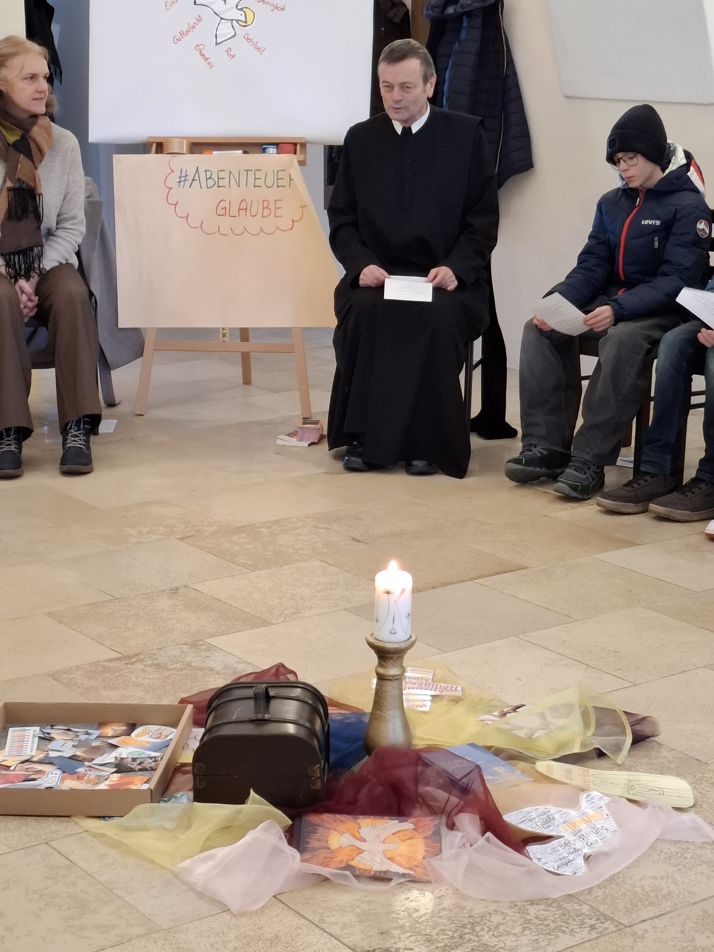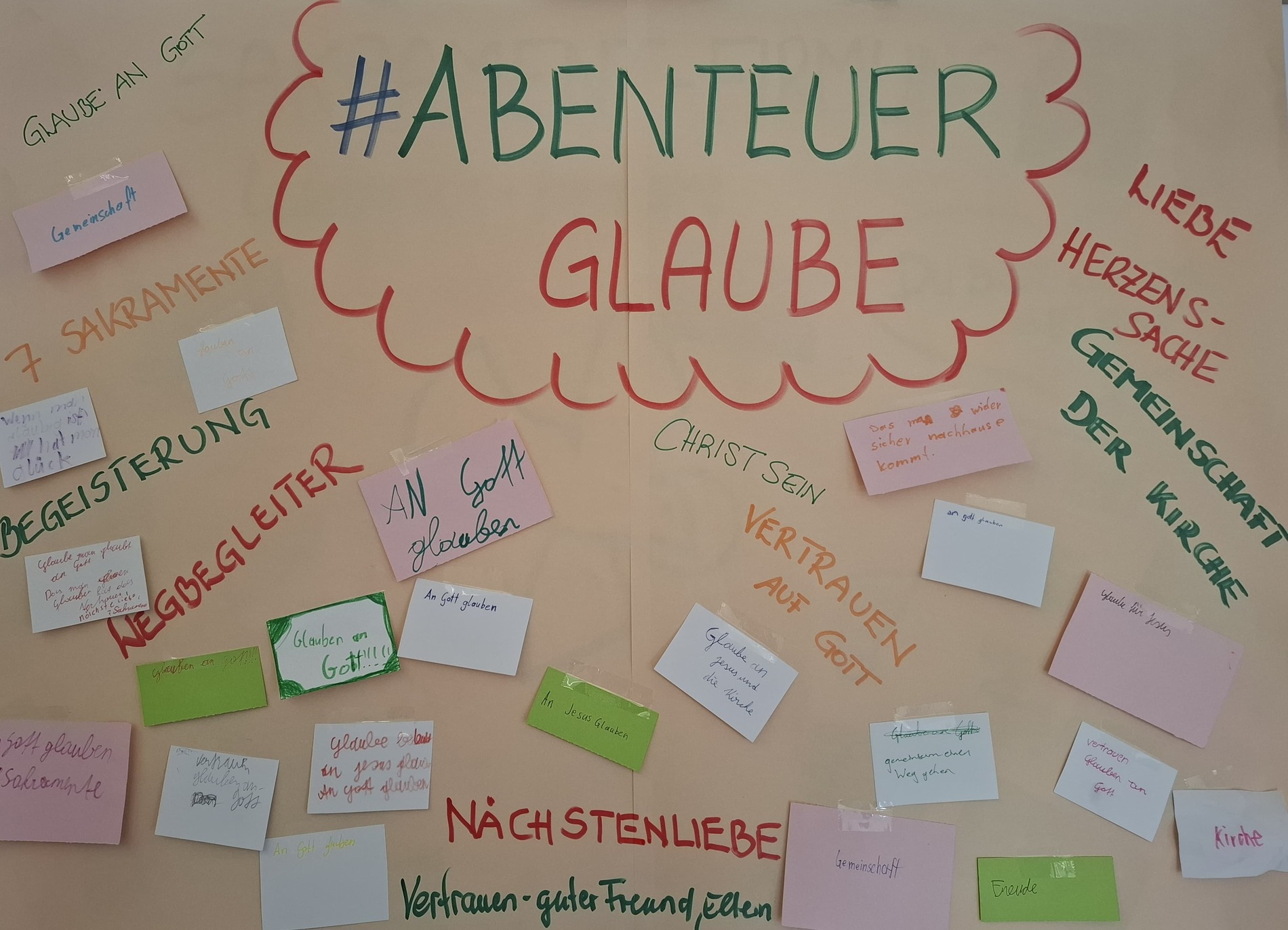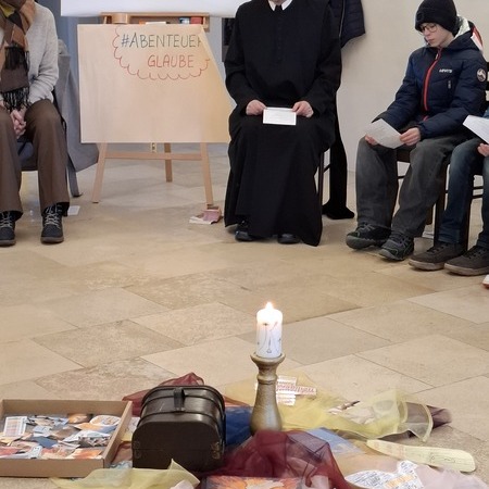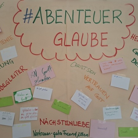 Mit einleitendem Gebet, Liedern und den Workshops zum Thema Firmung starteten wir unser erstes Treffen und Kennenlernen. Bei der Gesprächsrunde zum diesjährigen Thema "#Abenteuer:Glaube" gab es gute Anmerkungen und wir stellten für uns fest, dass Gott uns alle liebt und wenn wir an ihn glauben, wir auch auf ihn vertrauen können.