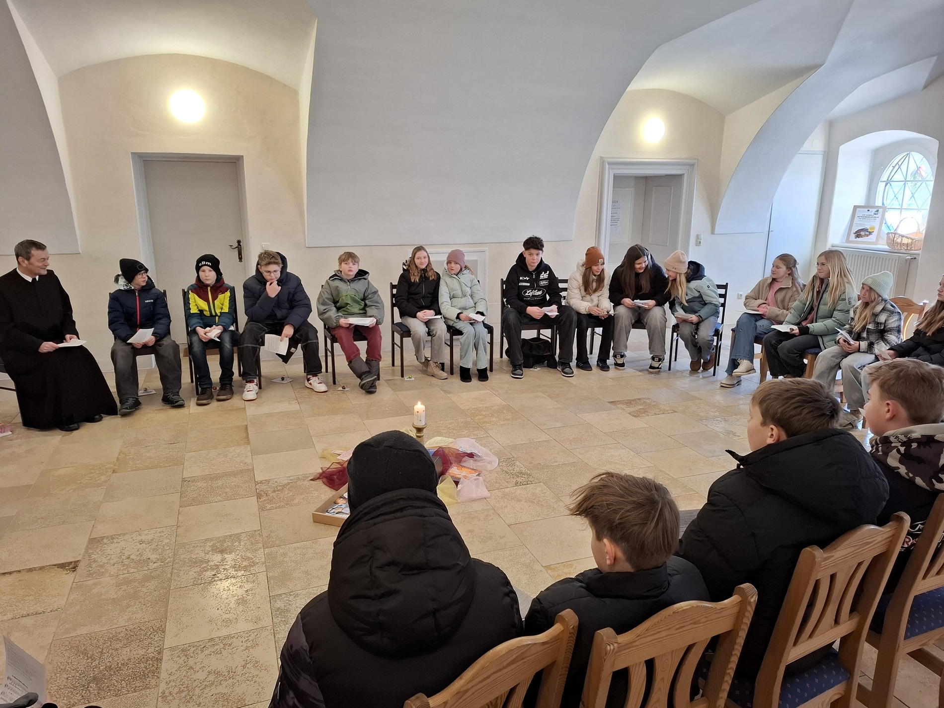 Auf das Sakrament der Firmung bereiten sich heuer in unserer Pfarrgemeinde 24 Firmlinge vor. Nach dem gemeinsamen Besuch des Gottesdienstes am Sonntag 18. Jänner, wo die Firmlinge der Pfarrgemeinde vorgestellt wurden, trafen wir uns anschließend im Pfarrhof.
