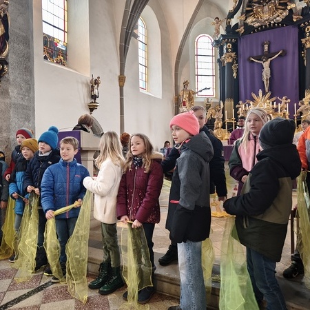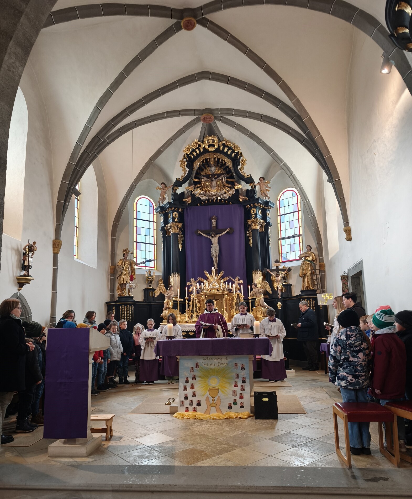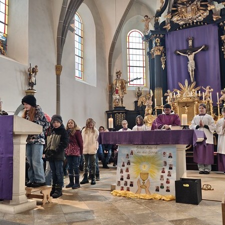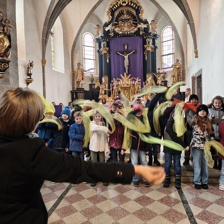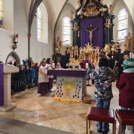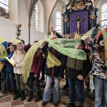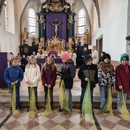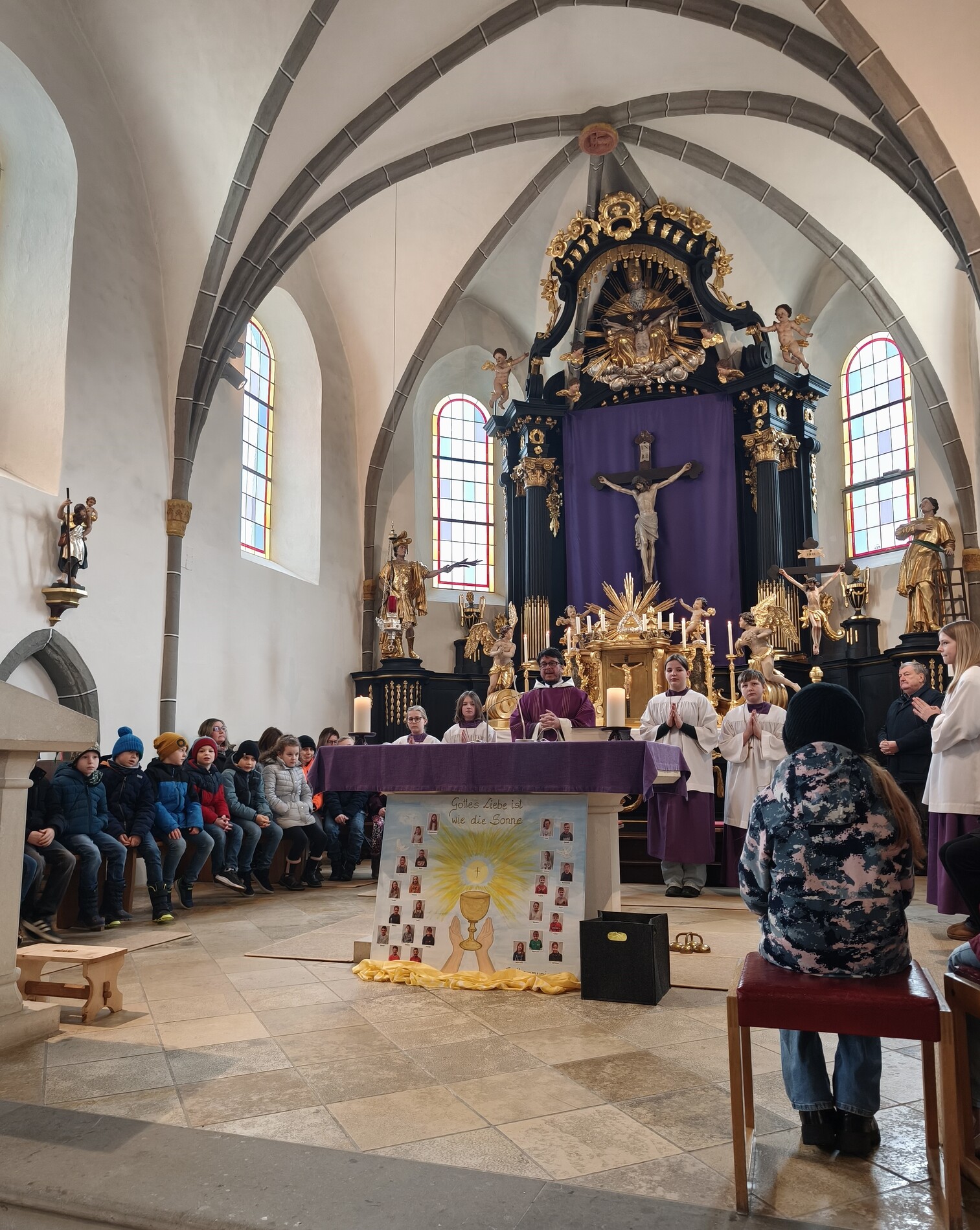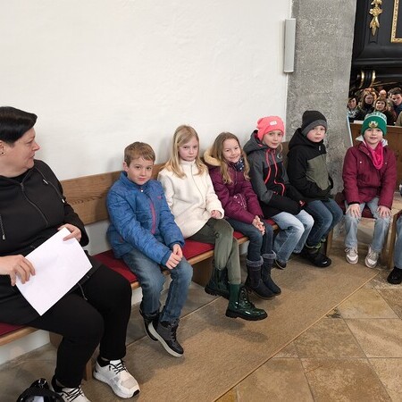 24 Kinder bereiten sich heuer in unserer Pfarre auf das Fest der Erstkommunion vor. Am ersten Fastensonntag durften sich die Kinder dazu während des Sonntagsgottesdienstes mit einem persönlichen Satz vorstellen. Mit einem Sonnentücher-Tanz zum Lied „Gottes Liebe ist wie die Sonne“ wurde das diesjährige Motto weiter zum Ausdruck gebracht.
