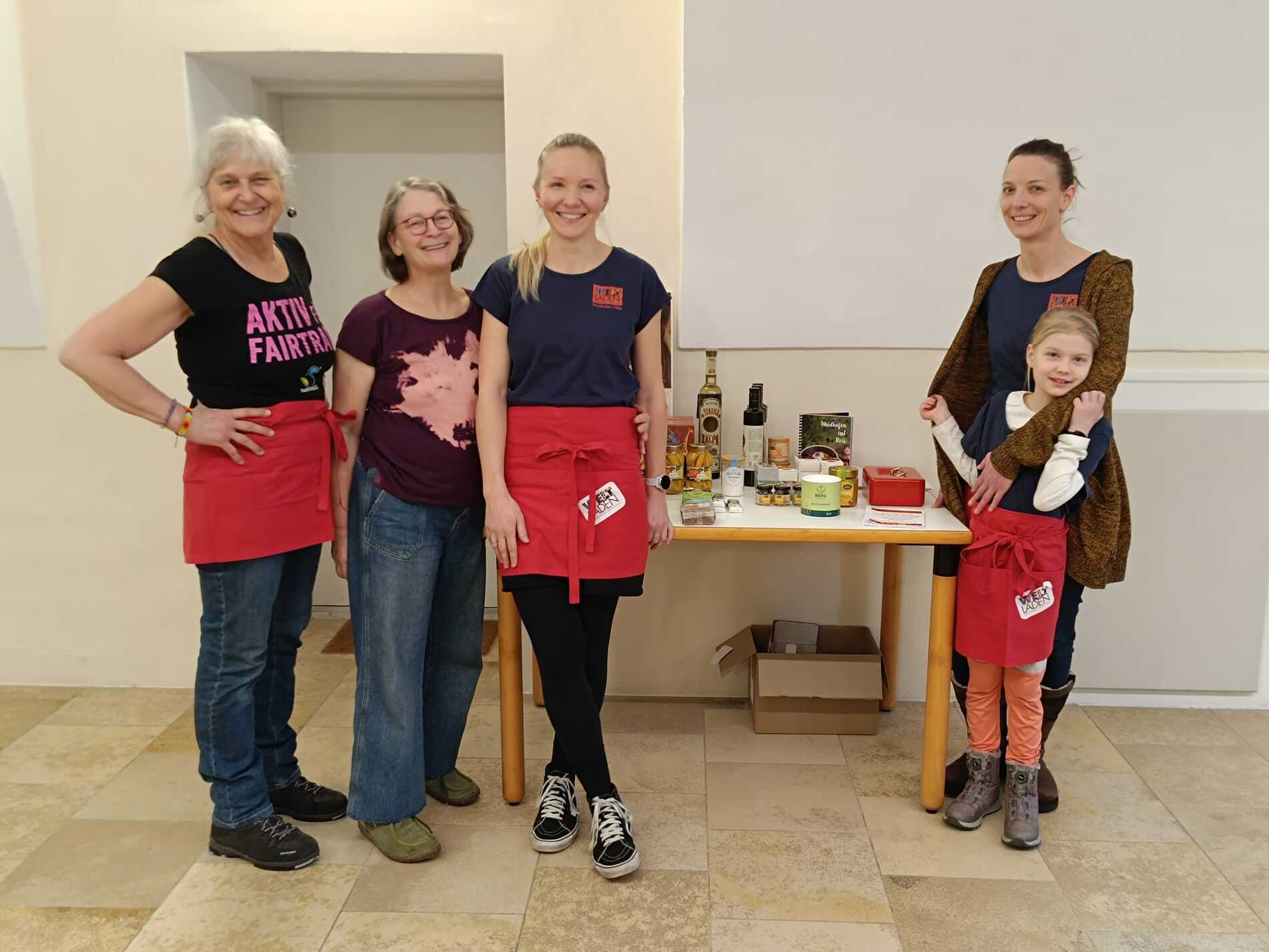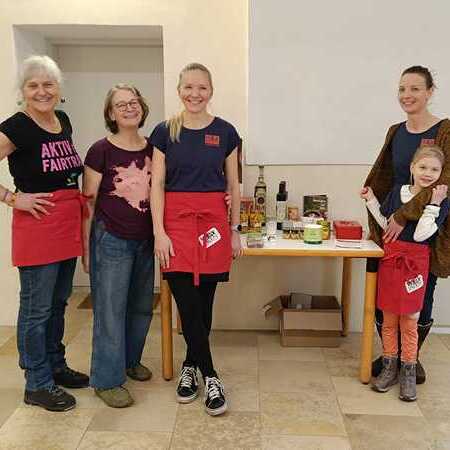 Am 21. Februar fand zum zweiten Mal der Koch-Workshop des Weltladen Waidhofen/Ybbs statt. Vroni, Conny und Alexandra aus dem Team kochten mit 10 TeilnehmerInnen ein tolles dreigängiges Menü, das anschließend mit Genuss und im gemütlichen Beisammensein verzehrt wurde (nicht zu vergessen: gestartet wurde mit einem Cocktail, geschlossen mit einem guten Kaffee zum Dessert)!