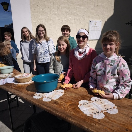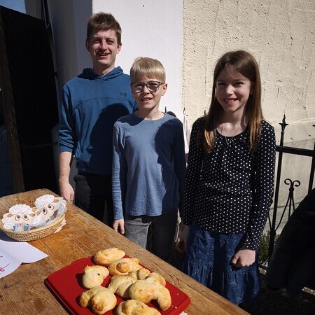 Im Anschluss freuten wir uns über den Ostergruß der Jungschar - süße Brioche-Osterhasen - und sagen Danke für eure Aufmerksamkeit! Ein Osternesterl gab es dann für die SponsorInnen und Haupt-Beteiligten an der Renovierung des Jungscharraums, der mit neuer Beleuchtung nun auch endgültig fertig geworden ist!