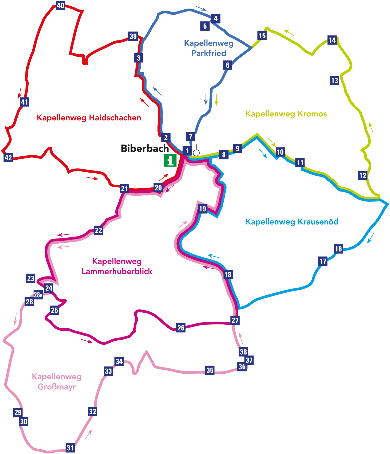 Zu jedem der 6 Kapellenwege in Biberbach liegen am Schriftenstand in der Kirche kleine Wegbegleiter mit Impulstexten auf, die gerne mitgenommen werden dürfen - hier zur Ansicht und zum Download! Zum Überblick auch eine Liste der Flurdenkmäler an den einzelnen Kapellenwegen, mit den Themen der jeweils aufgestellten Impulstafeln!