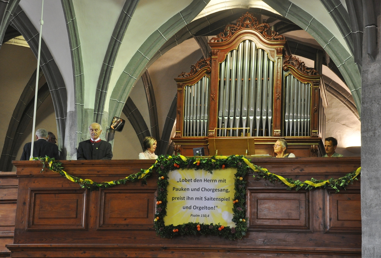 Ganz unter dem leicht abgeänderten Psalmwort stand die Weihe der 101 Jahre alten und neu restaurierten Lachmayr-Orgel am Sonntag, 18. September 2018: "Lobet den Herrn mit Pauken und Chorgesang, preist ihn mit Saitenspiel und Orgelton", ausgewählt von Organistin Marianne Tlacbaba. Gott lobt und preist man am besten mit der Musik, so P. Stefan bei den Grußworten zur Orgelweihe. Die Orgel selbst ist Liturgie, sie vermag den Glanz der Liturgie zu steigern. Ziel der Restaurierung der Orgel war es, den Originalklang der letzten Orgel von Lachmayr zu erhalten.