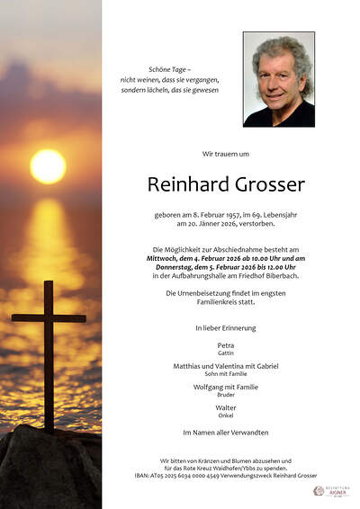 1)Reinhard Grosser, + am 20. Jänner 2026 im 69. Lebensjahr