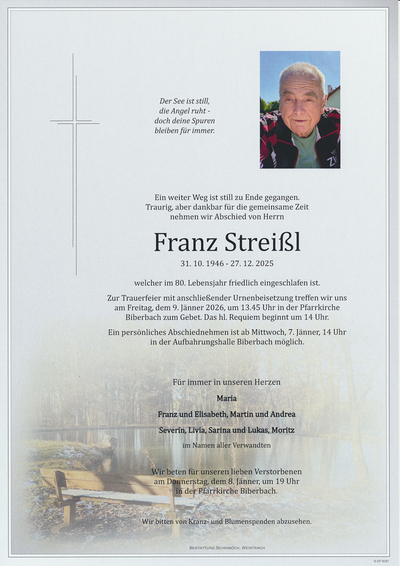 18)Franz Streißl, + am 27. Dezember im 80. Lebensjahr
