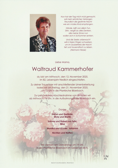 16)Waltraud Kammerhofer, + am 12. November im 82. Lebensjahr