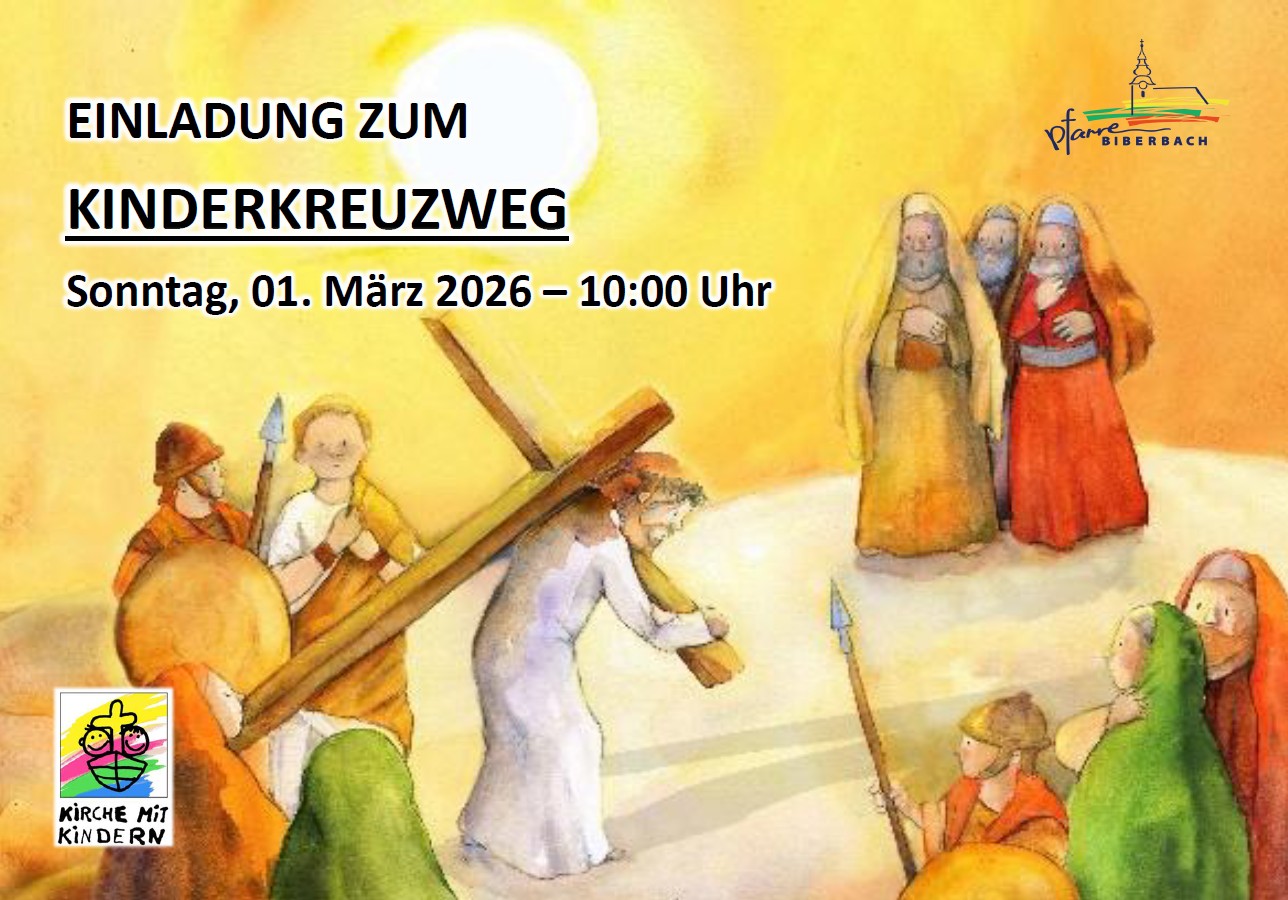 Einladung zum Kinderkreuzweg - Treffpunkt Pfarrgarten, bei Schlechtwetter in der Kirche!